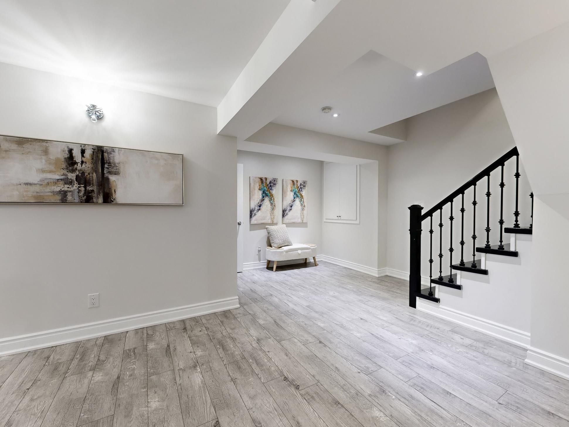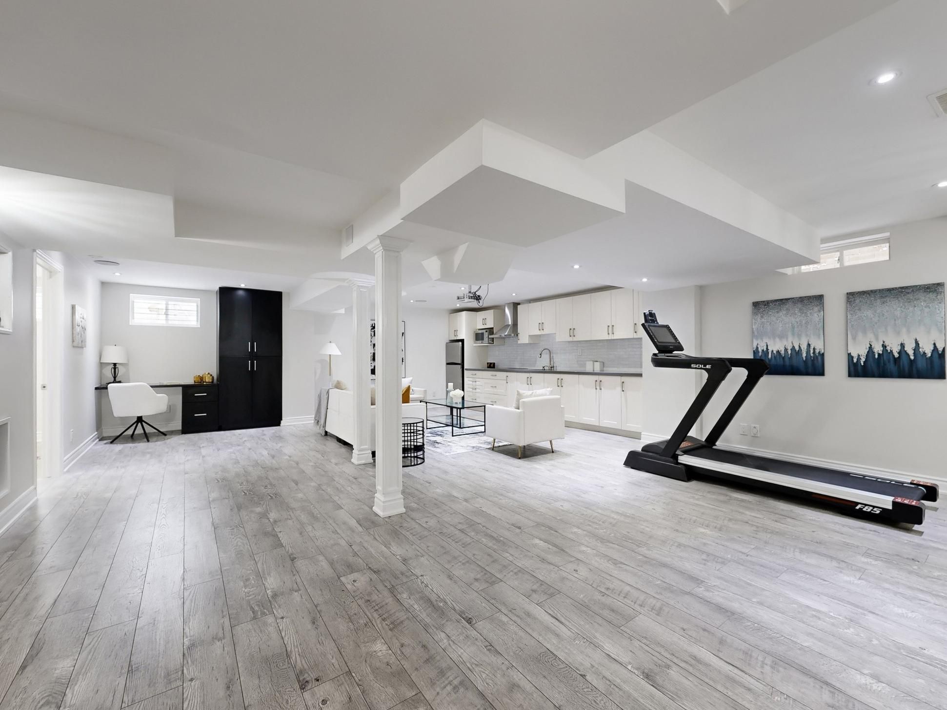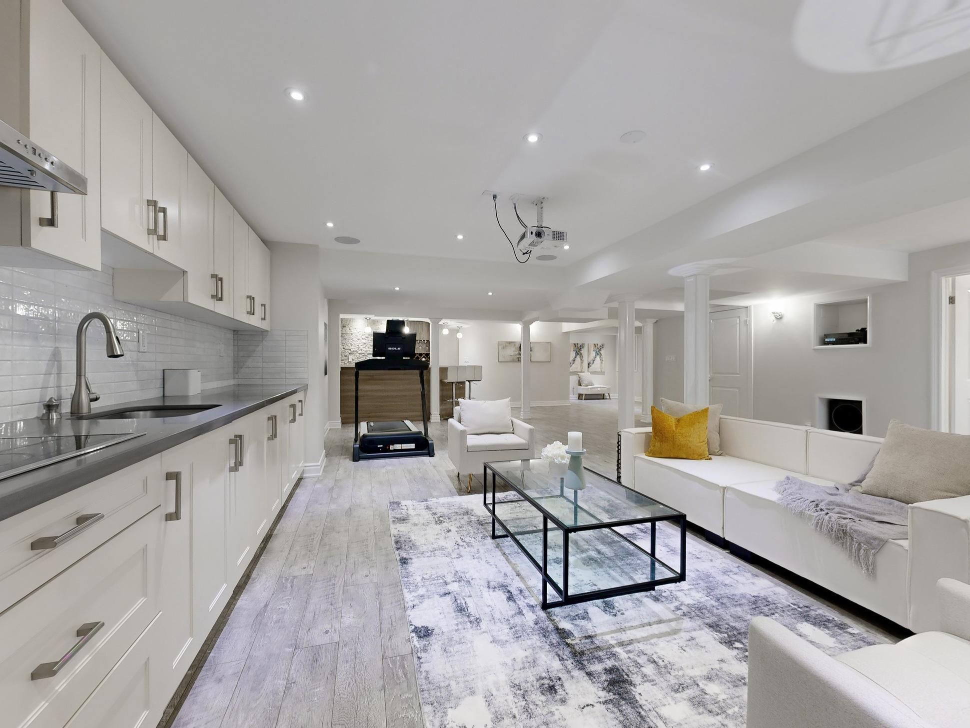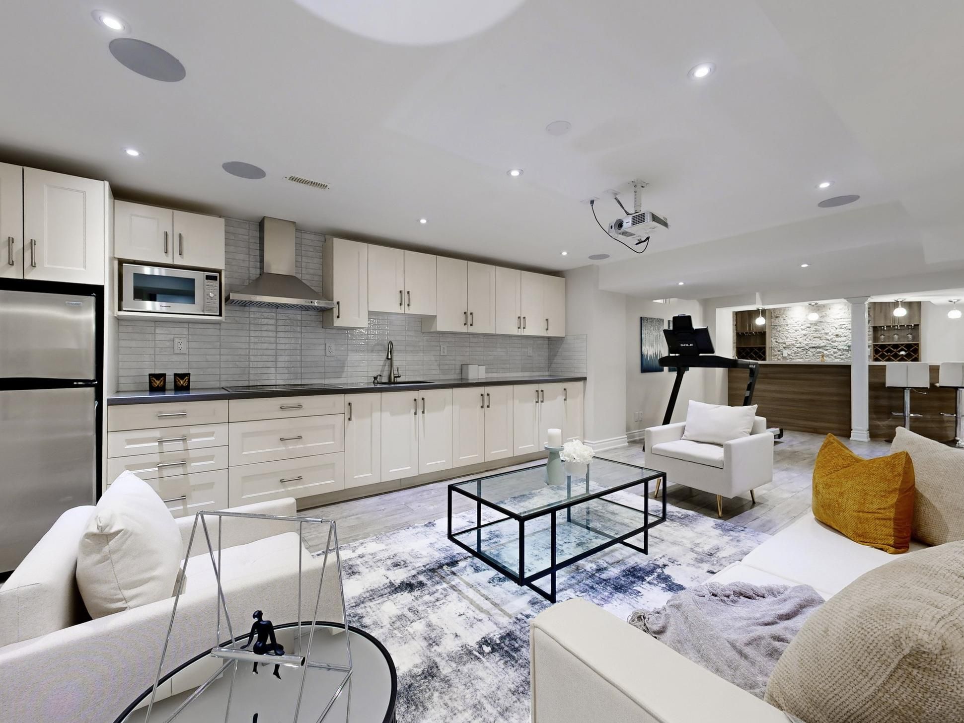 • Fully finished basement with an additional bedroom and modern kitchen for guests.
