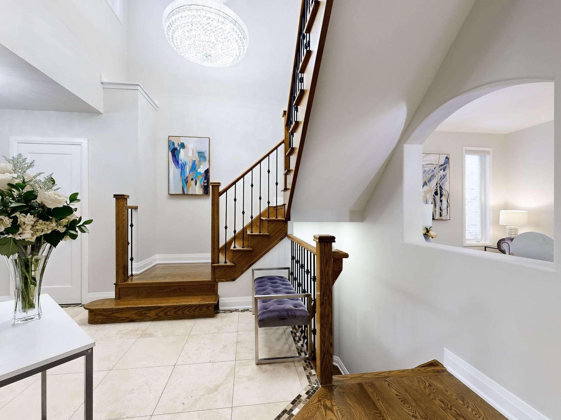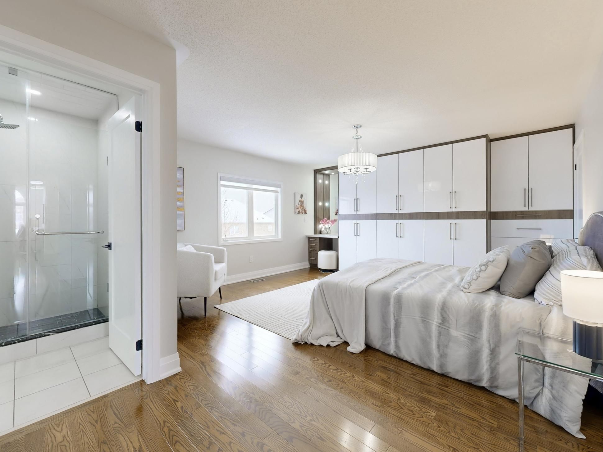 A beautiful, fully renovated 4-bedroom, 5-bathroom home with over 4,000 sq. Ft. Of living space awaits in the prestigious berczy community at kennedy and 16th. Built by monarch and meticulously maintained by the original owner, this bright and spacious home features hardwood flooring throughout and an elegant oak staircase, main floor office and offers an inviting blend of comfort and style. It is conveniently located just steps from top-ranked schools. An interlocking stone front walkway leads to a welcoming foyer that opens into an airy open-concept layout with soaring 9-foot ceilings on the main floor. The main level showcases a modern kitchen with upgraded finishes, a generous breakfast area, and a gas cooktop, perfect for family living and entertaining. Upstairs, the home is thoughtfully designed for family comfort, featuring four spacious bedrooms and a convenient computer loft. Privacy is well considered, with two bedrooms offering private en-suites, while the remaining two bedrooms share a well-appointed semi-ensuite bathroom. The fully finished basement extends the living space, with a bedroom, a full bathroom, a modern kitchen with quartz countertops, and a spacious recreation area-ideal for in-laws, extended family, or guests. Additional highlights include a double garage, a low-maintenance interlocking backyard, and a security camera system. This move-in-ready home is perfect for families seeking comfort, access to top-ranked schools, and steps to beautiful berczy park and close to all other amenities.