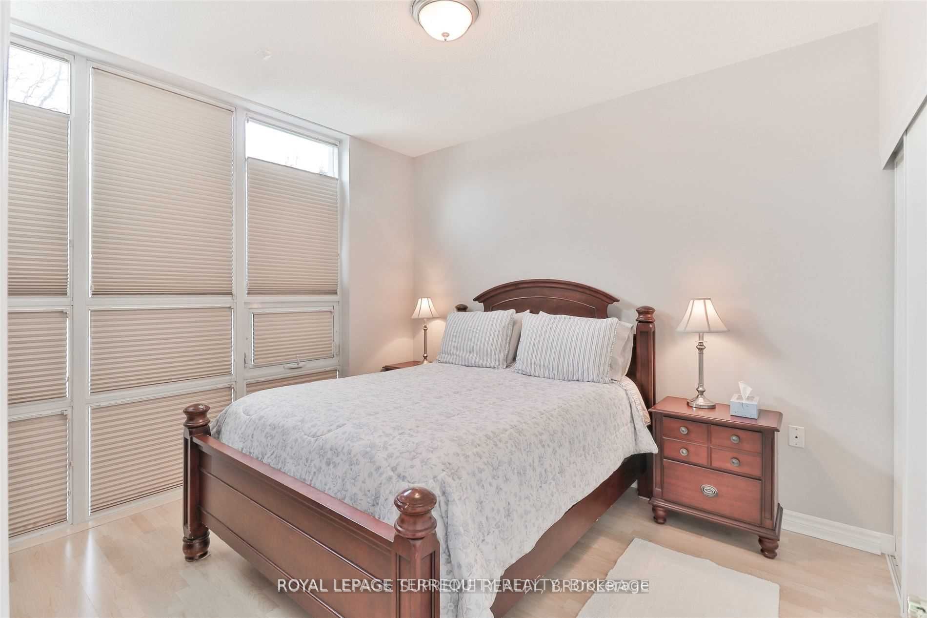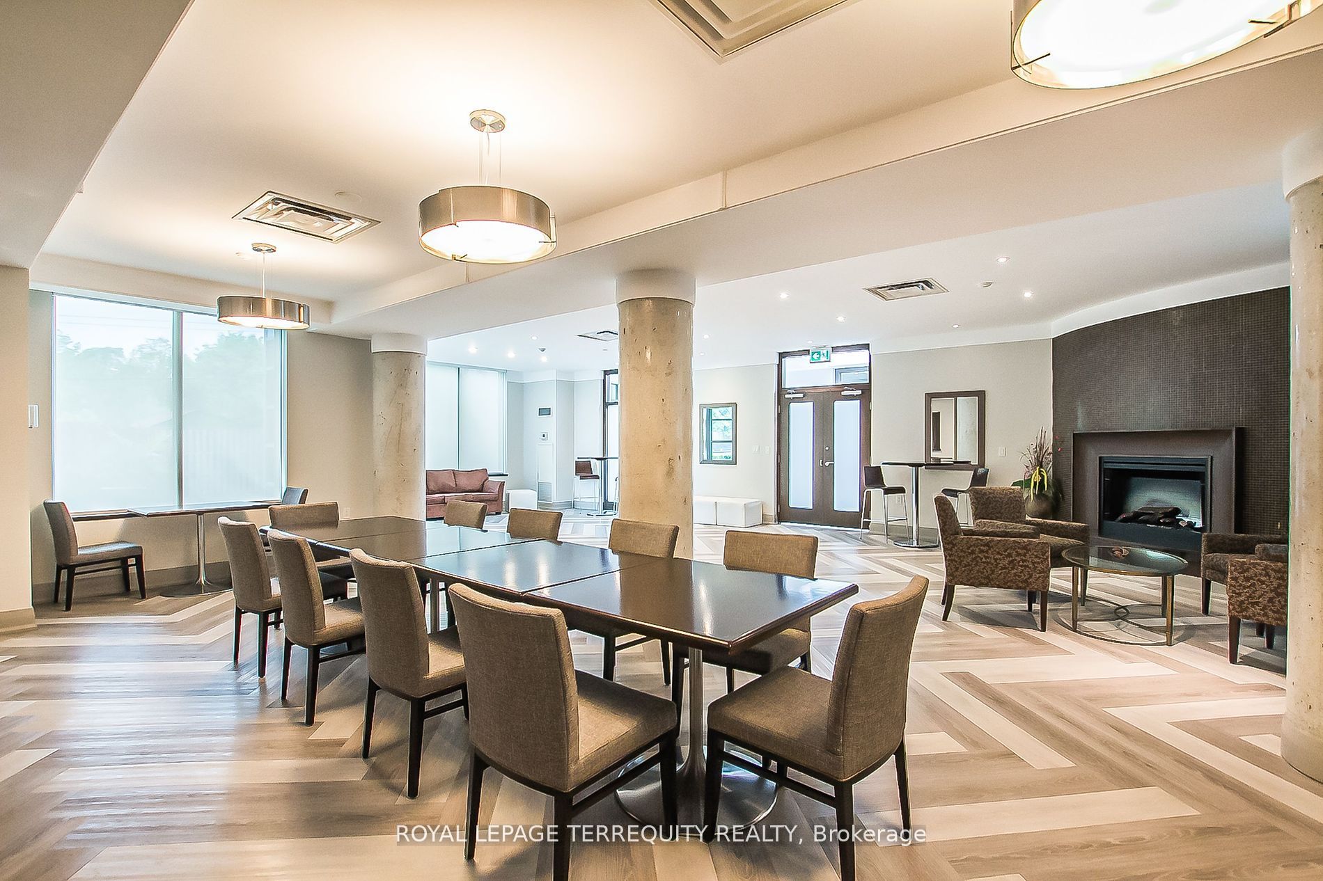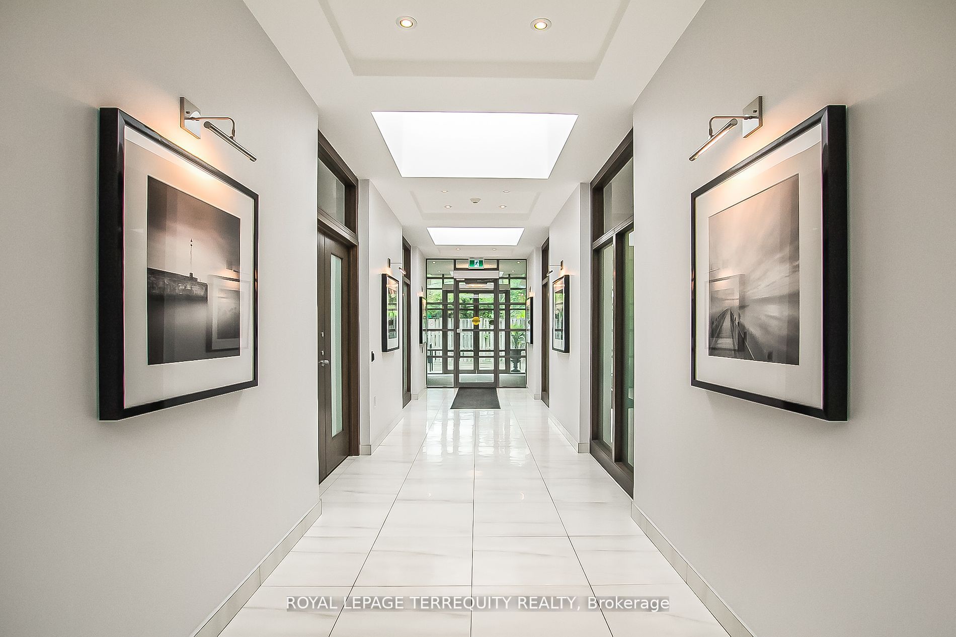 Beautiful, bright 1 bedroom + large den in an unbeatable location. This rare ground floor unit offers 9 ft ceilings, a private gated patio, and underground parking. Thoughtfully designed open-concept layout with a versatile den (with french doors) perfect for a home office or second bedroom. Stylish kitchen with granite counters, ceramic backsplash, breakfast bar, and built-in appliances. Ensuite laundry included. Enjoy the ease of condo living with ttc, shopping, and dining at your doorstep and quick highway access. Exceptional ameninties including 24 hour concierge, renovated gym, sauna, steam room, media lounge, and party room.