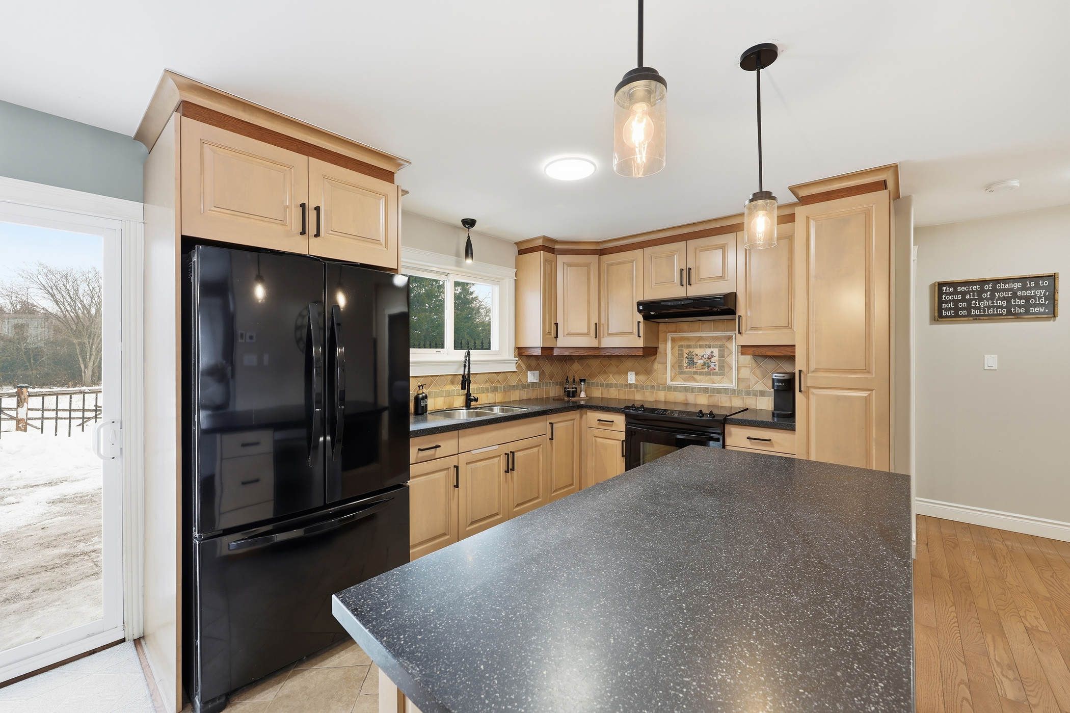 • Dream kitchen with custom cabinetry, durable countertops, and modern lighting.