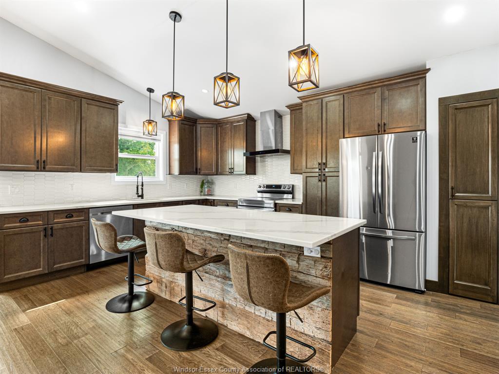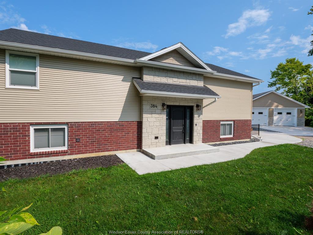 Custom built gorgeous new home that will check off all of your boxes. This stunning 3-4 bedroom, 3 bath home features open concept living, hardwood and porcelain throughout, maple kitchen with quartz counters, 7 ft island, custom stone fireplace. Sliding patio doors leading to 2 tiered deck for magnificent views of lake erie. Fully finished lower level, complete with 2nd custom stone fireplace, one of a kind wet bar can be converted to 2nd kitchen, large grade entrance. Amazing 1200 sq ft insulated outbuilding for many uses. Sitting on a large lot. Endless opportunity here.