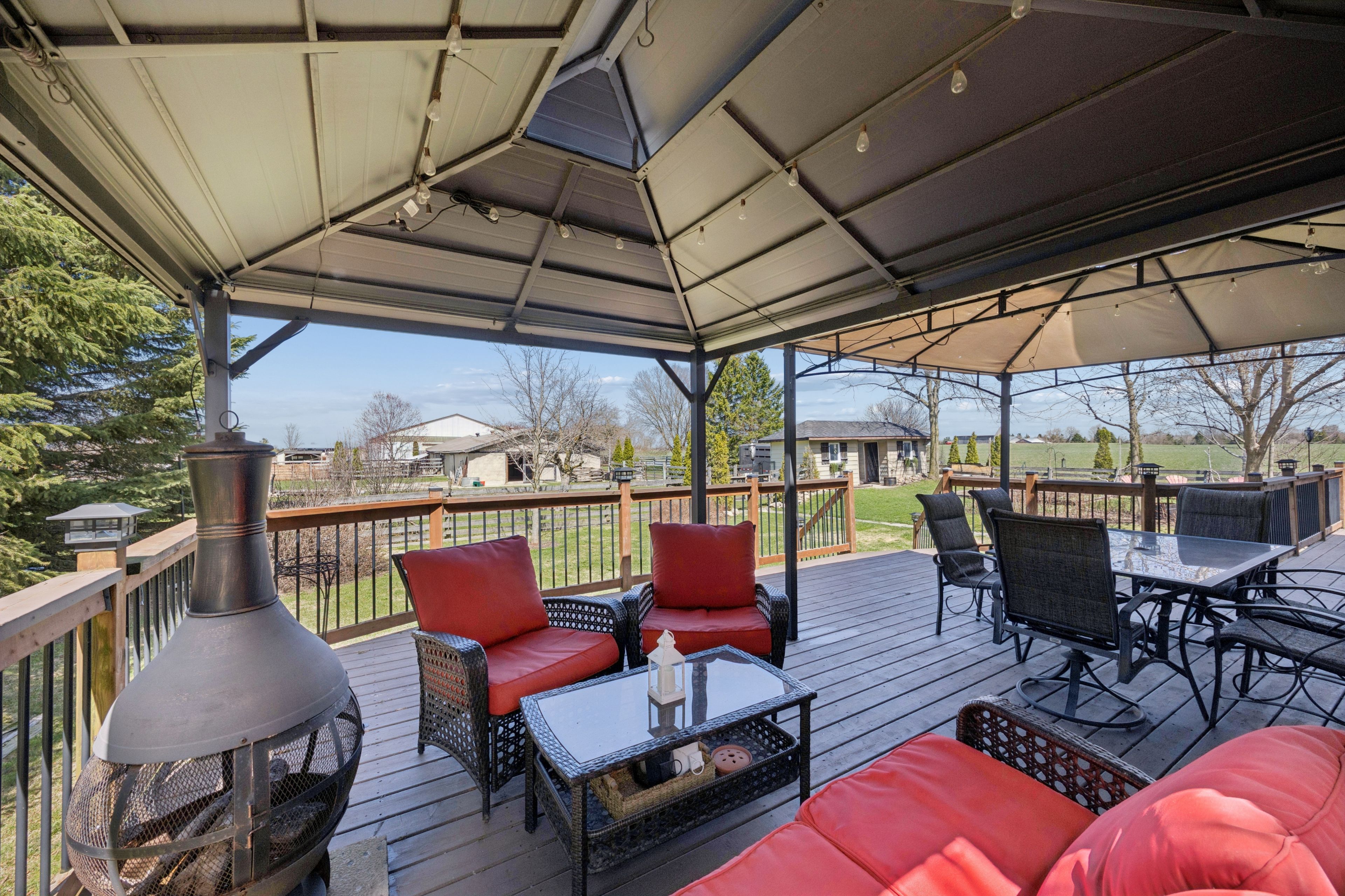 - 384 feasby - updated home | indoor arena | barn | 10 acres. Exceptional 10 acre country property designed for equestrian use and multi-purpose living. Featuring a 60 x 130 ft indoor arena with steel roof and reinforced structure. 10 stall barn complete with tack room, feed room and hay storage. Four paddocks plus rear hay field. Two water hydrants servicing paddocks. New fencing. Large rear deck ideal for entertaining and outdoor living. Circular paved driveway with ample parking. Professionally landscaped with mature trees and privacy. Updated two-storey home. Functional layout with bright principal rooms. Upgraded custom kitchen with quartz countertops. Finished lower level provides additional living space. Numerous updates since 2015 including windows, roof, doors, insulation and more. Move-in ready with long-term value. Located on desirable feasby road-a quiet, family-friendly street in a highly sought-after area of uxbridge. Minutes to town amenities, schools, trails and recreation. Enjoy the perfect balance of rural living with convenient access to everything you need. Indoor arena suitable for equestrian, car collectors, contractors or sports complex/recreational use. Property benefits from farm tax incentive. High-speed internet available with fibre expansion coming soon.