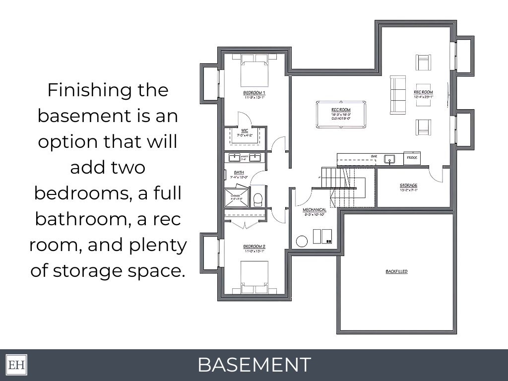 • Finished lower level offers extra bedrooms and a rec room.