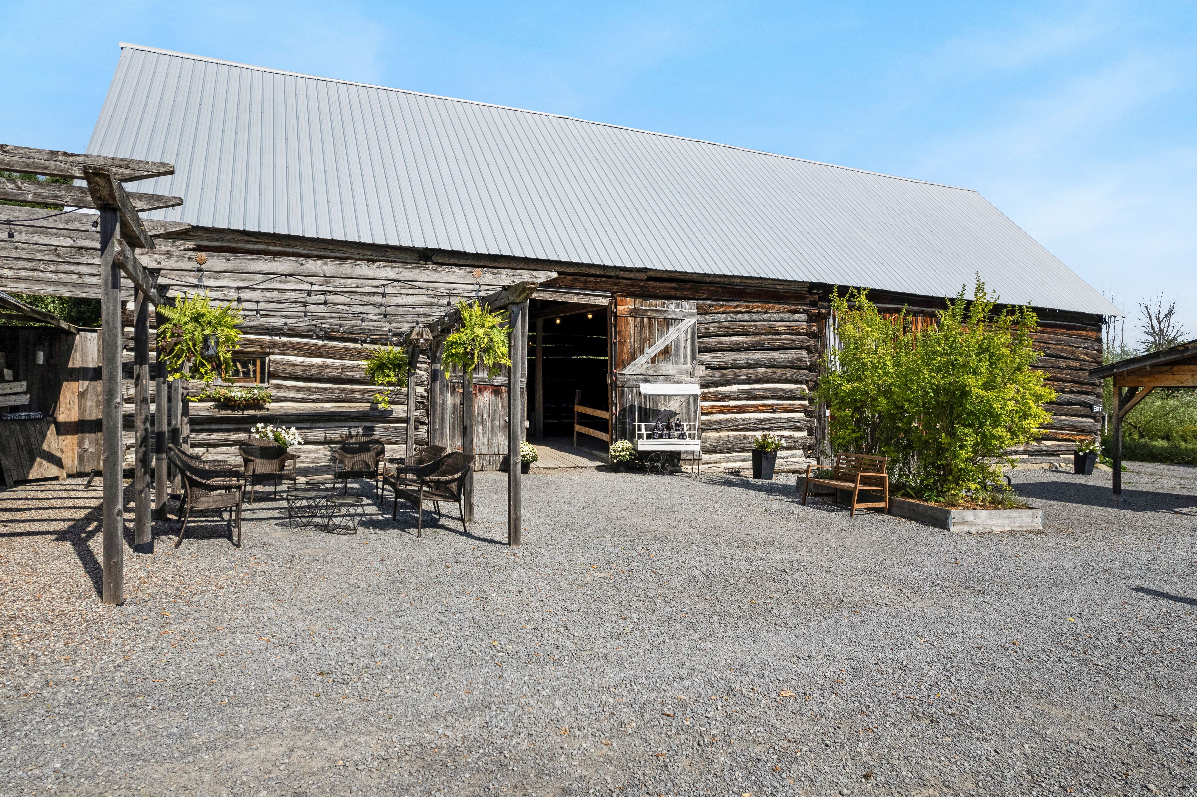 Set on 14 landscaped acres in the ottawa valley, this established destination property brings together multiple revenue streams in a single, turn-key operation. This property is home to one of the regions most sought-after wedding venues. The large heritage barn has been converted into a reception space accommodating 75 to 100 guests, complete with bar and catering prep facilities. The bergamot barn offers dedicated bridal and groom preparation areas as well as a weather-proof ceremony option, while comfrey cottage, the original homestead, now operates as a gift shop and gallery. The landscaped grounds provide numerous outdoor ceremony sites with capacity for larger tented events, creating flexibility for gatherings of all sizes. There is also a successful nursery business with two heated greenhouses and a third shaded structure, supplying a wide range of herbs and perennials to a loyal clientele through the spring months. With potential to extend the sales season and grow through strategic advertising, this component offers considerable opportunity for expansion. In addition to these enterprises, the solar installation generates approximately $11-12,000 annually, with several years remaining on the current contract, adding reliable supplemental income. Four historic barns, extensive infrastructure, and recent upgrades to key systems ensure long-term ease of ownership. A well-maintained four bedroom farmhouse on the property provides owner or staff accommodation, with modern comforts, ample storage, and potential for further development. Extensive ornamental and productive gardens showcase the artistry of the grounds, with lavender beds, fruit trees, and a meditative herb spiral adding both beauty and market appeal. With the nursery, wedding venue, and solar contract income included, this property offers a rare opportunity to acquire a diversified enterprise already rooted in strong community connections and positioned for growth.