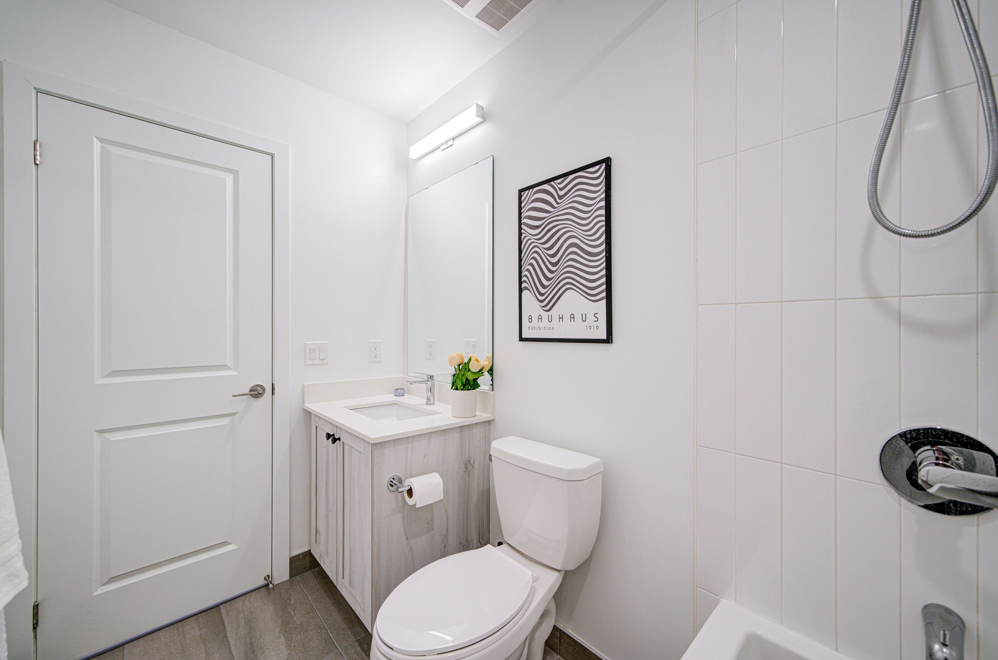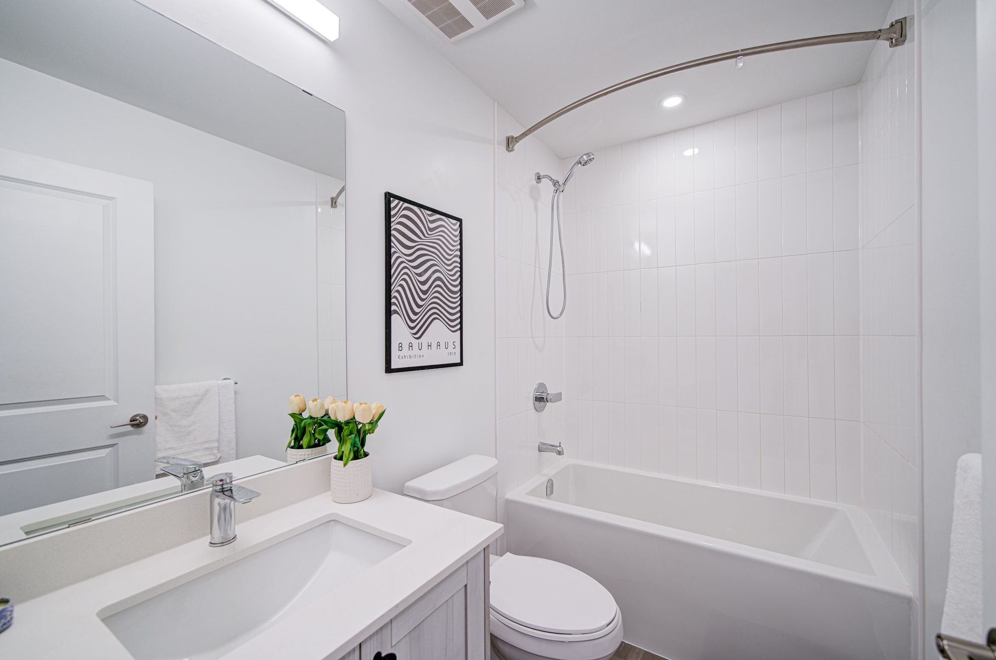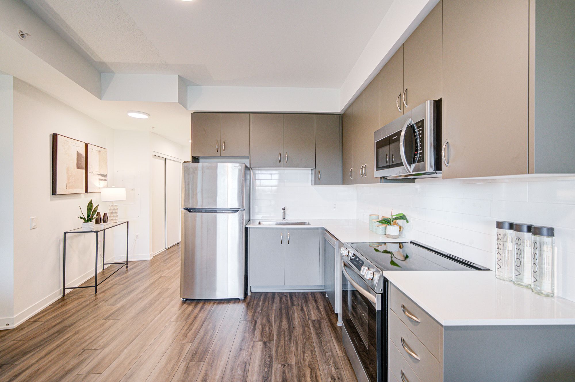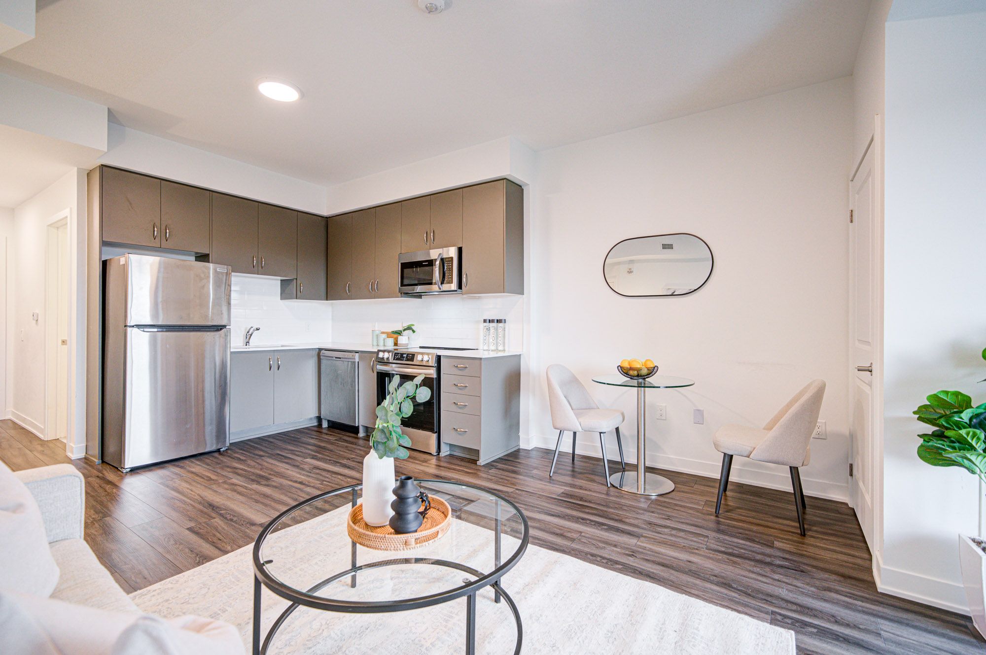 • Modern kitchen features quartz countertops and brand-new stainless steel appliances.