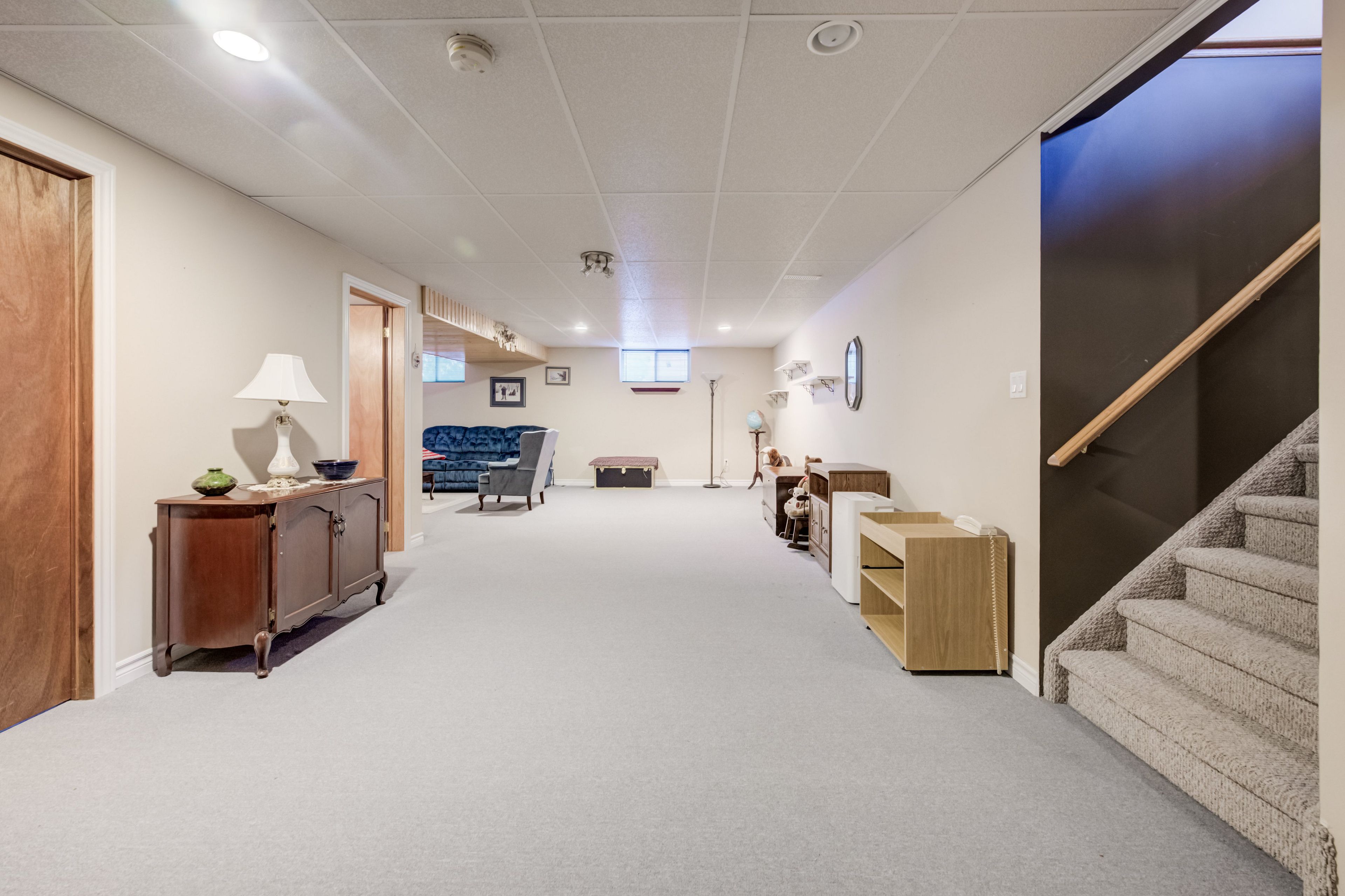 • Fully finished basement with a rec room, additional bedroom, and ample storage.