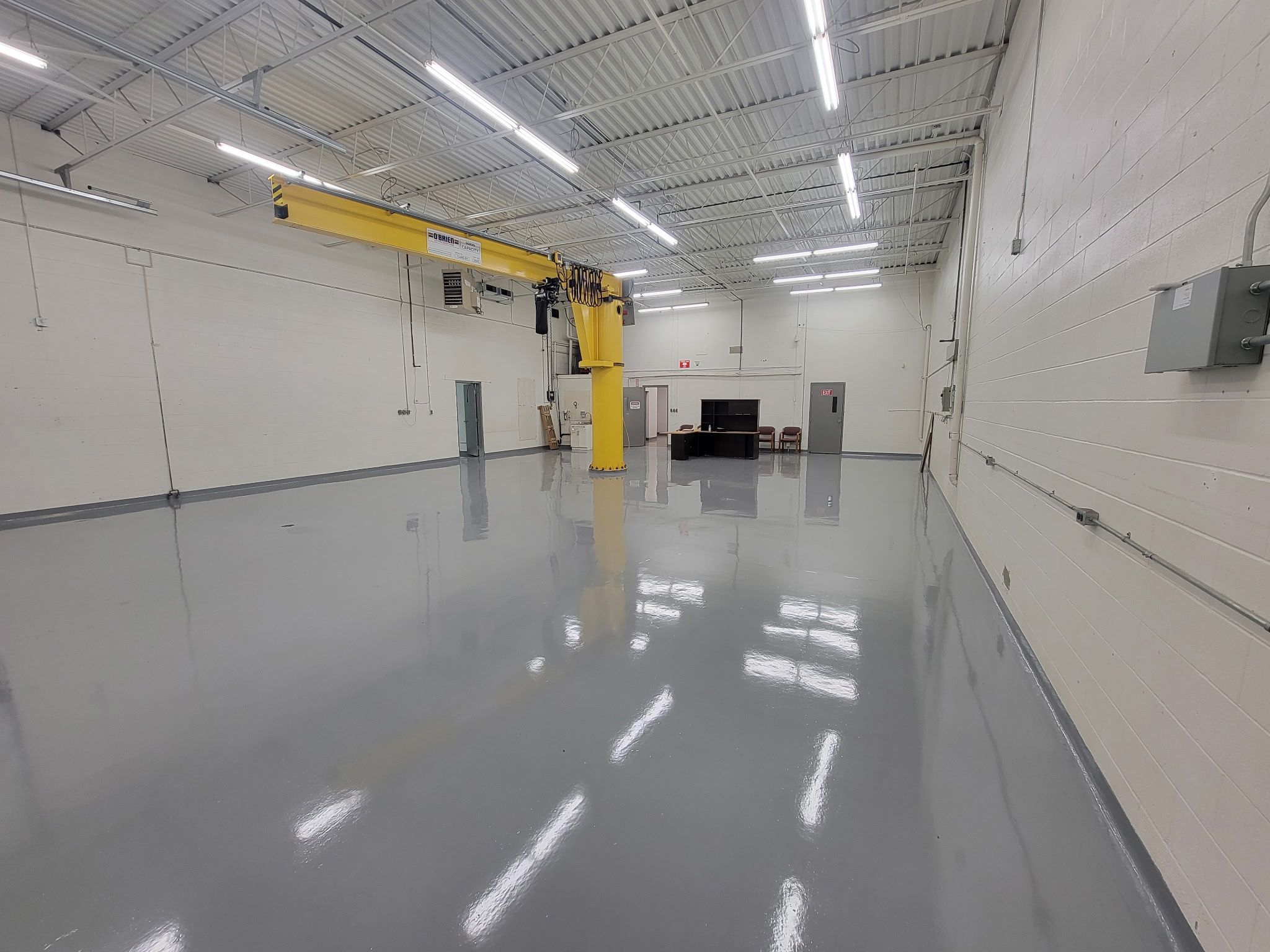 Unit 2 (3320 sq ft) 6,400 sq ft building - swing crane available 1040 sq ft office - 10 ft wide 14 ft high drive in door