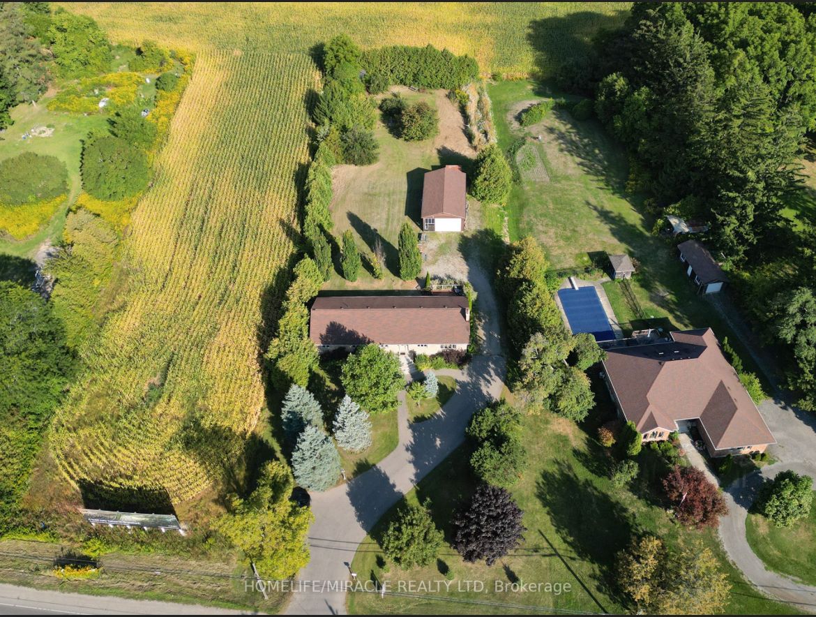 City sophistication meets country soul: your 1-acre private sanctuary escape to this breathtaking 2,205 sq. Ft. All-brick bungalow, where the peace of the countryside blends seamlessly with the prestige of the city. Nestled on a sprawling one-acre lot in one of brantford's most elite enclaves-surrounded by $1m-$2m estates-this property is a rare find that promises both lifestyle and legacy. The heart of the home-the main level boasts four generous bedrooms, headlined by a massive primary suite that serves as a blank canvas for your dream ensuite bath. Step through elegant french doors onto an expansive deck, where you can sip your morning coffee while overlooking your lush, private forest. Endless utility & potential-downstairs, the home continues to impress with a cavernous regroom, a dedicated workshop, and a full three-piece bath. For the hobbyist or collector, the1,008 sq. Ft. Detached workshops a showstopper. Featuring 10' overhead doors, drive-through access, and sun-drenched interiors, it's the ultimate space for a four-car collection or a professional-grade studio. A land of opportunity-the grounds are a nature lover's dream, dotted with fruit trees and garden plots positioned to capture both golden sunrises and vibrant sunsets. Modern comforts-enjoy the reliability of municipal water and natural gas, with the peace of mind that comes from a new furnace, a/c, and water heater (2021). Don't settle for the ordinary. Secure a home that offers the space you crave, the luxury you deserve, and the future potential you've been looking for!