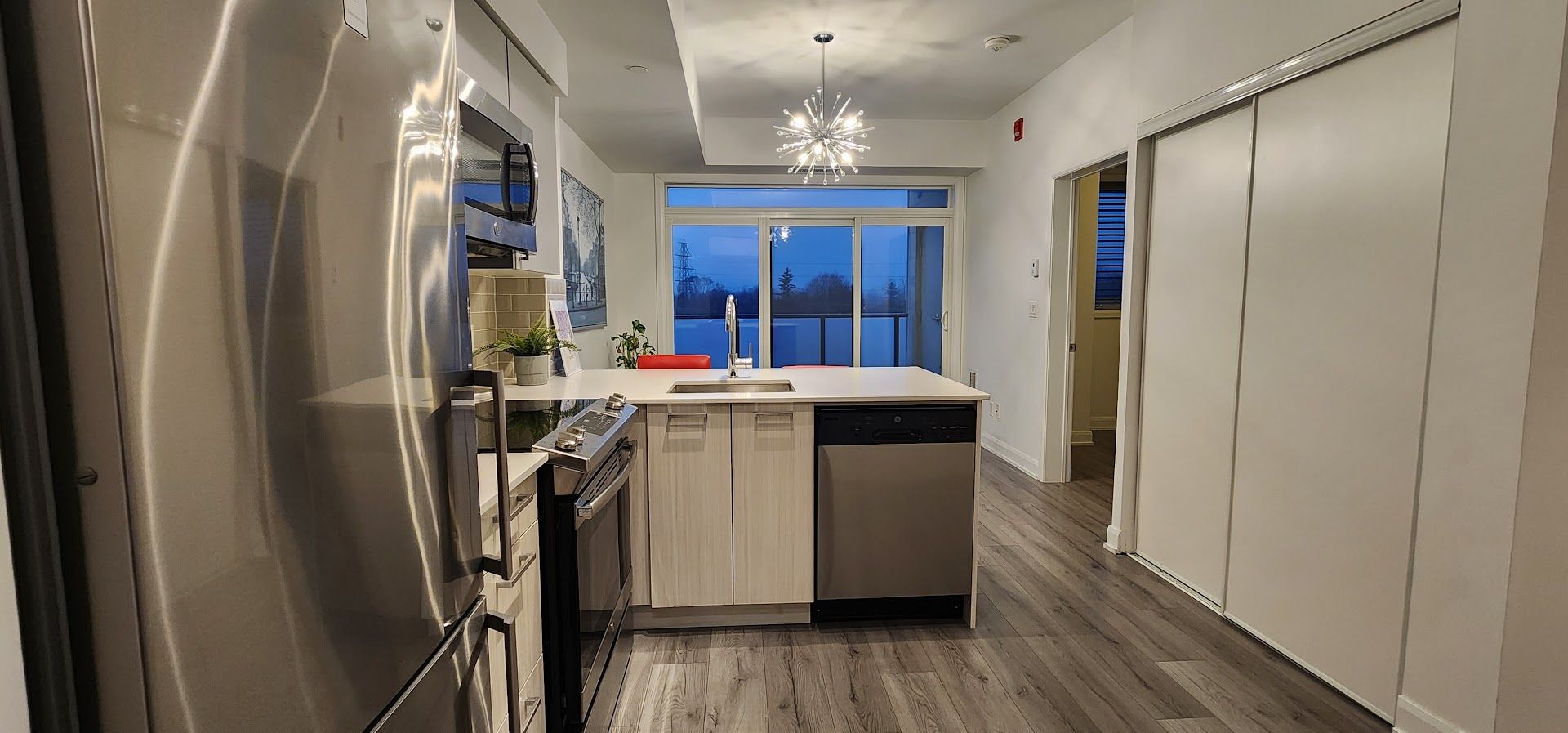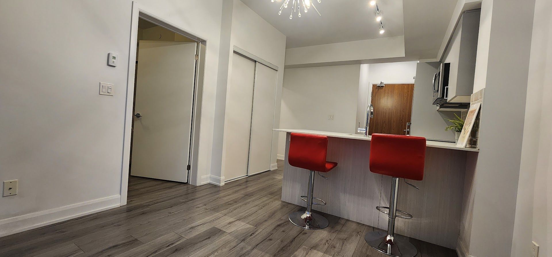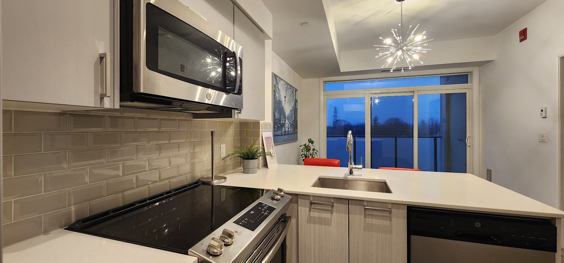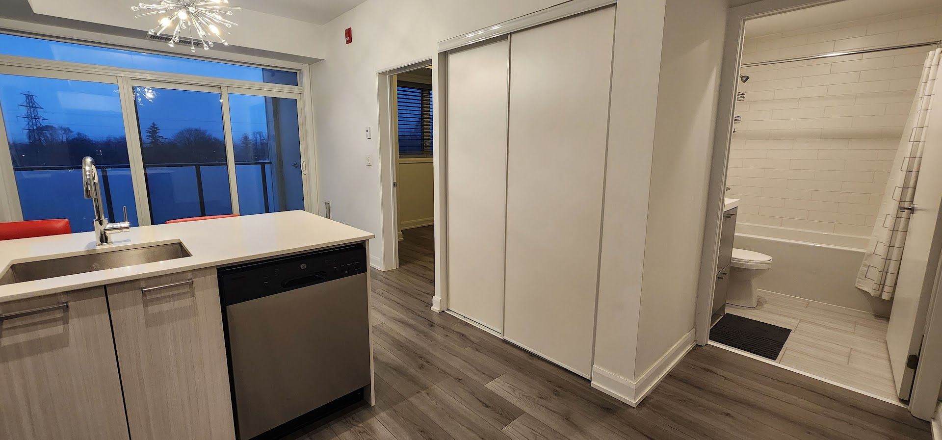 Welcome to your sleek new home at 385 osler street. This stunning, modern 1-bedroom suite is the perfect match for young professionals or couples looking for that perfect blend of style, convenience, and community. Open-concept living featuring gorgeous wide-plank flooring and soaring floor-to-ceiling windows that flood the space with natural light. Elevate your cooking game with high-end stainless steel appliances, crisp subway tile backsplash, and a functional breakfast bar perfect for morning coffee or evening cocktails. Step out onto your private balcony to enjoy sweeping, unobstructed views of the vibrant st. Clair west skyline-an ideal spot to unwind after a busy day. Designer finishes with the "sputnik" chandelier to the clean lines of the spa-like bathroom, every detail has been curated for a modern lifestyle. Stay active in the full-scale gym, host friends in the chic party room, or find some quiet time in the building's library. Unbeatable connectivity with the st. Clair streetcar just steps away, making your commute a breeze. Located in the sought-after st. Clair west district, you are walking distance to eclectic cafes, trendy restaurants, local shops, and lush parks. Don't miss out on this opportunity to live in one of the city's most dynamic neighborhood.