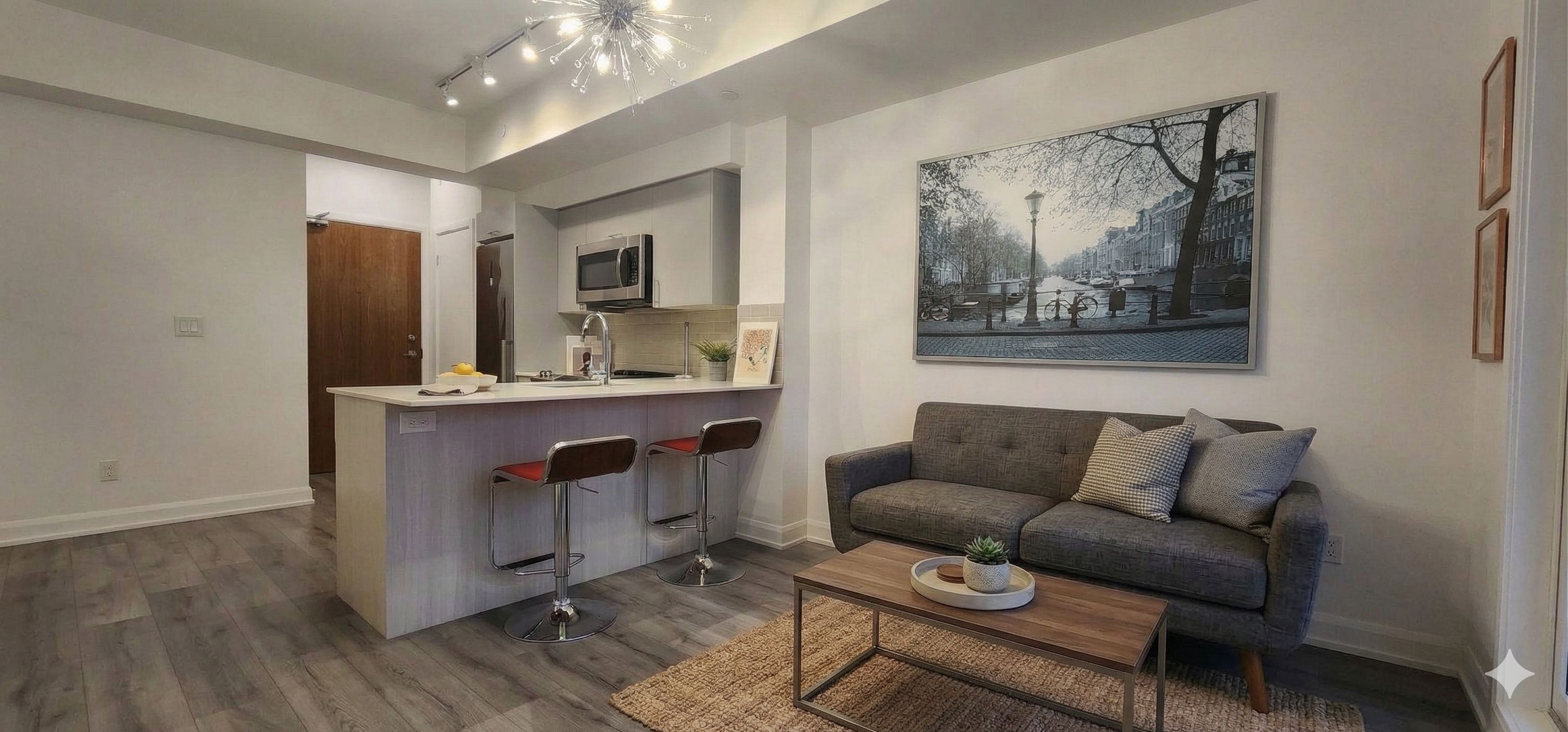 • Modern 1-bedroom suite ideal for young professionals or couples.