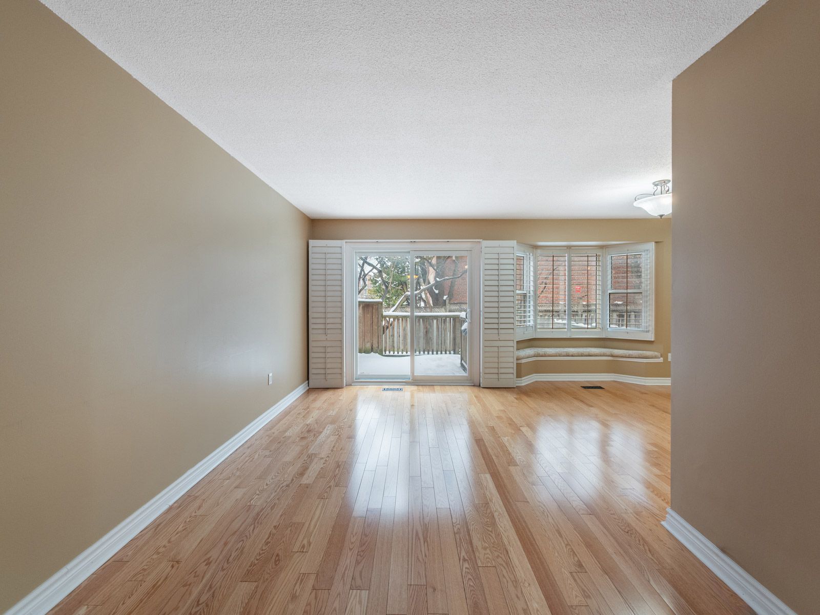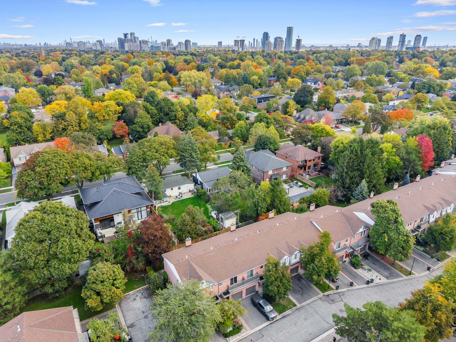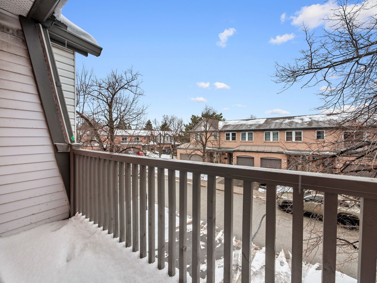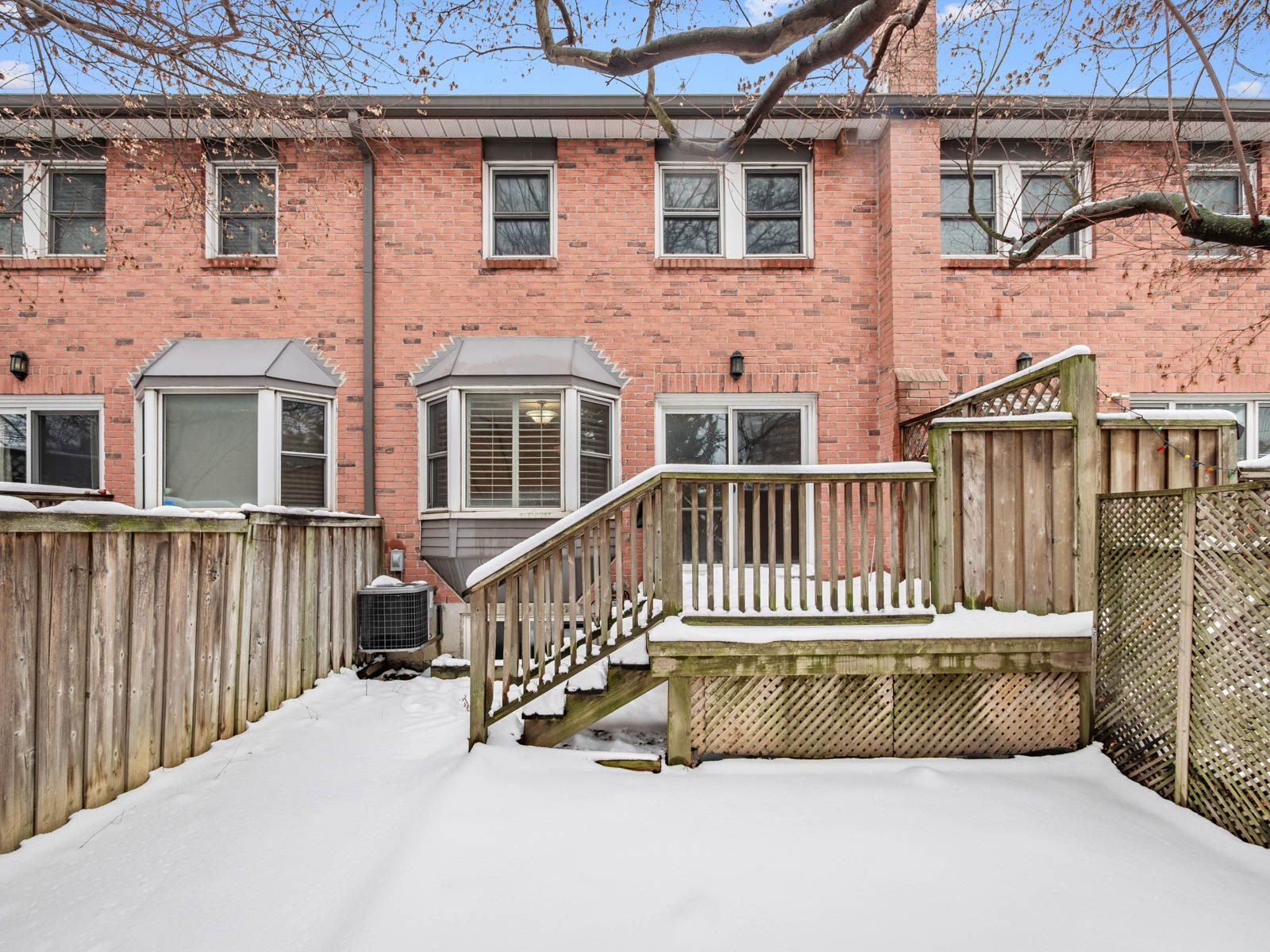 Bright, stylish, and move-in ready, this beautifully renovated condo townhouse at 385 the east mall #60 offers an inviting layout ideal for professionals, small families, or anyone seeking a well-connected, low-maintenance lifestyle. Step inside to a sun-filled main floor featuring an open-concept living and dining area with hardwood flooring, perfect for everyday living or entertaining, seamlessly flowing into a crisp, modern kitchen that has been tastefully renovated with granite countertops, a breakfast bar, porcelain flooring, ample cabinetry, and upgraded stainless steel appliances (except the fridge), including a newer samsung smart range. Enjoy effortless indoor-outdoor living with a walk-out to the deck and fully fenced yard, ideal for morning coffee, summer barbecues, or quiet evenings at home. Upstairs, two generous bedrooms each offer walk-in closets and private, renovated ensuite bathrooms with modern finishes; the primary suite serves as a serene retreat, while the second bedroom is enhanced by a charming juliette balcony that fills the space with natural light. The finished basement adds valuable living space with a renovated recreation room and upgraded laundry area with sink, complementing the home's carpet-free interior and thoughtful updates throughout the kitchen, bathrooms, and all principal rooms. Also close to highway 427, public transit, and downtown, this home offers exceptional convenience with quick access to parks, schools, libraries, places of worship, shops, dining, and everyday amenities. Meticulously maintained and thoughtfully upgraded, this townhome truly has it all-style, comfort, and location-and you'll fall in love the moment you step inside; it's even better in person than in photos. **listing contains virtually staged photos**