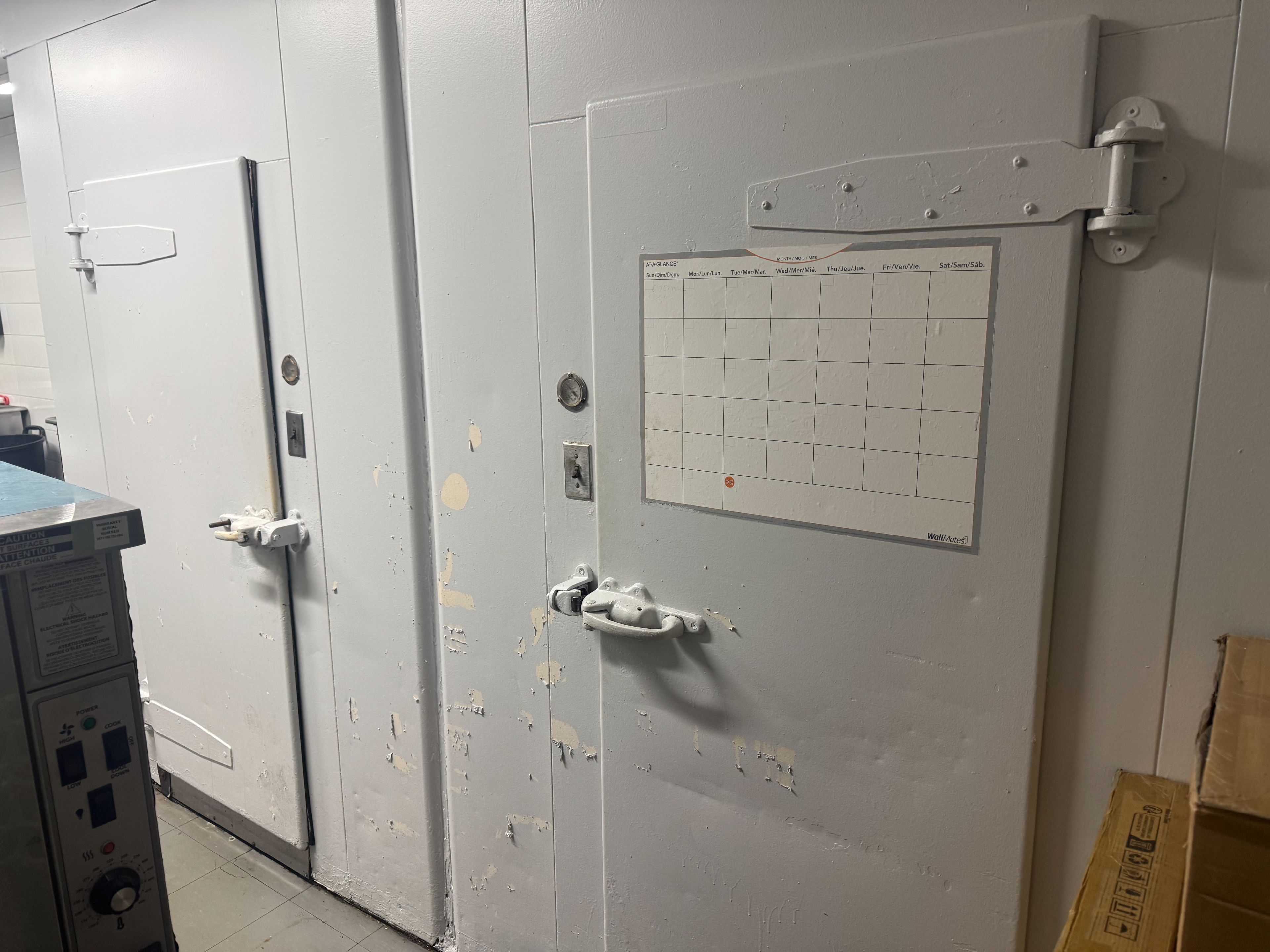 • Large kitchen equipped with walk-in fridges and extensive equipment.
