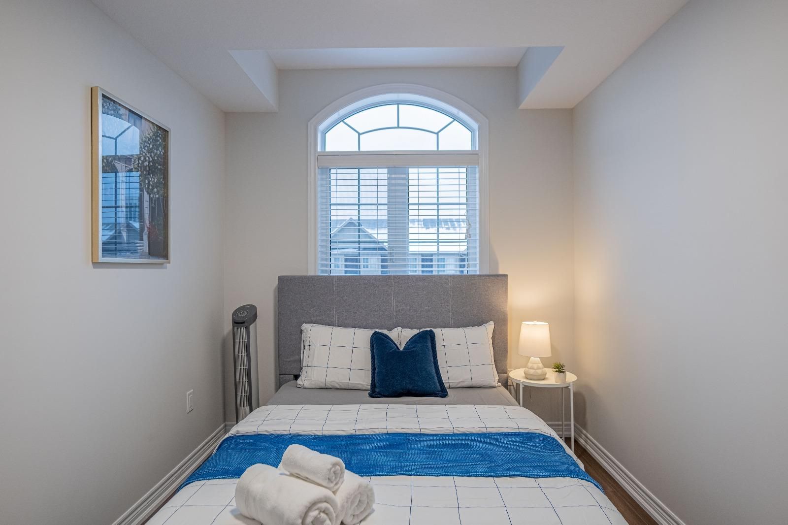 Fully furnished 4 bedrooms end unit t/h like semi-detached on ravine. Approx. 2200 sq. Ft living sp, 4 bedrooms, 9' ceilings on main floor, ugraded flooring. Upgraded kitchen w/breakfast bar, upgraded washrooms. Bright & spacious great room w/o to backyard. Close to new oakville hospital, great schools, restaurants, grocery stores, parks, public transit. Easy access to 407 & 403. Short term or month to month lease is an option. Option available to rent as fully furnished.