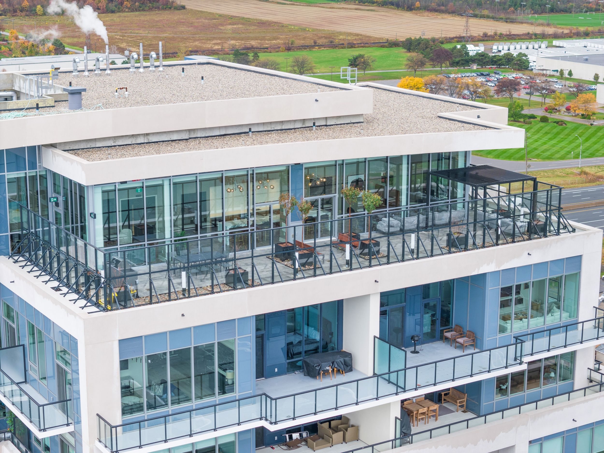 • Access to premium amenities including fitness studio and rooftop terrace.