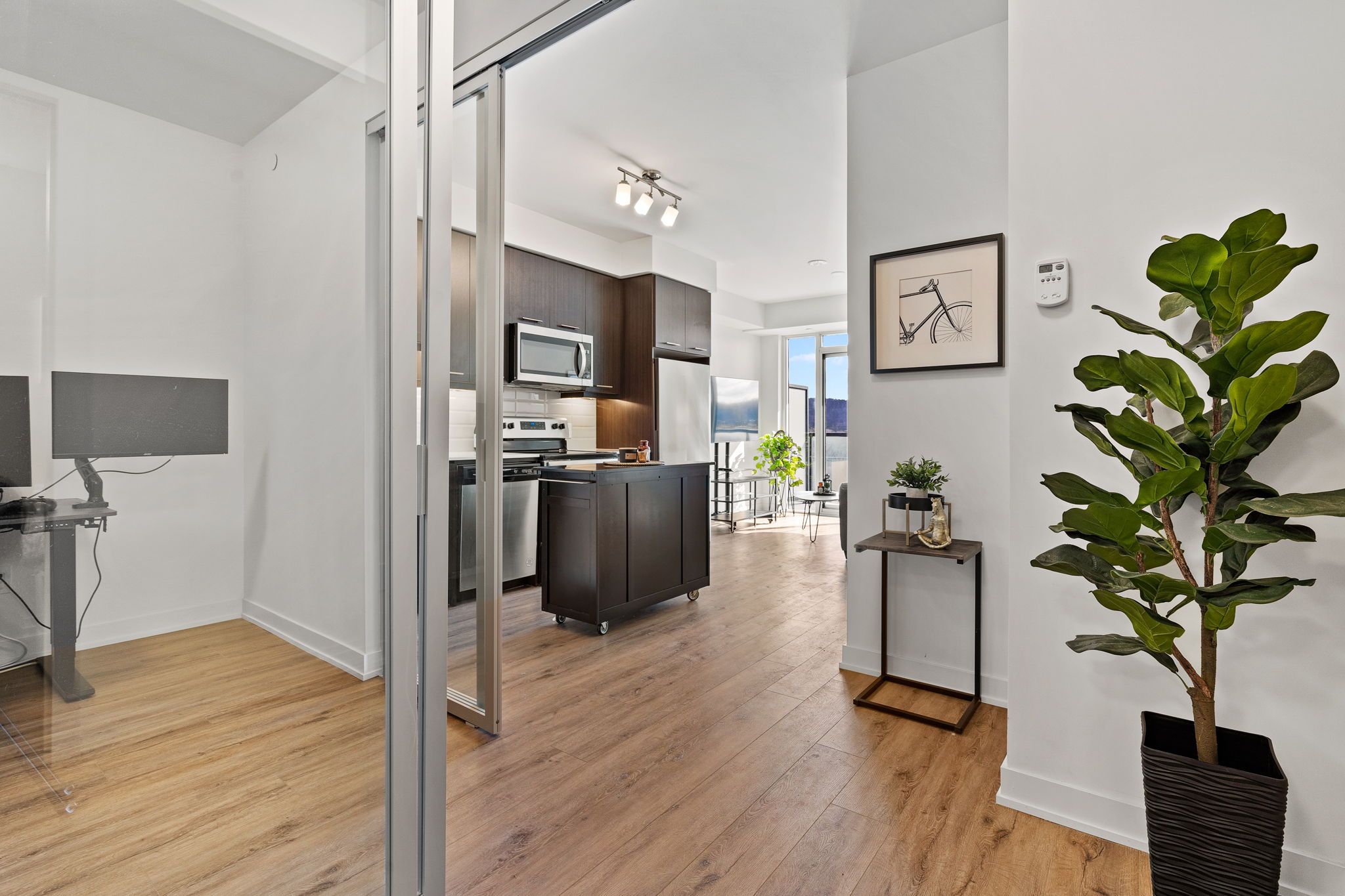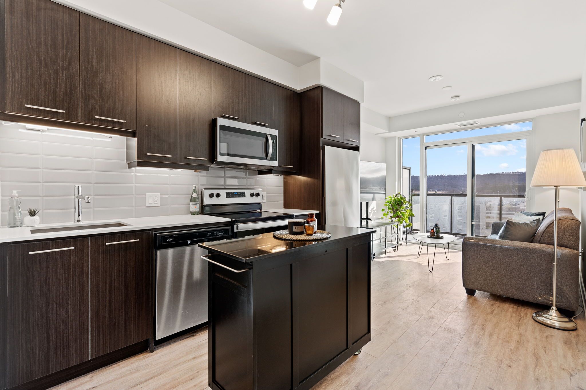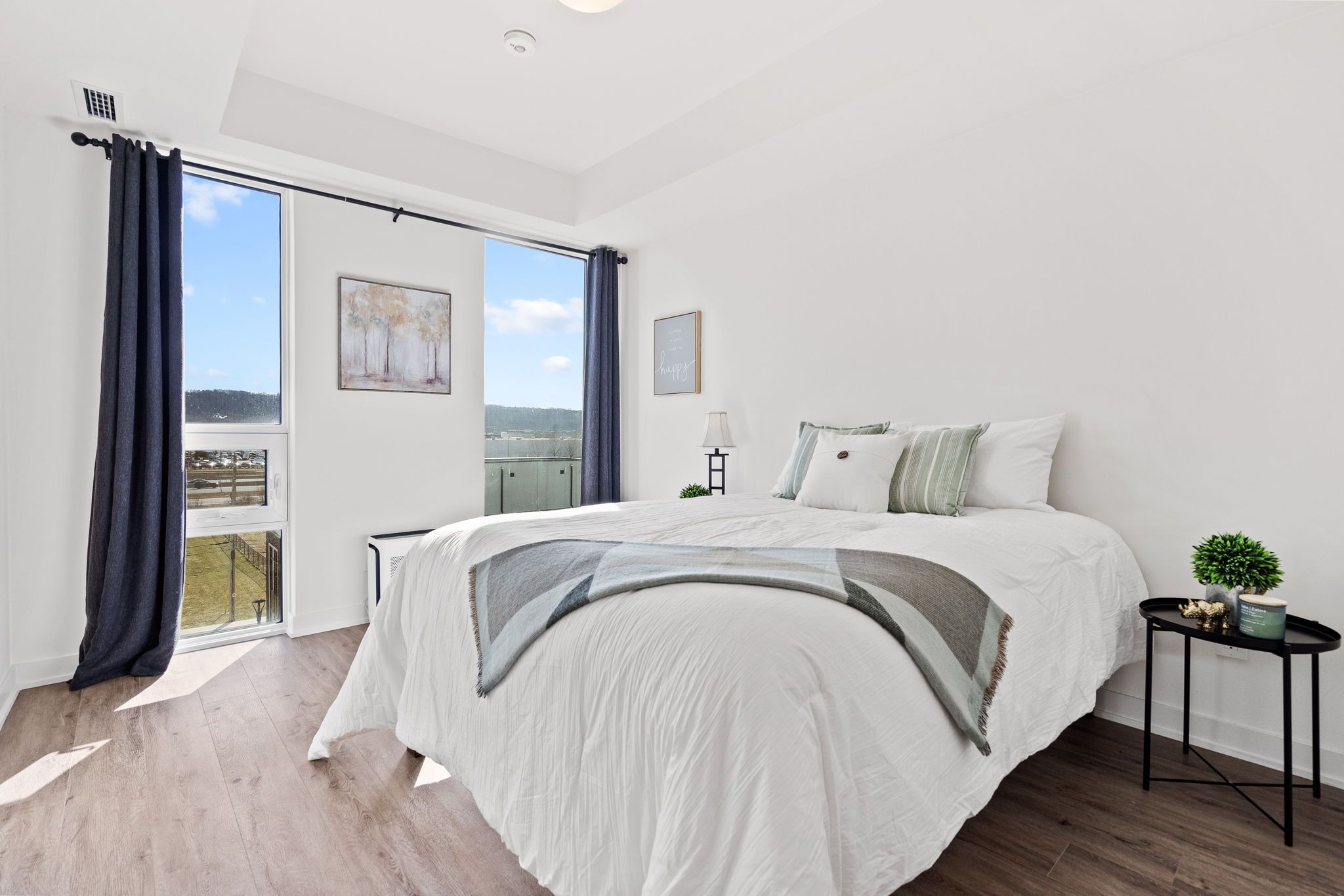 Life at 385 winston road offers a sense of ease that begins the moment you arrive. The lobby sets the tone with a clean, modern design and 24-hour concierge, creating a welcoming and relaxed atmosphere throughout the building. Residents enjoy a thoughtful collection of amenities including a fitness centre and yoga studio, a beautifully designed party room with a kitchenette and bathrooms, and a rooftop terrace with wide lake views that make it easy to step outside and take in the surroundings. A pet spa adds everyday convenience, while underground parking keeps winter mornings simple. Inside the suite, a welcoming foyer with a double closet offers a practical place to settle in before the space opens into the main living area. The kitchen is well appointed with stainless steel appliances and a functional layout that keeps everything within easy reach. The living room offers a relaxed place to unwind and leads out to a private balcony for fresh air and quiet moments. A glassed-in den provides a flexible space that works well as a home office, reading area, or creative corner. The bedroom is generously sized and easily fits a king-size bed with room to move comfortably around it. Tall windows enhance the sense of space, while a large closet and a 3-piece ensuite with a glass door shower add convenience. A second 4-piece bathroom and in-suite laundry complete the layout. Step outside and the lifestyle continues. Grimsby-on-the-lake is known for its boutique shops, restaurants, cafes, and charming waterfront community. Scenic paths, everyday conveniences, and quick access to the highway make commuting and errands effortless while keeping the lake always in view. With light, connection, and quiet luxury by the water, the charm of this property is not just in its walls, but in the life it promises.