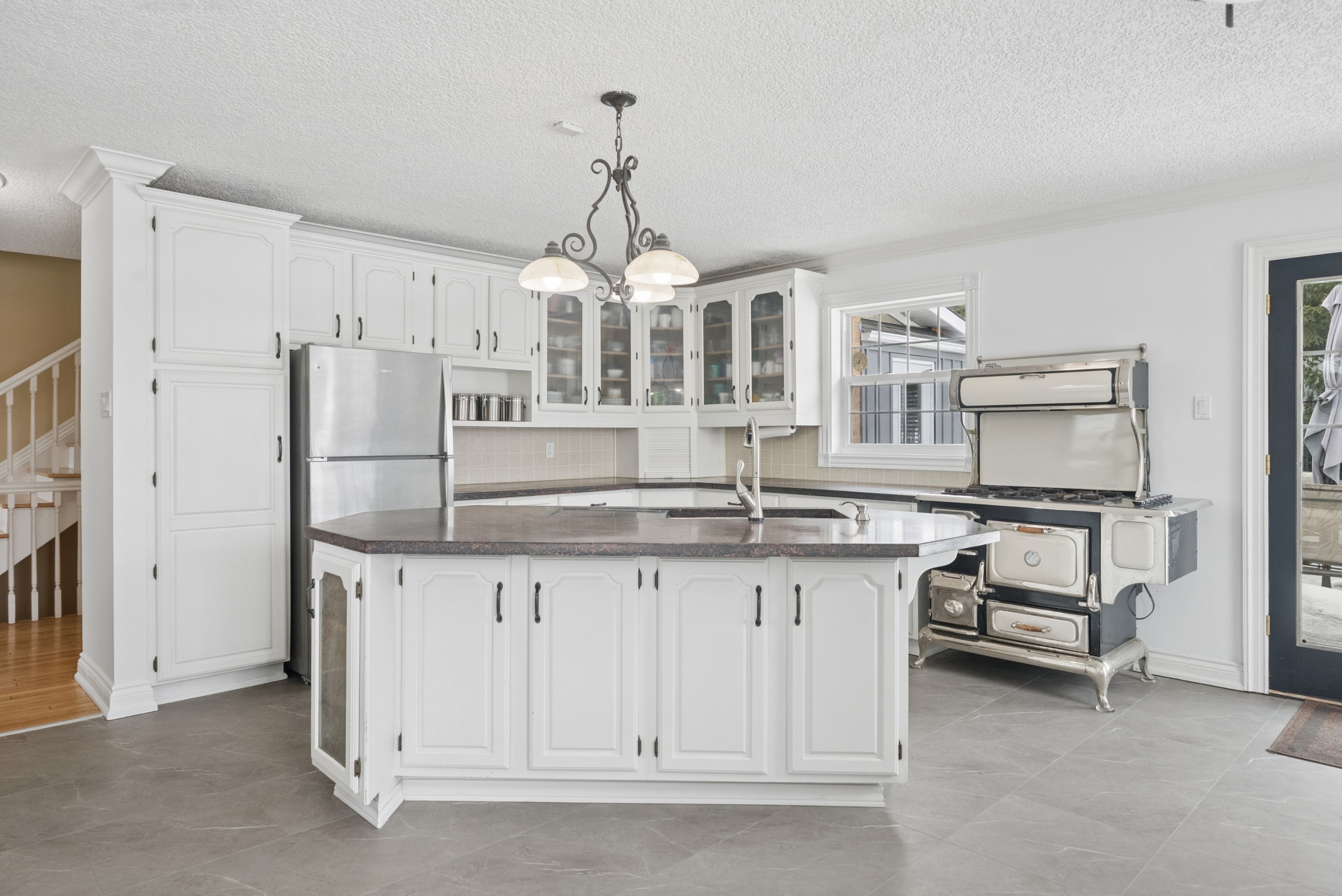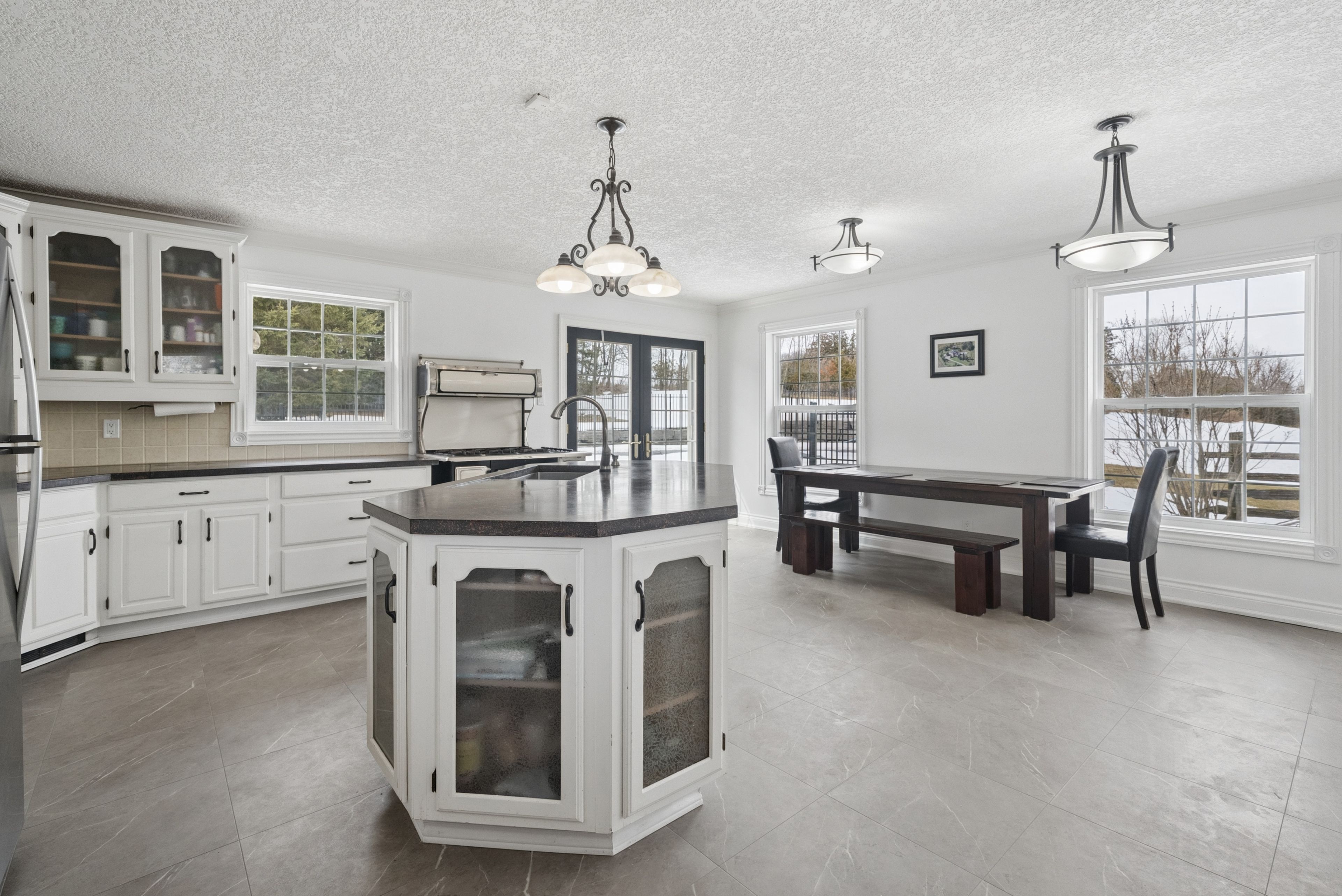 • Spacious eat-in kitchen with convenient walkouts to patio and pool.