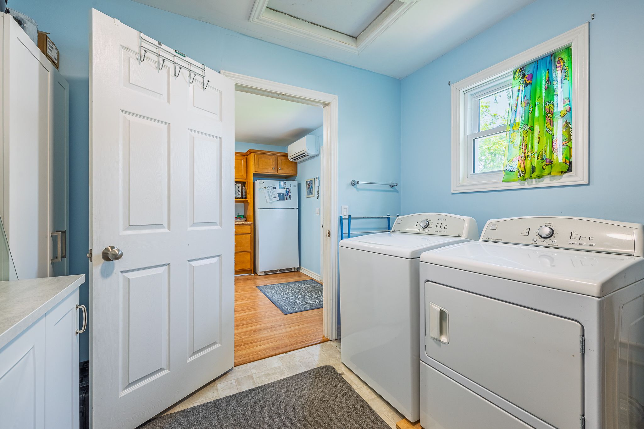 • Functional eat-in kitchen and convenient main floor laundry with storage.