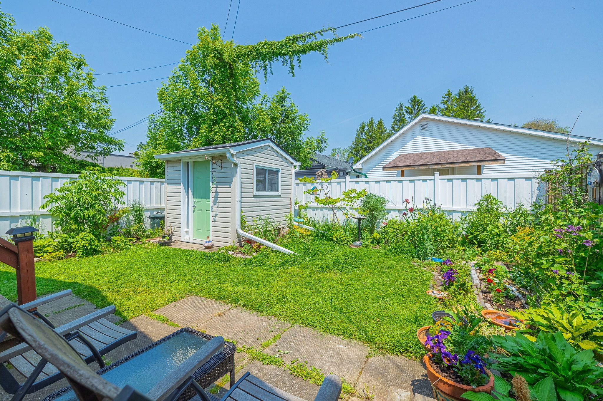 • Fully fenced backyard oasis with shed and low-maintenance charm.