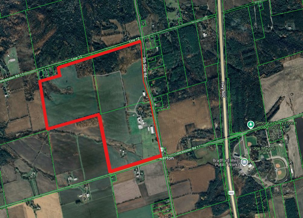 A rare 300 acre land holding with unmatched potential in one of ontario's most strategic and high-growth corridors. Sadlon farm represents one of the largest assembled land holdings currently available in canada, ideally situated for current use, large-scale residential or mixed-use planning. Located in fast growing bradford west gwillimbury, a key growth area in the greater golden horseshoe. 45 minutes from the gta and minutes to highway 400, future bradford bypass, go transit and regional transportation hubs. Key highlights: three municipal road frontages: approx. 4,500 ft on 5th sideroad, 1,840 ft on line 11 and 1,325 ft on line 12. Private internal road system connecting all parcels. Excellent topography and majority of land outside conservation regulation. Located within the designated growth corridor of simcoe county. Features four residences on-site and income potential with two luxury homes, one 3-bedroom brick bungalow, one 3-bedroom farmhouse. Two fully operational farms featuring: multiple barns, outbuildings, silos, pastures and crops. With its size, location, and accessibility, sadlon farm is an ideal candidate for current use end user, large-scale subdivision, master-planned community, or institutional development. A flagship opportunity in a municipality welcoming growth.