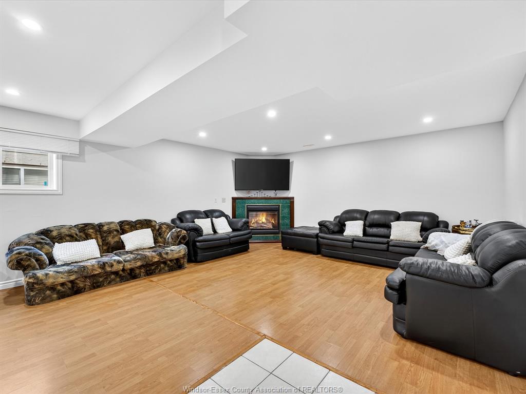 • Cozy lower living area features a gas fireplace for relaxation.