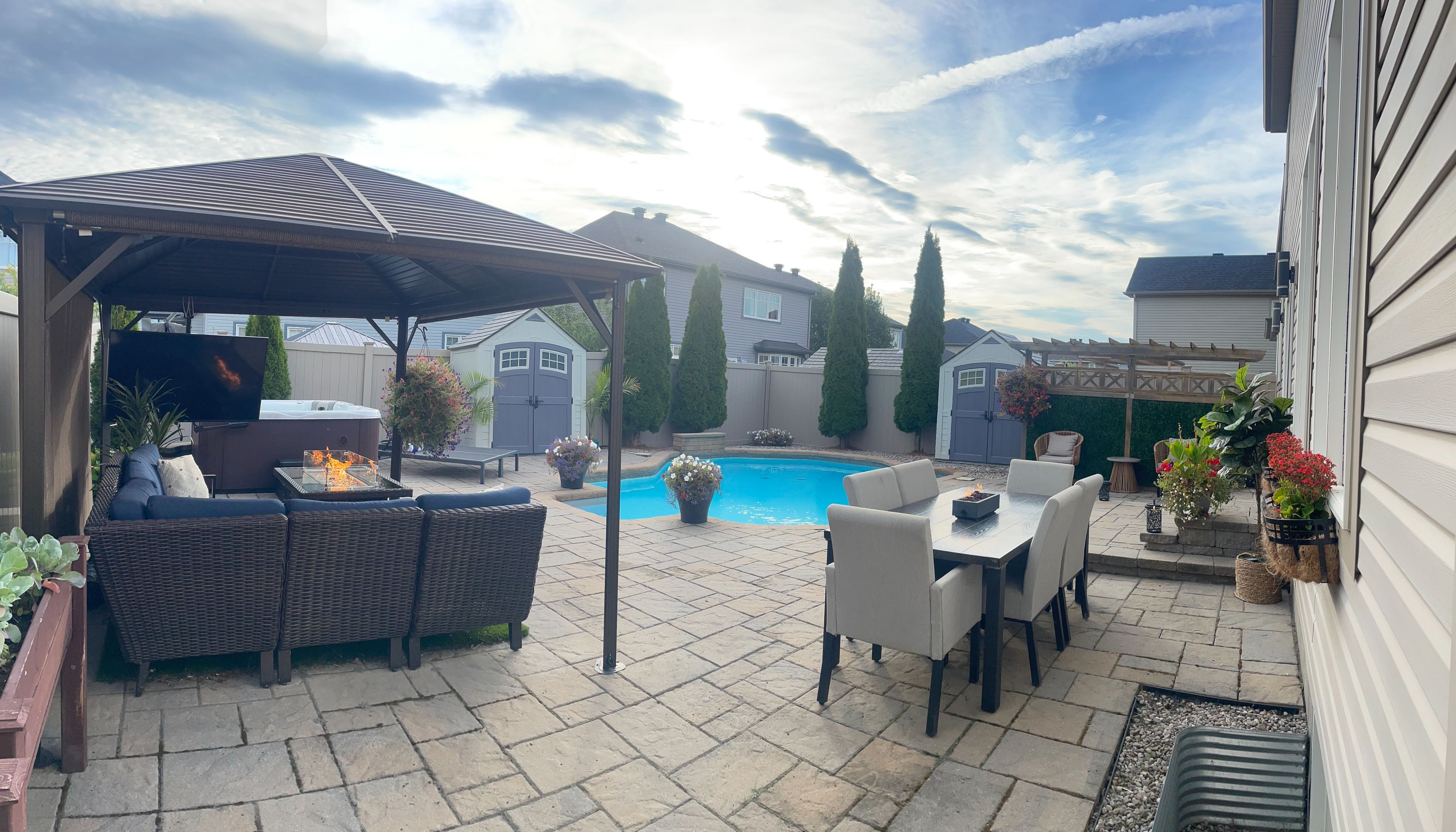 • Stunning backyard oasis with heated saltwater pool and waterfall for entertaining.