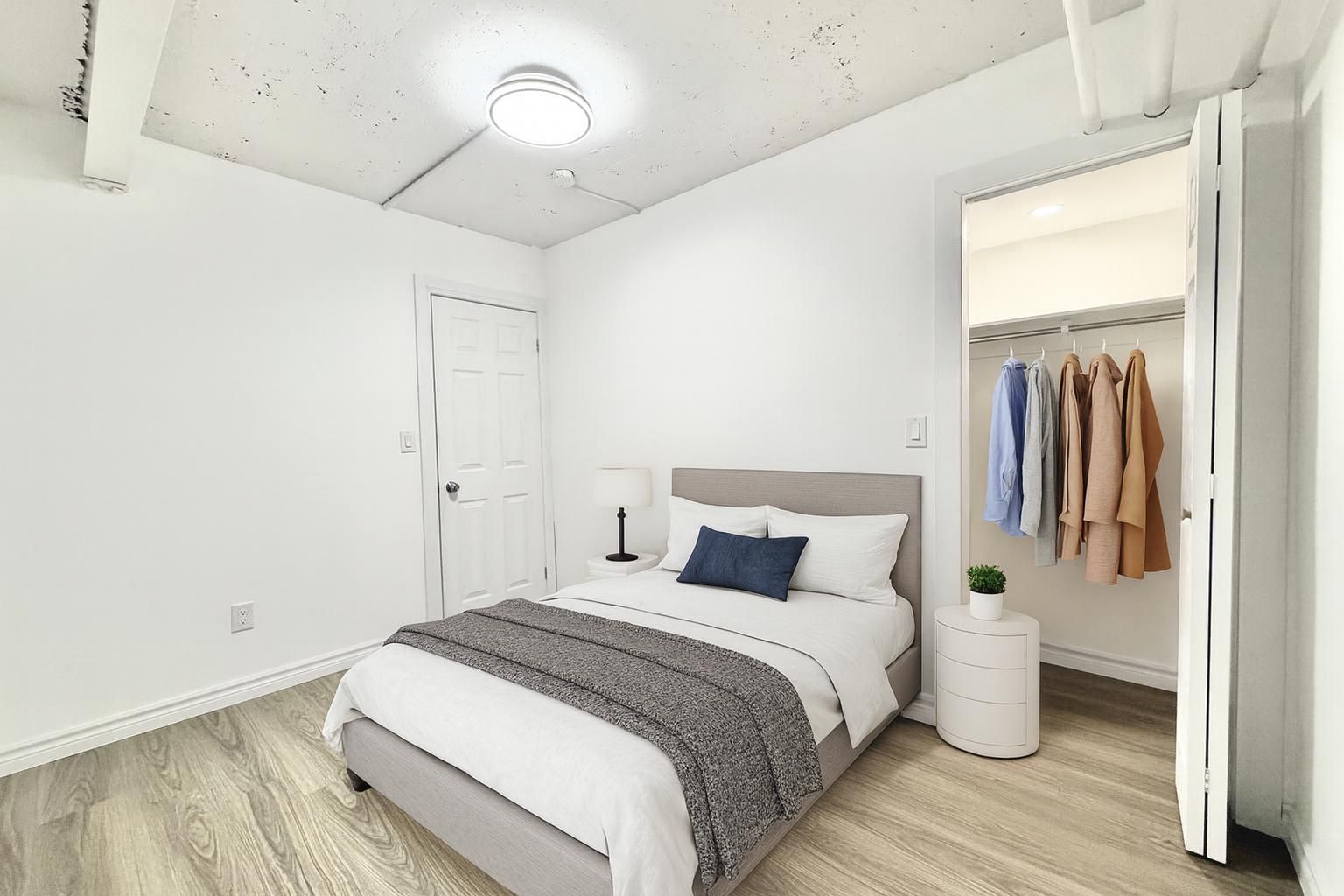 • Generous storage with a walk-in closet in the bedroom.