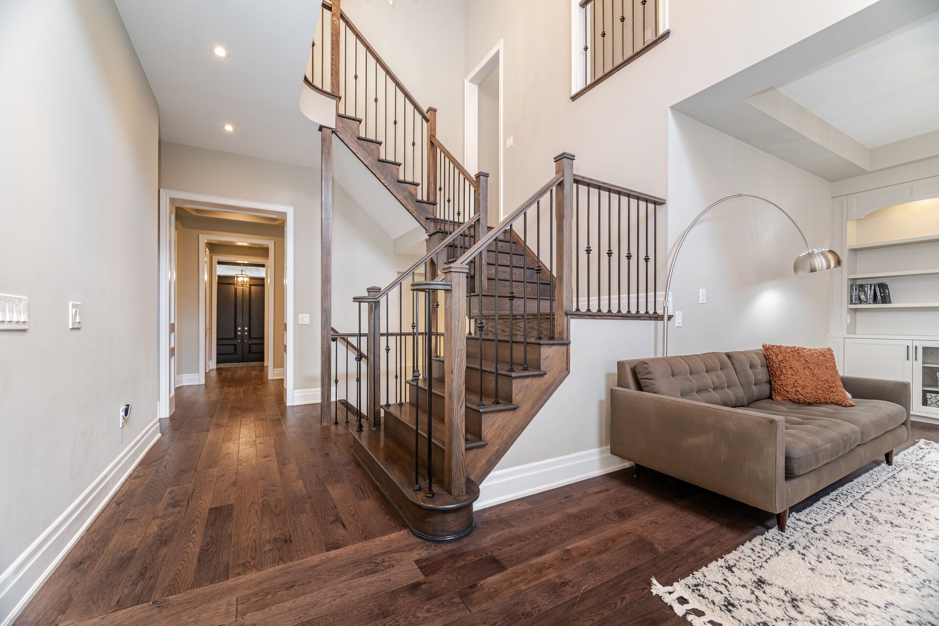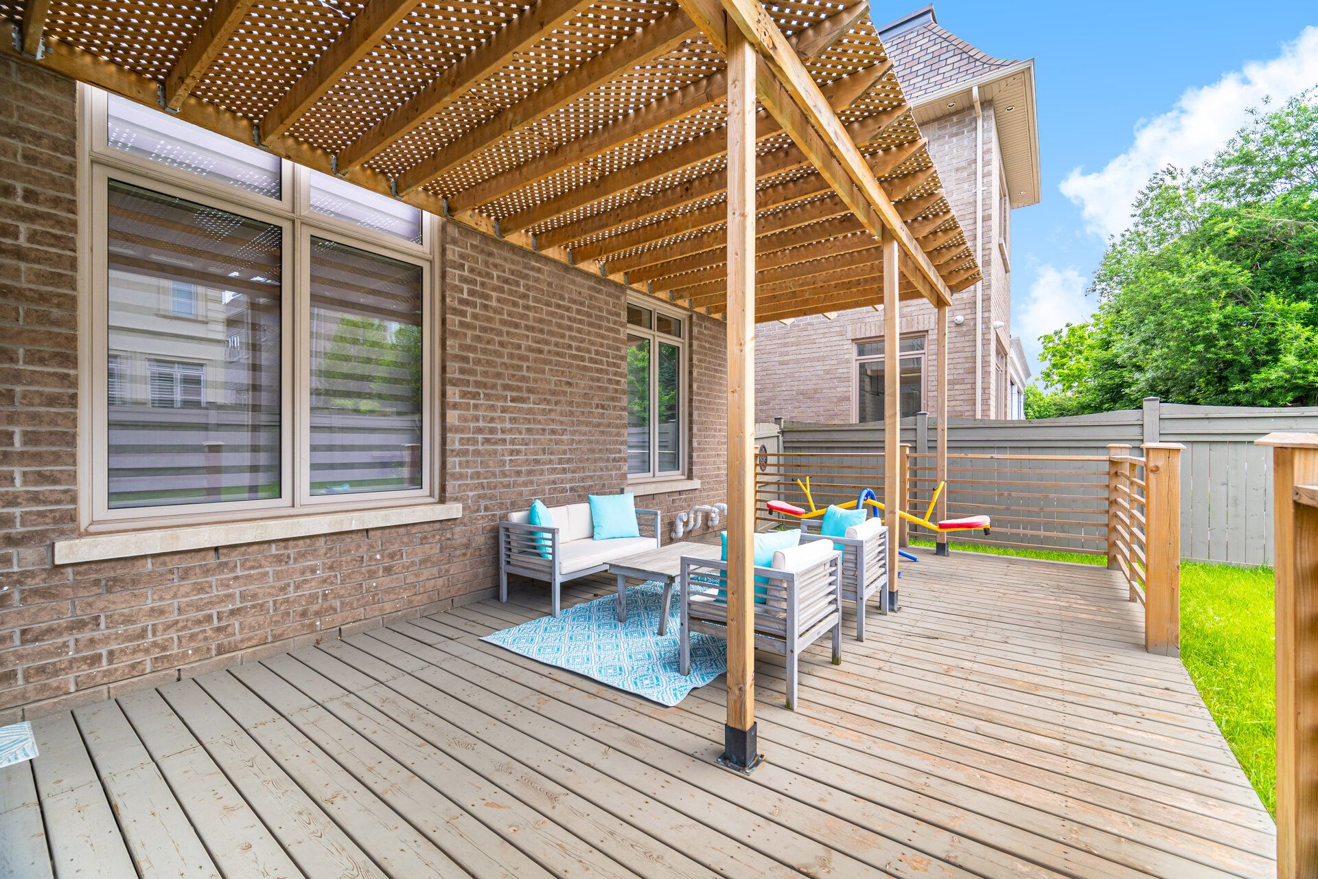 Welcome to the royal oakville club a prestigious enclave by fernbrook homes. Ideally located just mins from vibrant downtown oakville, this exquisite 4-bedroom detached residence offers almost 4,000 square feet of finely curated living space, tailored for the most discerning homeowner. The thoughtfully designed floor plan boasts soaring ceilings throughout, including a dramatic 15-foot ceiling in the great room that brings in an abundance of natural light. Featuring three bathrooms, including a convenient jack and jill on the upper level, the layout balances luxury and functionality. Custom cabinetry can be found throughout the home, paired beautifully with quartzite counters and designer finishes in the kitchen. Elevated details such as curated light fixtures, custom wall treatments, and striking wallpaper accents add layers of sophistication. Upstairs, the primary suite includes a fully customized walk-in closet, and an additional second-floor office area features sleek built-in cabinetry perfect for today's work-from-home needs. Step outside to a beautiful pool-sized backyard, complete with a covered deck, a built-in entertaining area, and a designated bbq/recreation space ideal for summer gatherings. This is a rare opportunity to live in one of oakville's most coveted neighborhoods, in a home that blends timeless elegance with modern luxury. Floor plan attached