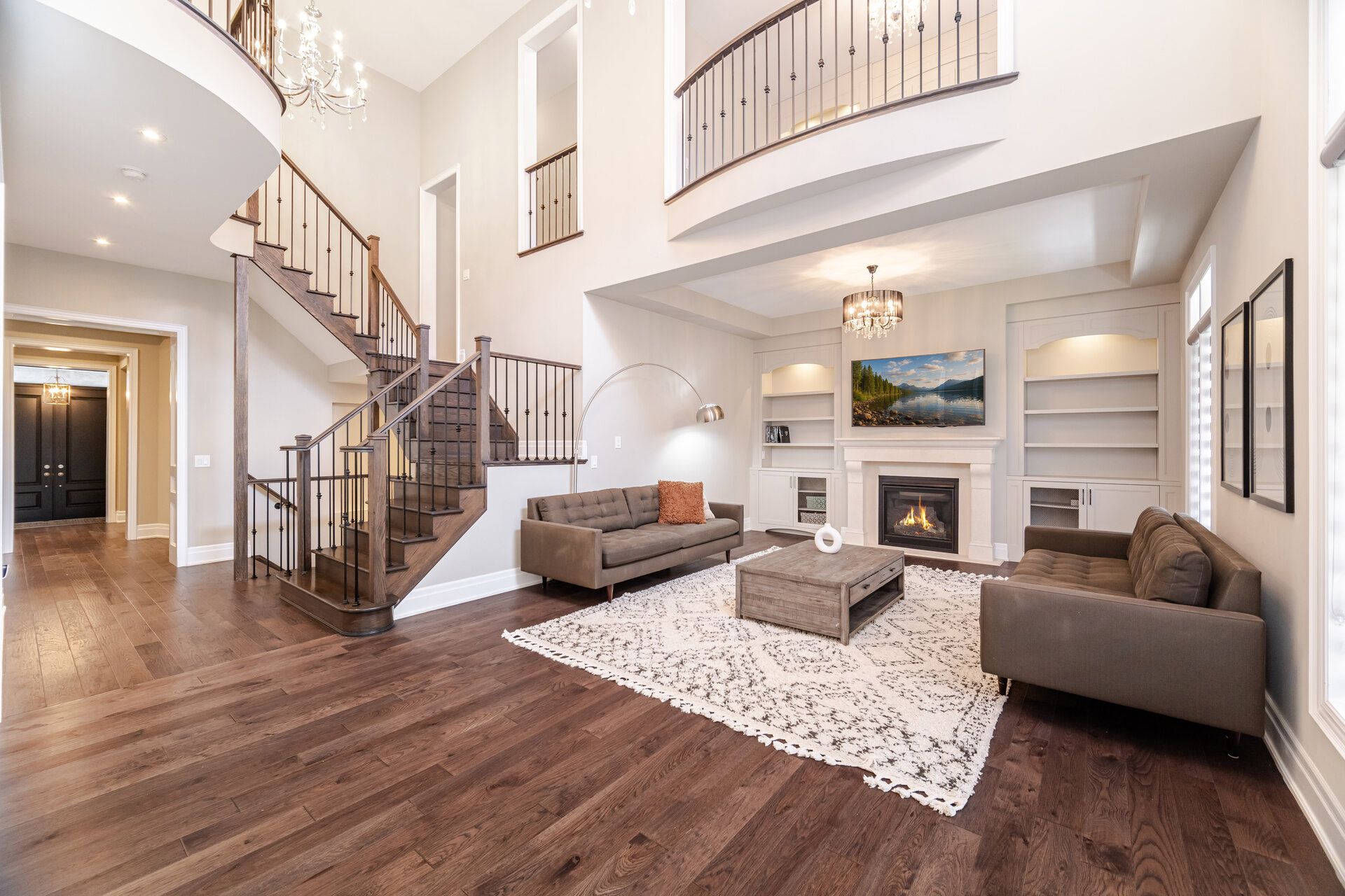 • Great room features dramatic 15-foot ceilings for natural light and openness.