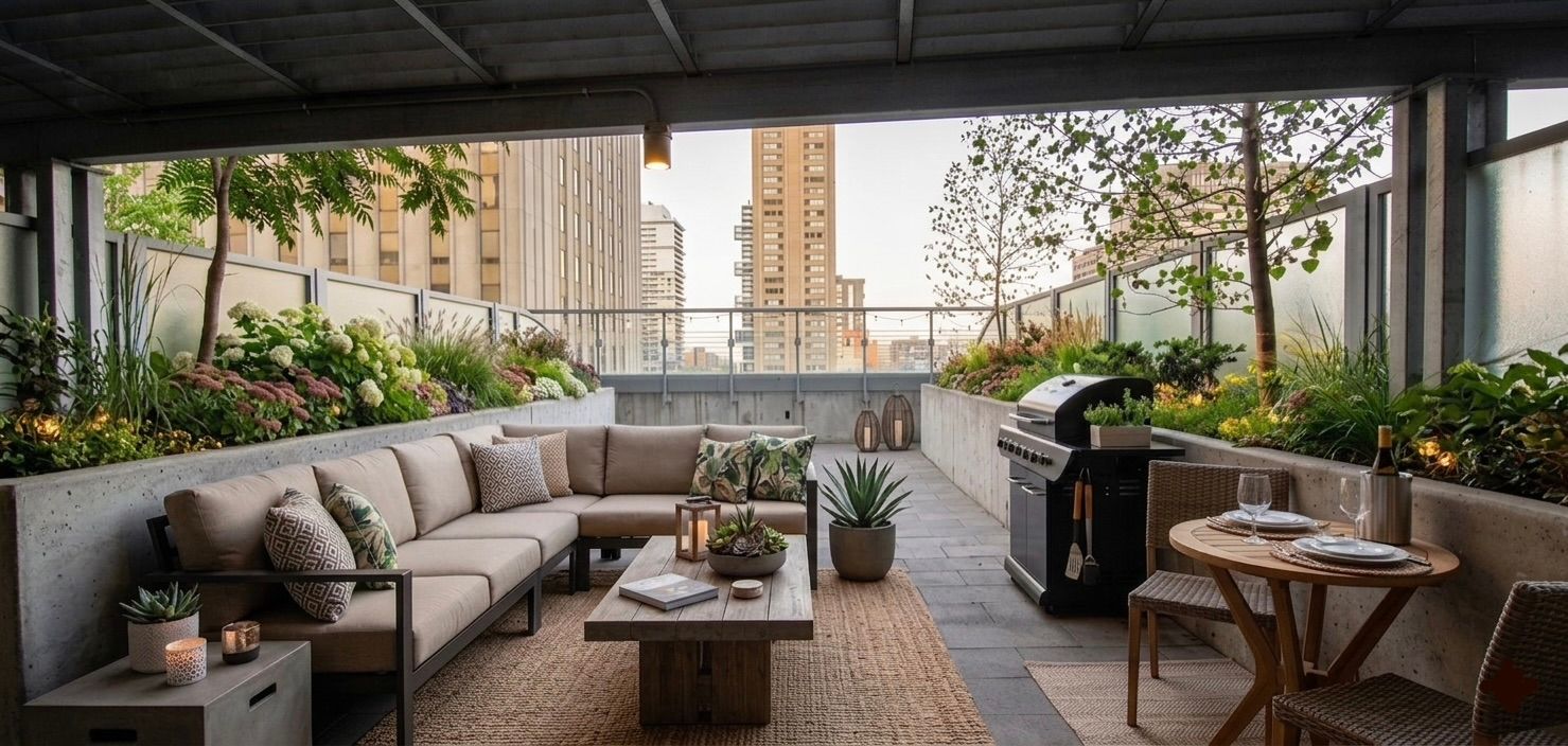 • Bright 1 bed + den condo with spacious private terrace for entertaining.