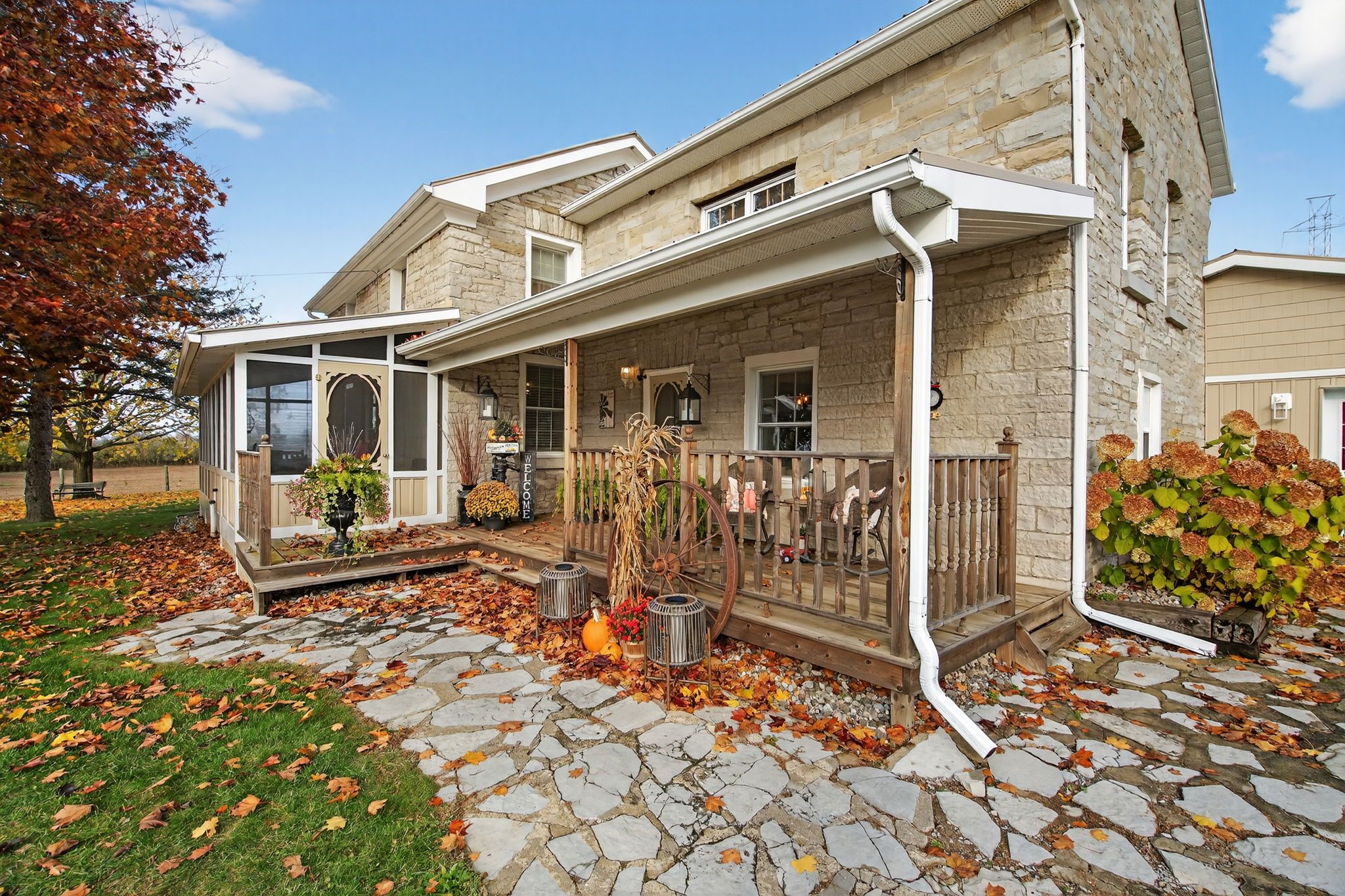 3861 alton road - stunning limestone farmhouse on 80 acres. Welcome to 3861 alton road, an exceptional farm property offering the perfect blend of charm, functionality, and modern comfort. Currently operating as a cattle farm-but just as well suited for horses-this beautiful acreage provides endless possibilities for agricultural, hobby, or country lifestyle pursuits. The centerpiece of the property is the incredible limestone farmhouse, featuring 3 bedrooms including a spacious primary suite, gleaming cherry hardwood floors, fresh carpeting, and an inviting layout. The eat-in country kitchen boasts a large central island, perfect for gatherings, while the cozy family room and flexible main-floor office/den offer great every day living spaces. Recent updates include a new heat pump, oil tank, and garage doors. Enjoy morning coffee on the screened-in front porch, or relax year-round in the enclosed hot tub room, which leads directly to a lovely inground pool-your own private retreat. An impressive30' x 30' attached heated 2-car garage adds comfort and convenience, while the outbuildings provide a full suite of farm-ready options. These include a new 38' x 60' machine shed with lean-to, a horse barn with 4 stalls and a tack room, also with a newer lean-to, an additional storage building, a riding ring, and electric fencing suitable for livestock. All outbuildings feature steel roofs for durability and low maintenance. The property spans approximately 80acres, with about 30 workable acres, offering space for crops, grazing, or expansion. Whether you're dreaming of a horse farm, a cattle operation, or simply the peaceful rural lifestyle, this property is ready to support your vision. 3861 alton road is a rare opportunity to own a beautifully maintained farm with a historic home, modern updates, and top-tier agricultural infrastructure-all in one remarkable package.