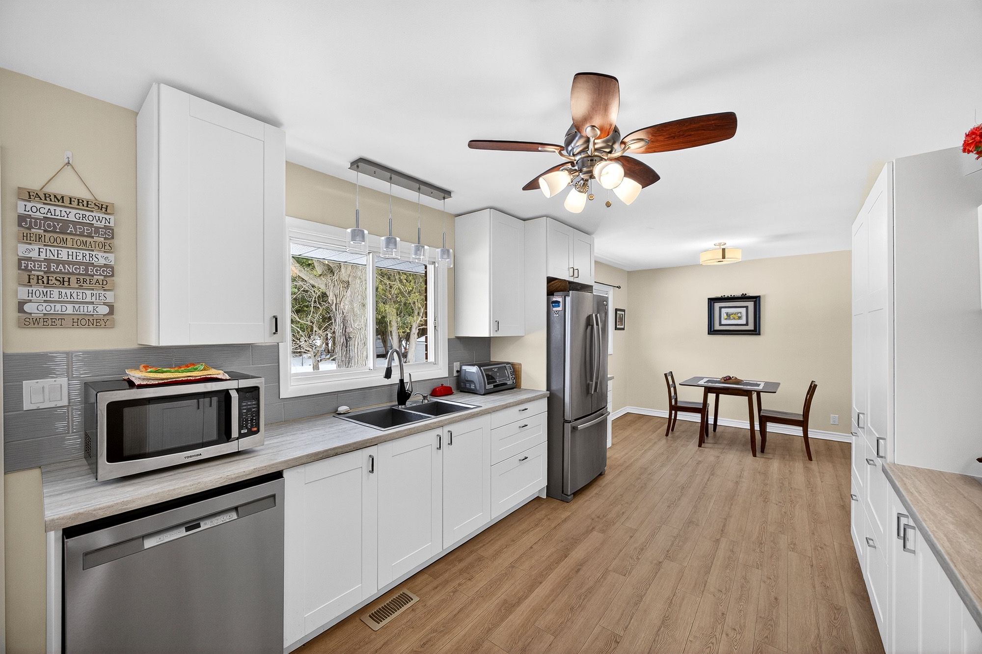 Situated in the village of carp, boasting a spacious living rm with cove ceilings & stunning moulding & trim, large gourmet kitchen w/energy saving dual fuel stove & ample storage space, work counters & integrated dining area. Hallway leads to full bathroom, 2 large bedrooms & 1 medium sized bedroom, perfect for a child or use as an office. The full basement has a recently partially remodeled area awaiting your finishing touches, a lovely new 2-pc powder rm, workshop & storage area, laundry area, gas furnace, new owned gas water heater & water softener. Outside you will find maintenance free decking at the front entrance and 20' x 16' deck in the back. The deck includes a permanently installed 12' x 12' hard top gazebo w/premium grade mosquito netting for your summer outdoor relaxation & entertainment. The garden has 2 large perennial flower beds w/a mix of native and ornamental flowers that bring a plethora of birds & pollinators. There is also a vegetable garden w/12 raised beds of various sizes. There are 2 storage sheds & a 3 bin compost area. The property has a 4 car recently paved driveway, a two car garage with a new cement floor, new insulated garage door, new chamberlain direct drive garage door opener w/battery back up to operate in a power outage. In the front yard there is a gorgeous crab apple tree that is a showstopper when in bloom in the spring, small shade flower bed & a full sun drenched bed that runs along the front of the house. The village has an outstanding medical clinic, that houses a lab, a physio facility and dental facility. There is another dentist in town as well as an excellent vet clinic for your pets. The town has several eateries, coffee shops, 2 bakeries, a nail salon, hair salons, a small rona, a yard equipment store, 2 barbershops, an lcbo & other small businesses. It is a 10 minute drive to kanata's high tech area as well as shopping & stittsville for more amenities. Home to the diefenbunker, elementary school, museum & library.