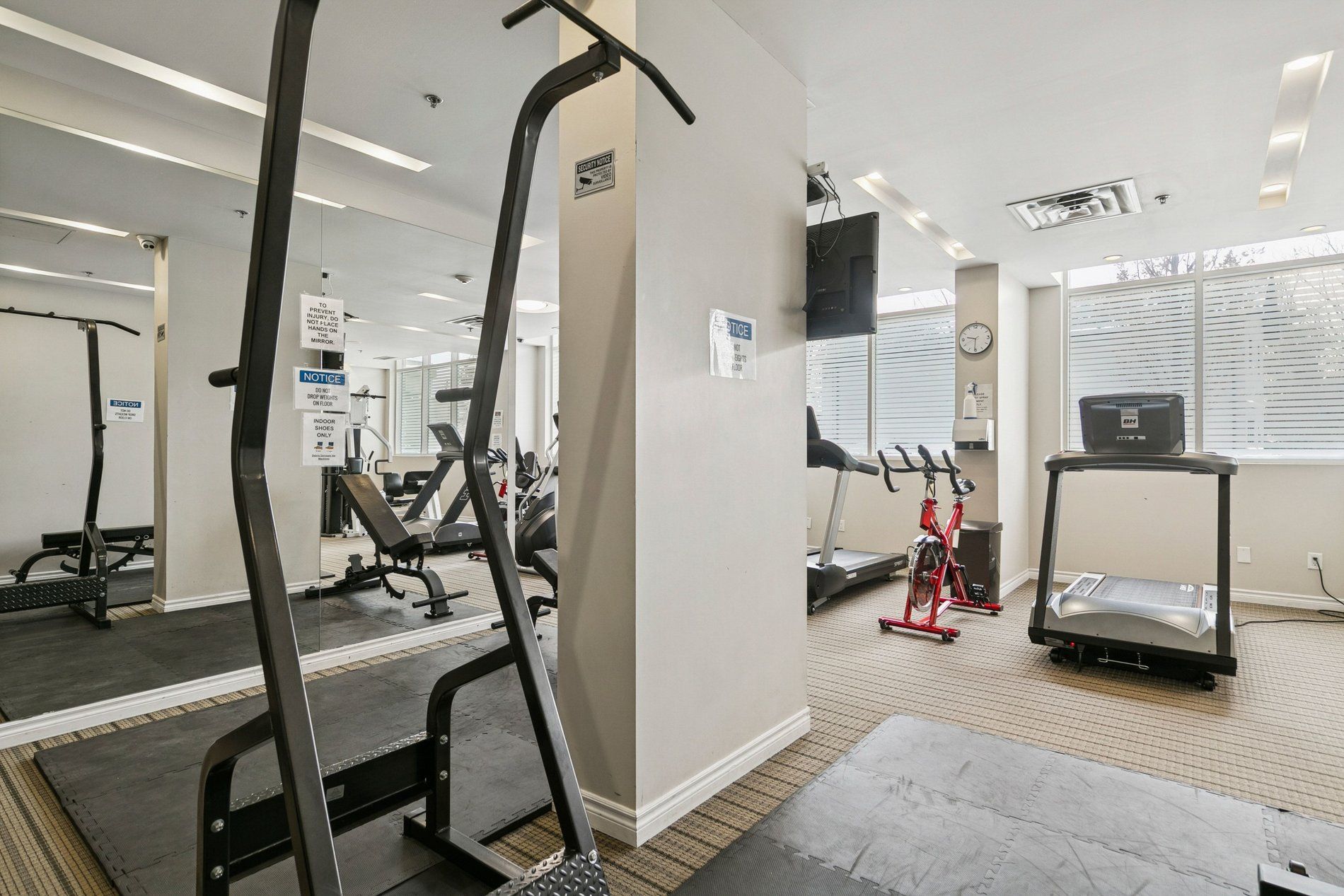 • Amenities include a gym, concierge, and visitor parking.
