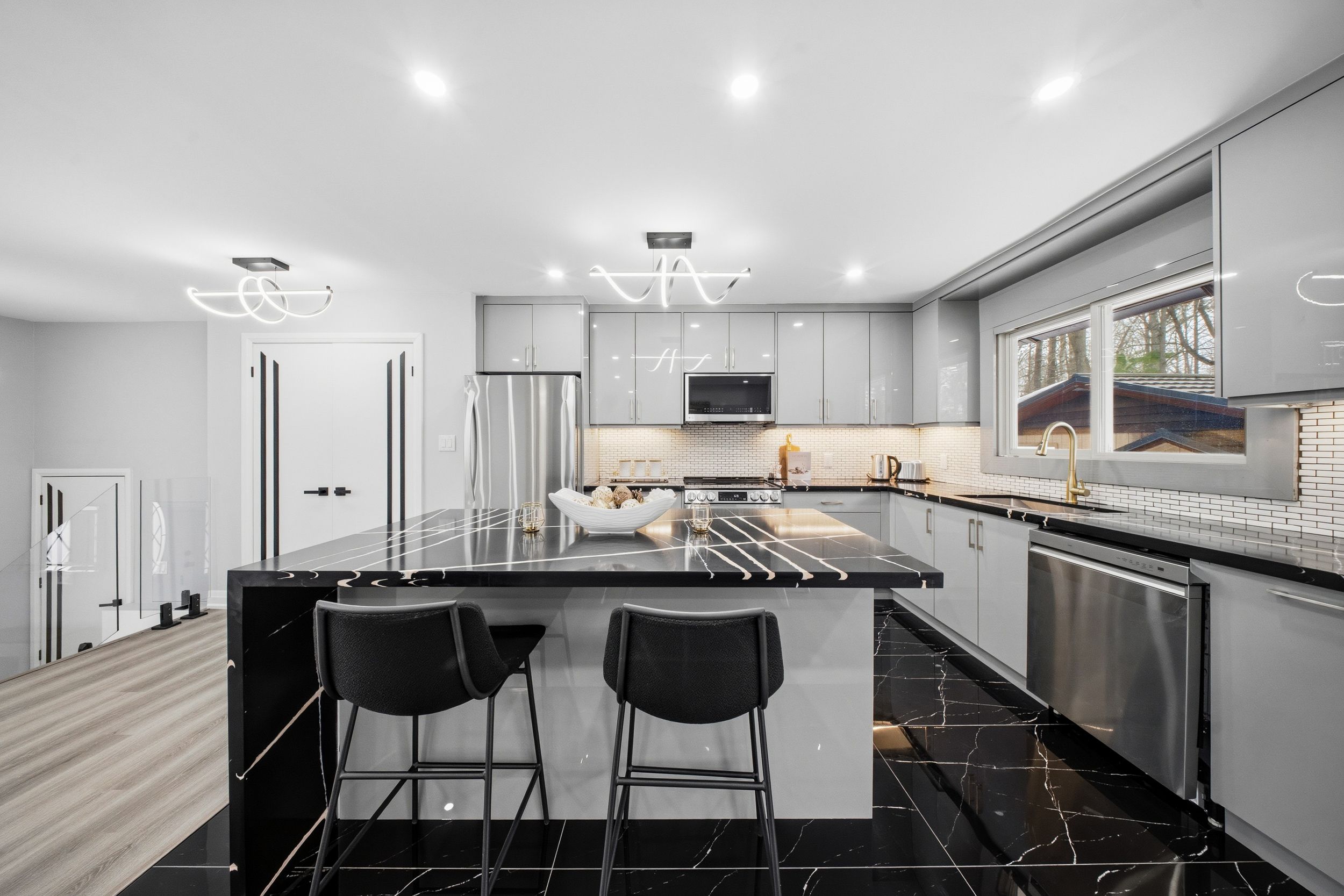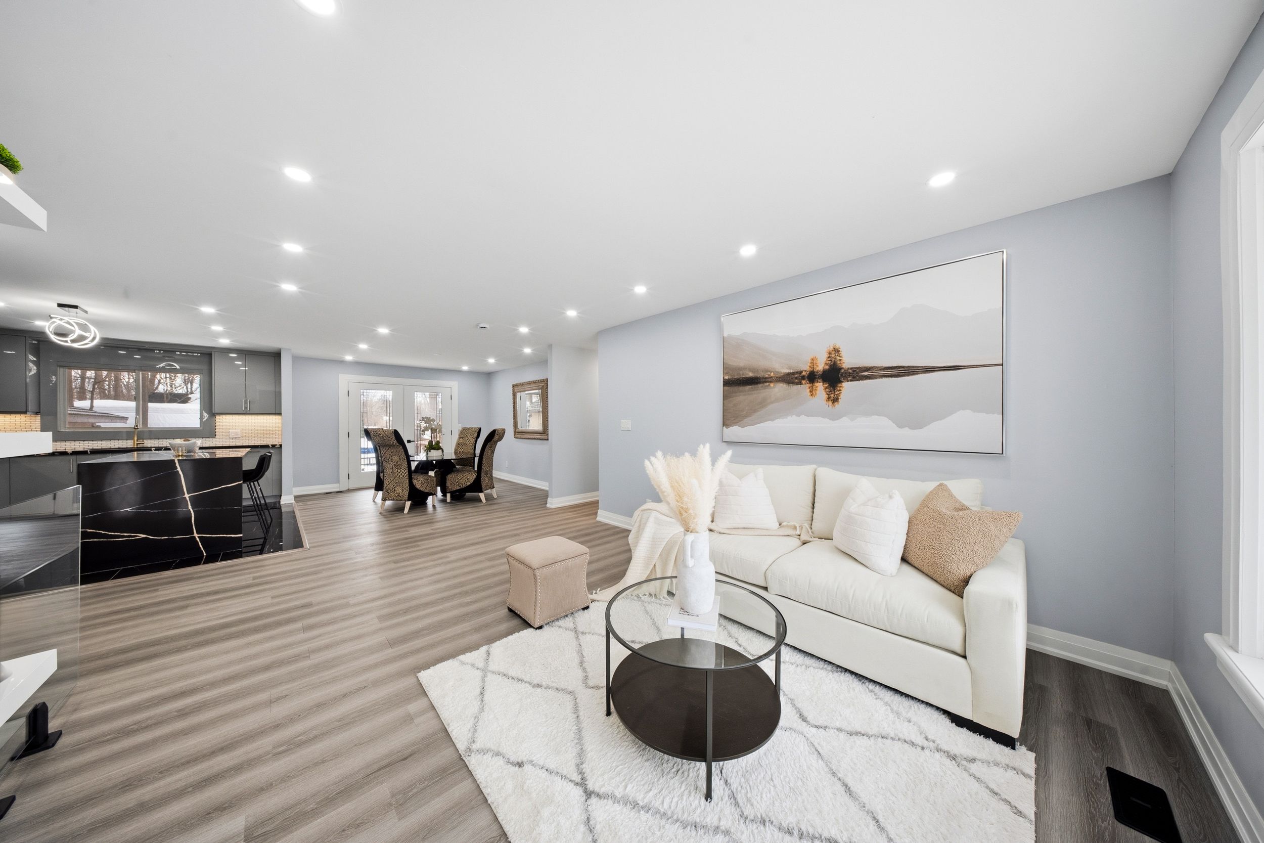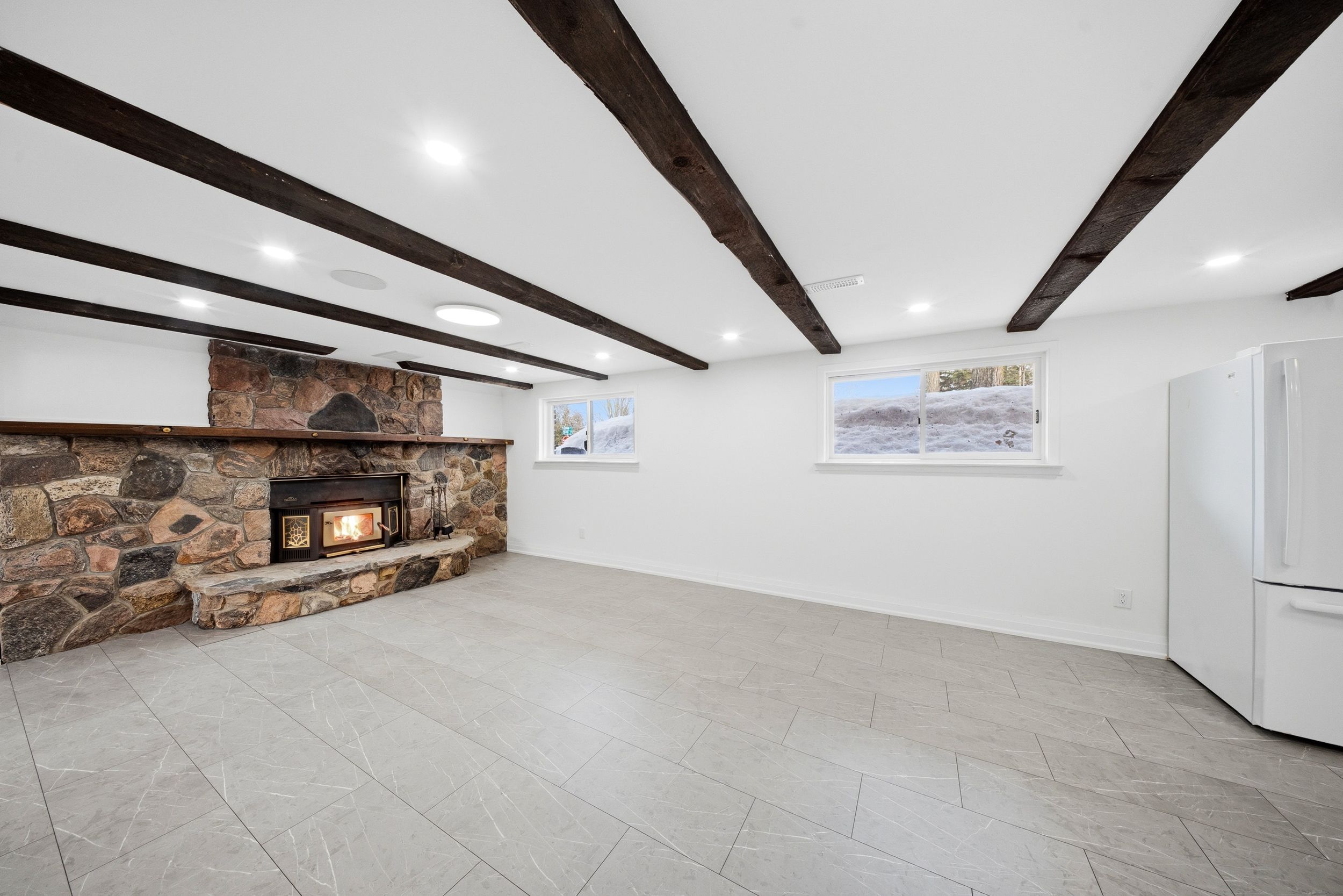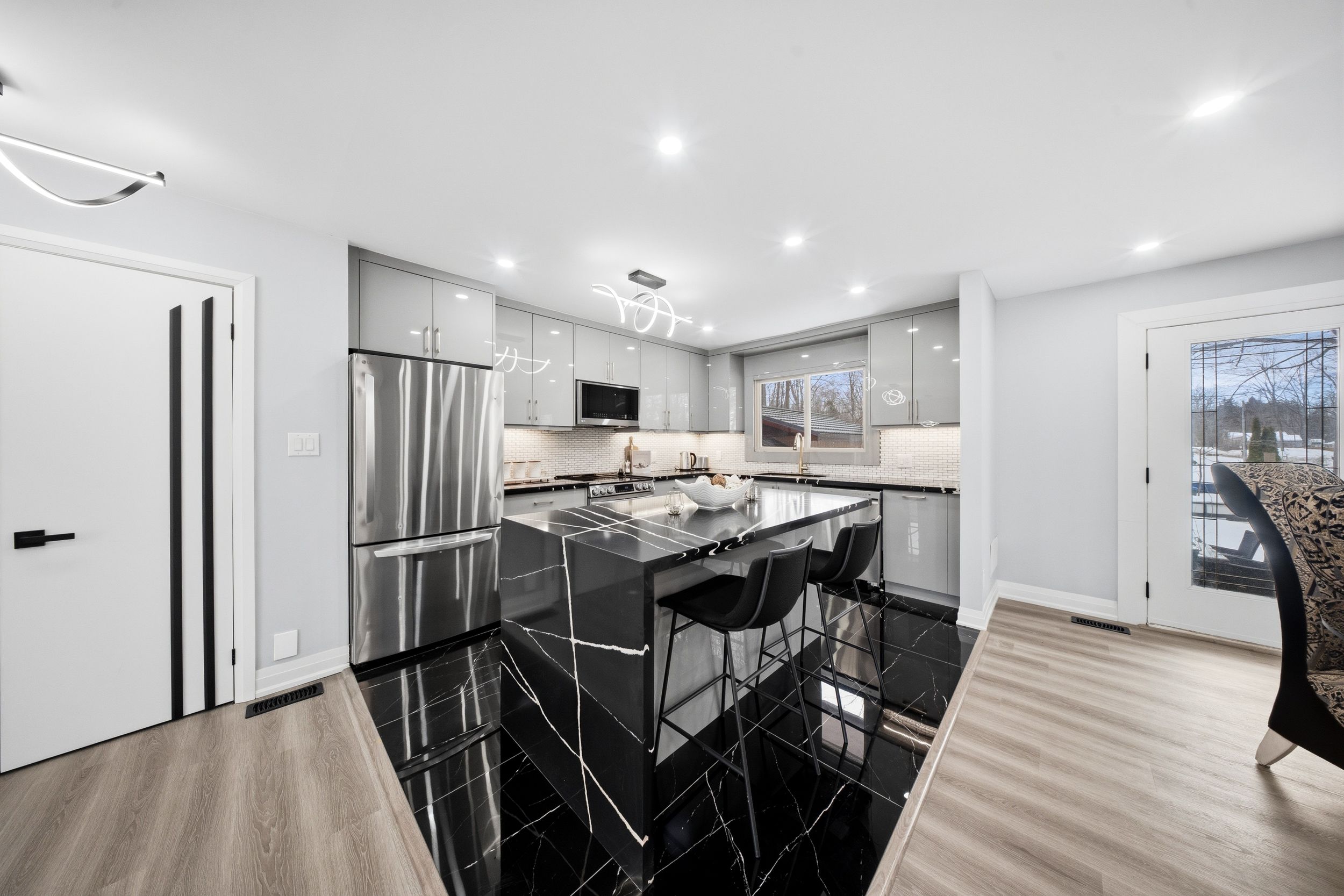 Experience elevated lakeside living at 3866 dixon rd, a beautifully fully renovated, turn-key raised bungalow tucked away in the peaceful rural setting of northern innisfil, just steps from the shores of lake simcoe. This exceptional residence was fully renovated in 2024/2025 and offers 3+1 bedrooms and 3 full bathrooms, thoughtfully redesigned with refined finishes throughout, including luxury flooring throughout, pot lighting throughout, new staircase w/ elegant glass railings that add a sophisticated modern architectural touch. The bright open-concept layout creates an impressive great room ideal for entertaining, anchored by a welcoming living area featuring an electric fireplace, custom built-in shelving, and a sun-filled bay window that floods the space with natural light. The brand new designer kitchen is a true showpiece, complete with granite countertops, new stainless steel appliances, and an oversized island perfectly suited for hosting and everyday living. Retreat to the large primarily newly renovated 3-piece ensuite and beautifully updated spa-inspired bathrooms. Comfort and efficiency are enhanced with newer exterior & garage insulation, updated windows and doors, newer basement insulation, and a durable metal roof (under 15 years) with updated roof insulation. Outdoors, enjoy a spacious two-tier deck large enough for a gazebo, a 24 x 16 ft detached workshop, a garage with convenient backyard access, and a new gravel driveway at the rear for extra parking for your trailer and toys. Ideally located just 5 minutes from friday harbour resort and 15 minutes to barrie and highway 400, this remarkable property seamlessly blends lakeside living, privacy, and luxury.
