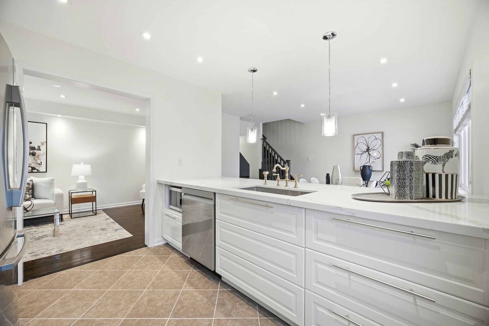 • Bright living and dining spaces with upgraded kitchen and quartz countertop.