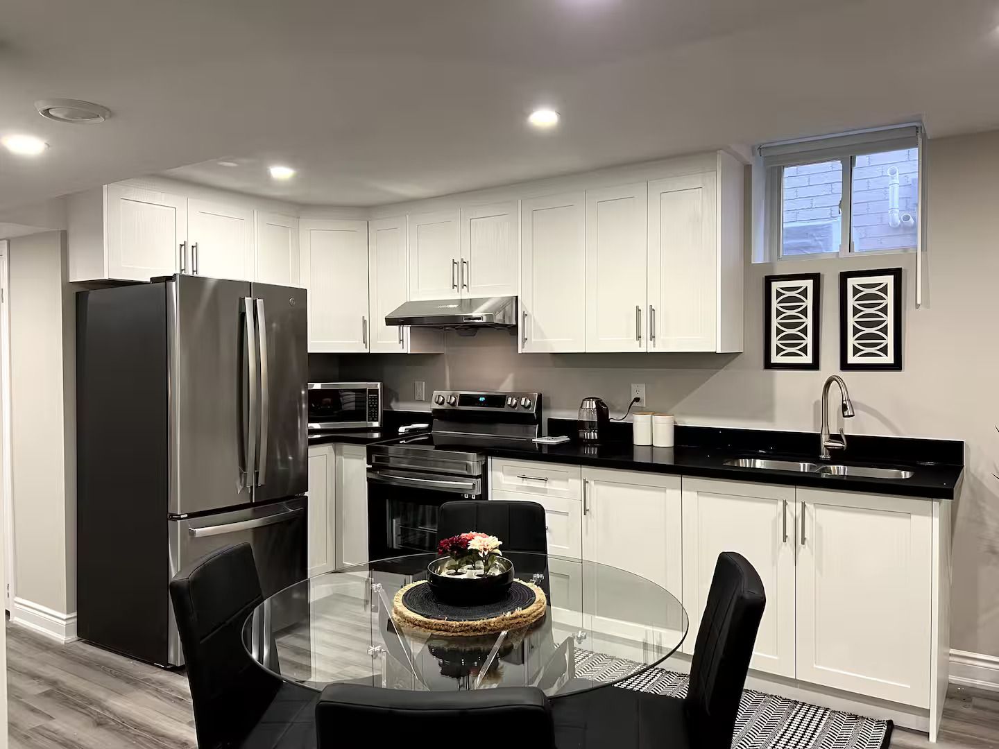 Move-in ready: fully furnished as shown in photos. Well-maintained 2-bedroom basement apartment in a desirable mississauga neighbourhood. Features a private entrance, 1 full bath, modern kitchen with modern appliances, in-suite laundry, and dedicated workspace. Bright, functional layout with high-speed internet, one parking space, and close proximity to highways, shopping, transit, and hospital. Tenant pays 30% of the utilites.