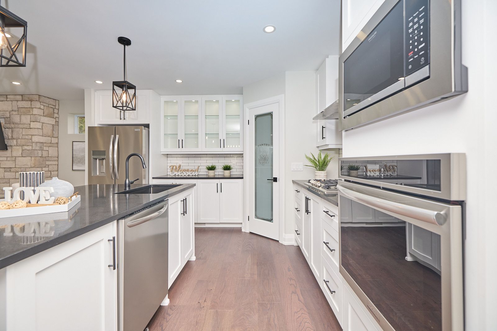 Two large separate units, each with separate entrances, offering over 3,200 total square feet with 5 bedrooms and 3 full bathrooms in an exclusive wine country location! With its extensive renovations, high-end finishes, and extraordinary attention to detail, all on a lovely, large lot that backs onto a 20-mile creek, this home makes you feel like you're experiencing all the magic of a modern, multi-family masterpiece. No detail was spared in renovating this property!!! Starting on the main floor featuring a gorgeous designer eat-in kitchen with stunning white cabinets, quartz countertops, ss appliances, a pantry, and an island integrating into the cozy family room with a custom fireplace wall & insert. Sliding doors lead out to a large composite deck with a vinyl railing, the perfect spot to soak in the stunning summer sunsets. The primary bedroom epitomizes comfort and luxury, featuring a walk-in closet and a 5-piece en-suite with a double vanity and a heated floor. Two additional bedrooms, a second 5-piece bathroom with a heated floor,r and a laundry room complete the main floor. The lower level is filled with natural light and features its own lovely eat-in kitchen with appliances, a living room, two bedrooms, a 4-piece bath with a heated floor, and a large laundry room. Aden/office offers even more living space as does the new durable concrete patio just outside of the eat-in kitchen. Indoor-outdoor living is effortless in this home, picture summer bbqs, relaxing on the patio in a lounge chair or gathering around a fire pit. The beauty and tranquility of the views of the creek and forest from the deck and patio are unmatched. There are over 200 pot lights outside and inside this home, as well as an oversized garage and new driveway. Surrounded by the best of what vineland has to offer, including niagara's finest wineries and restaurants, shopping, golf, parks and within minutes of historic balls falls, home yours