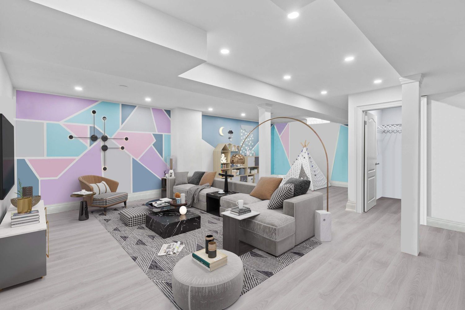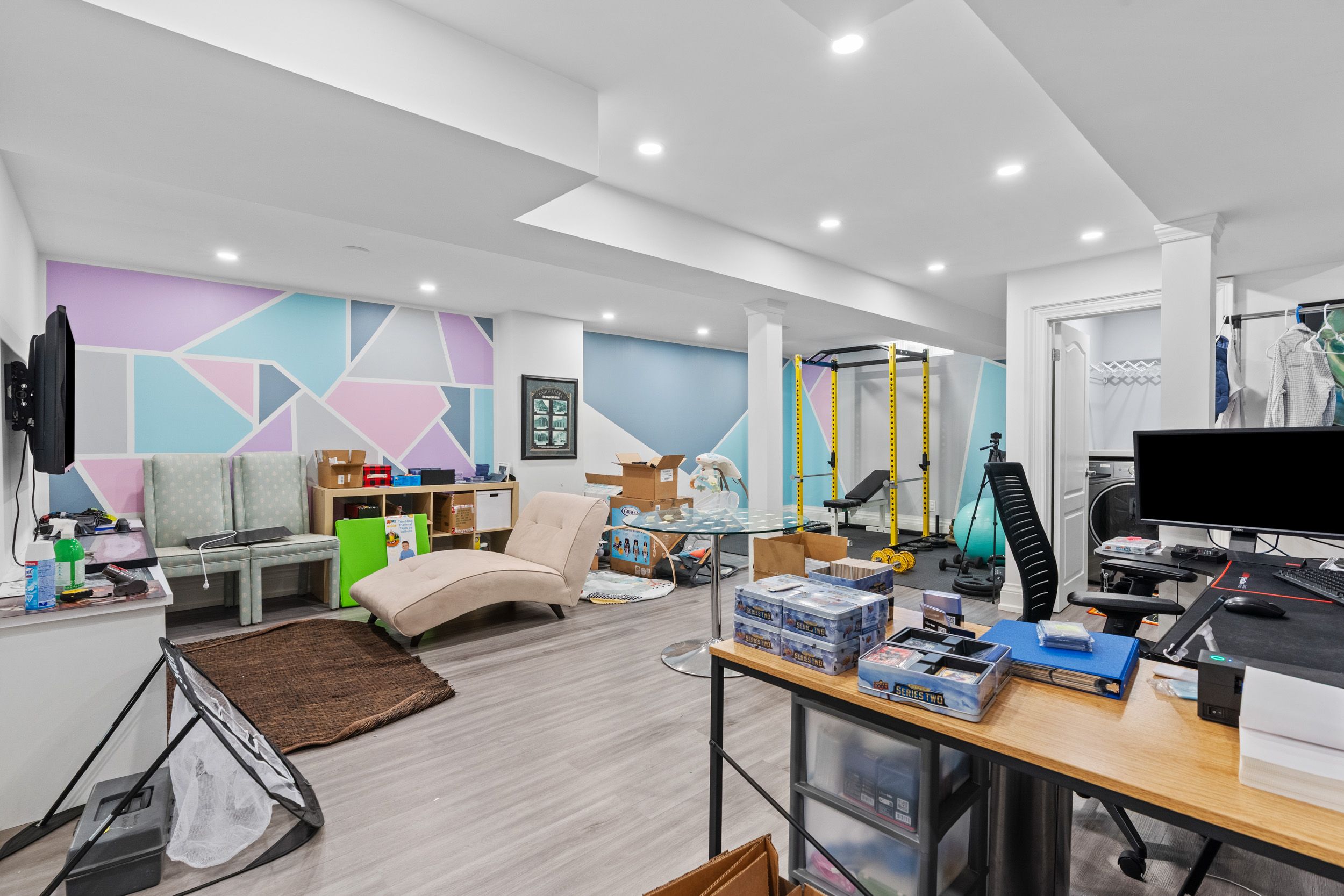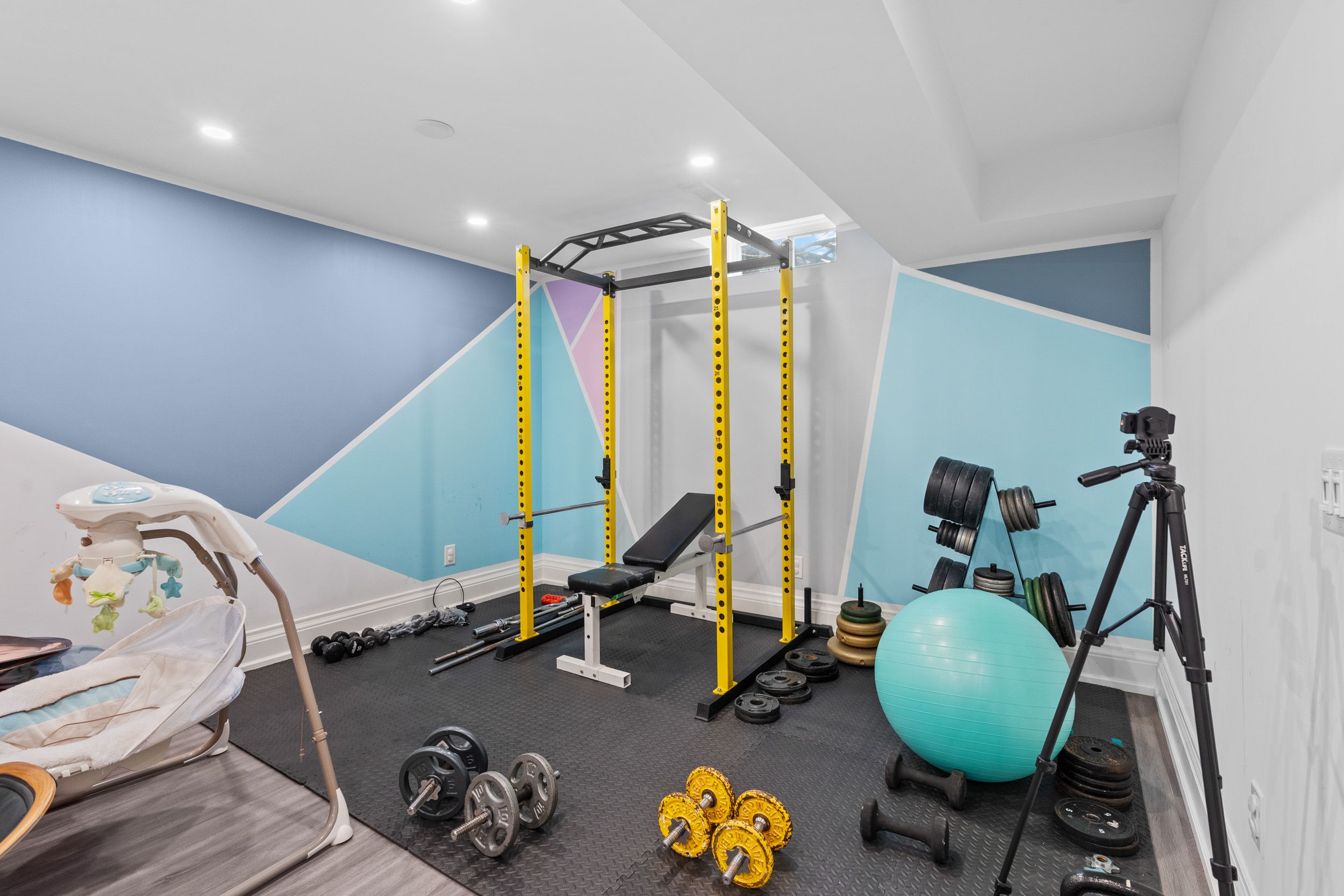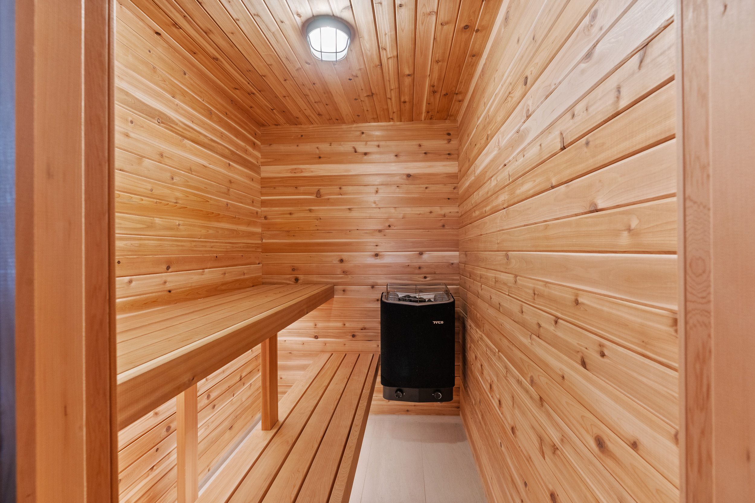 • Versatile lower level with recreation area, gym space, and a sauna.