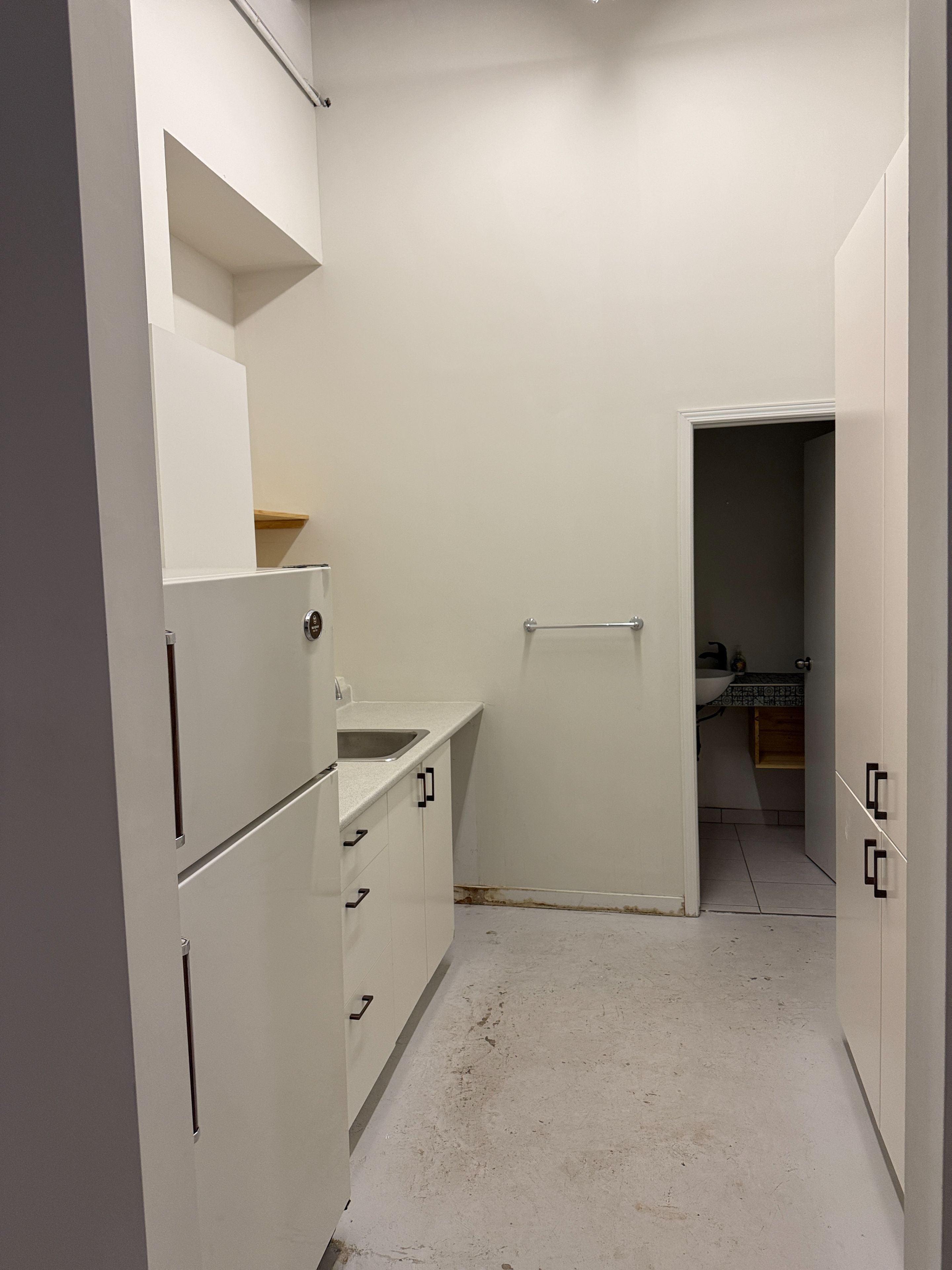 Glass offices, internal meeting/team rooms, kitchenette and washroom.