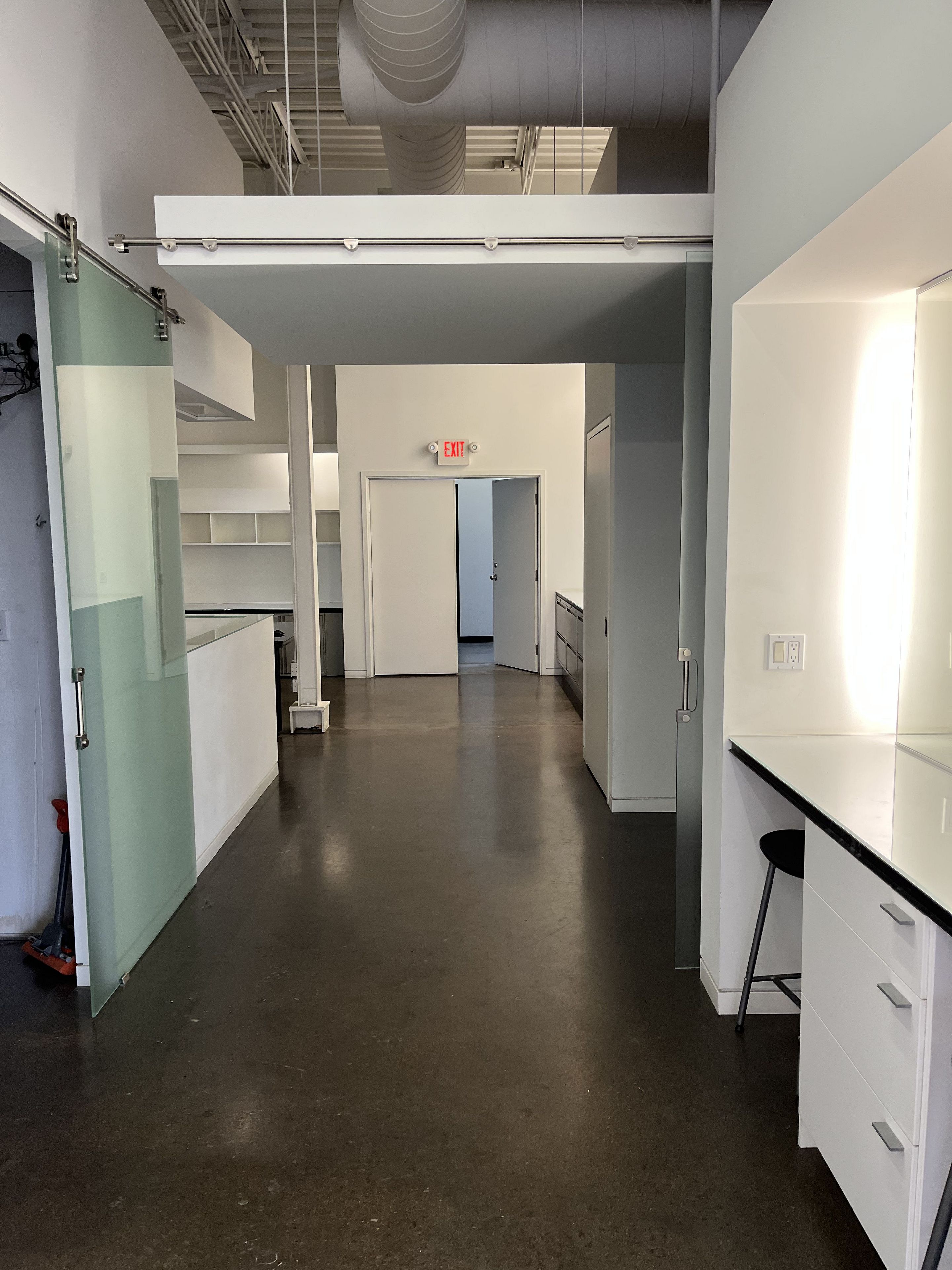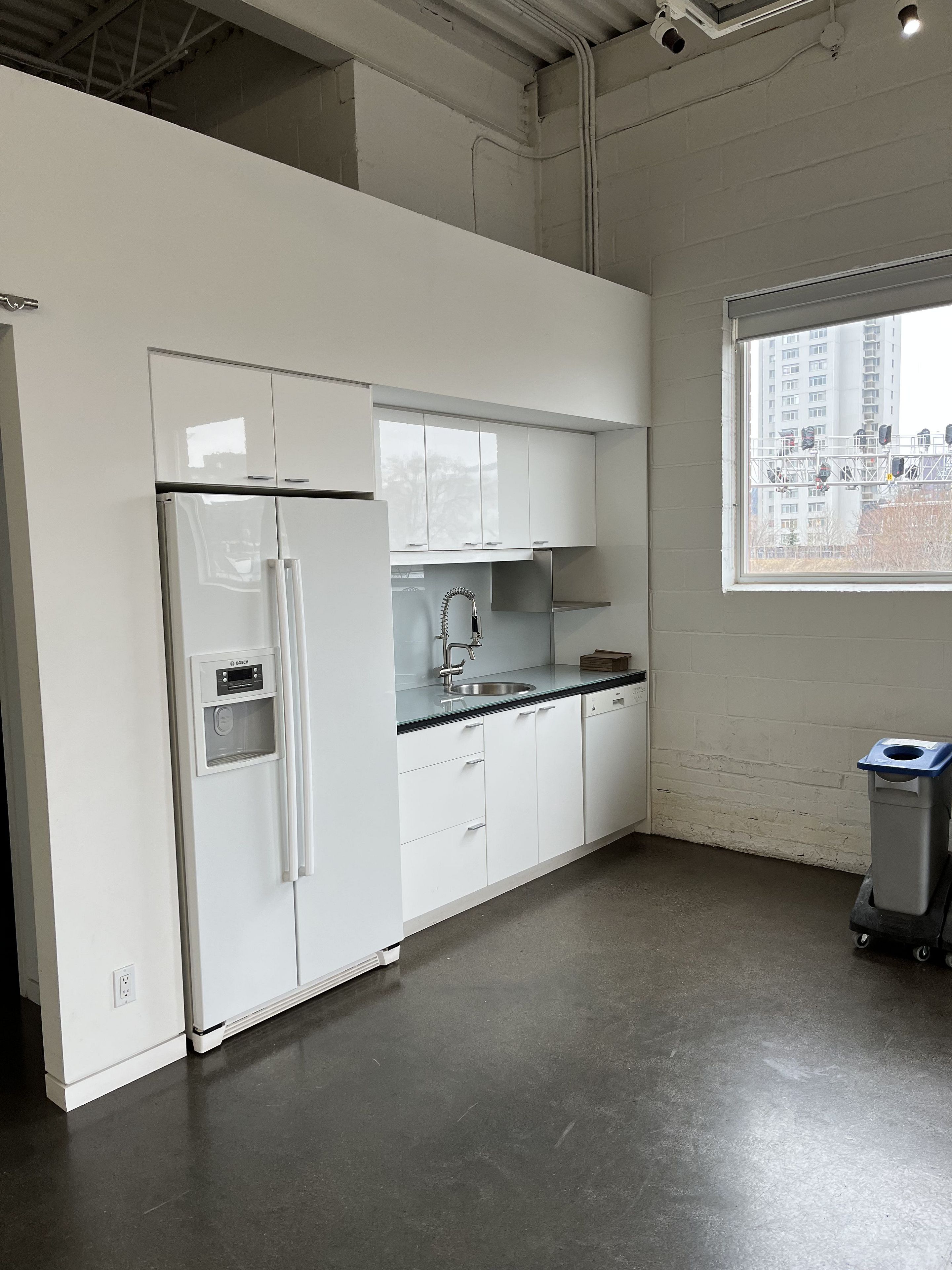 High-quality studio build out with washrooms, open kitchen, meeting areas/change rooms, and windowed studio space with 2 private washrooms.