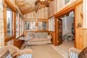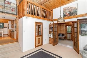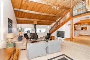 Welcome to this inviting family cottage with year-round access on beautiful bernard lake. This classic a-frame with a spacious addition blends traditional cottage charm with comfortable living. Inside, you'll find a large open-concept eat-in kitchen and dining area that leads to a bright muskoka room and a generous lakeside deck-perfect for enjoying waterfront views. The main floor includes a welcoming entry, bedroom, two-piece bath with laundry, a spacious great room, and an enclosed front porch. The level lot offers easy access for all ages and plenty of outdoor space to enjoy the long, shallow sandy beach. Additional buildings include a garage with a carport and a large storage shed. A steel roof adds lasting value. Enjoy year-round recreation with swimming, boating, ice fishing, skating, sledding, and hockey nearby. With a park close by and the amenities of burks falls and sundridge just minutes away, this property offers the perfect blend of relaxation and convenience.