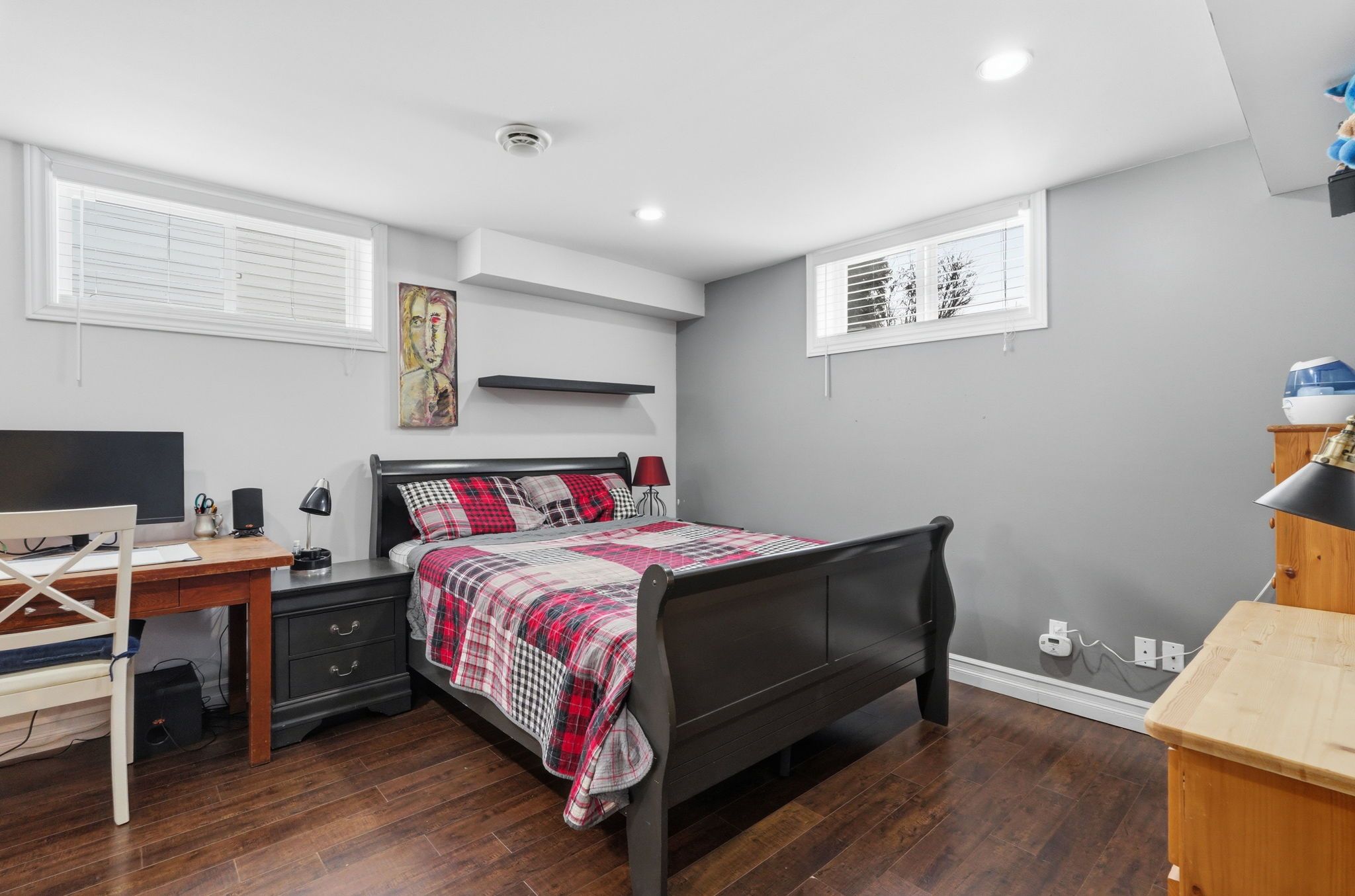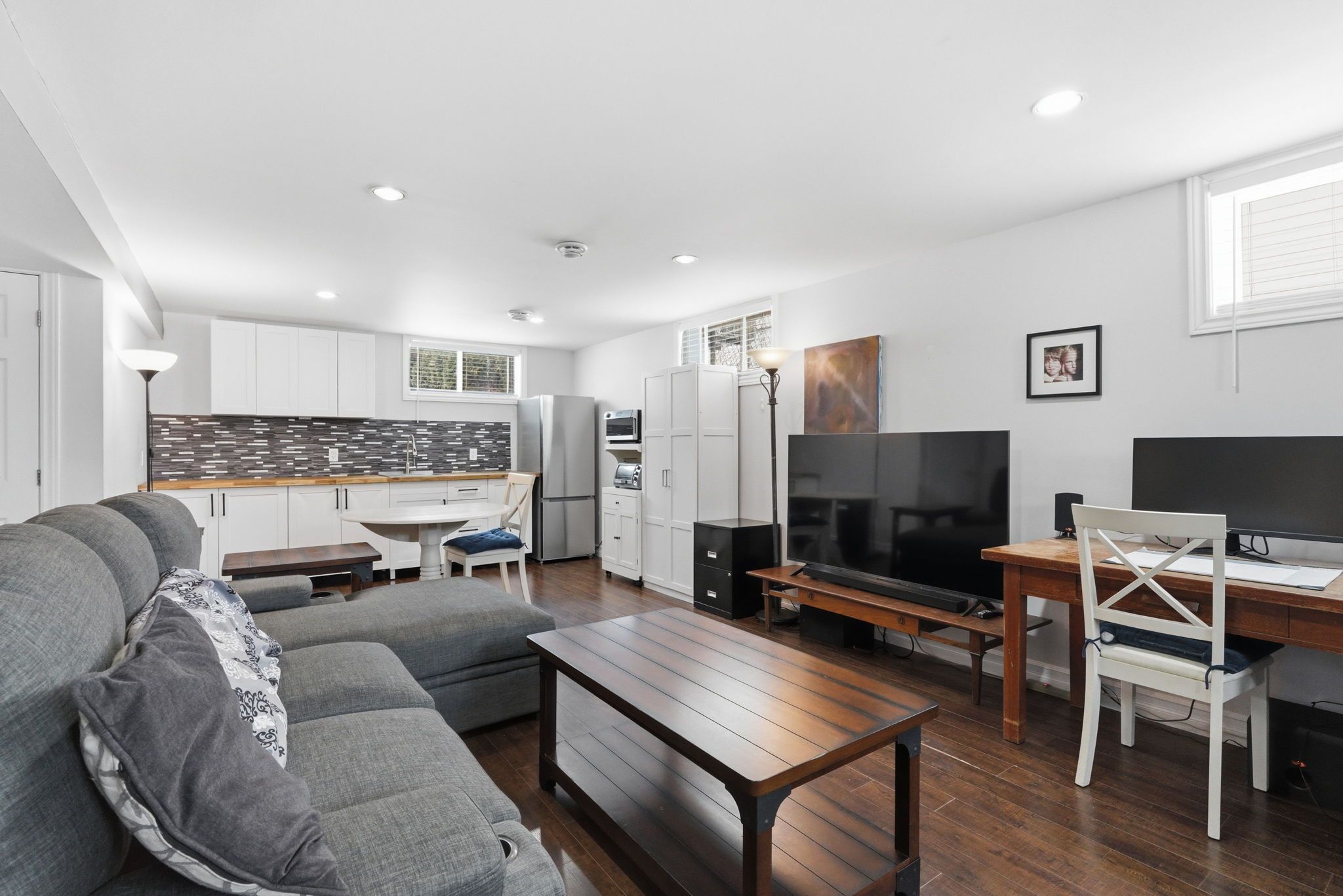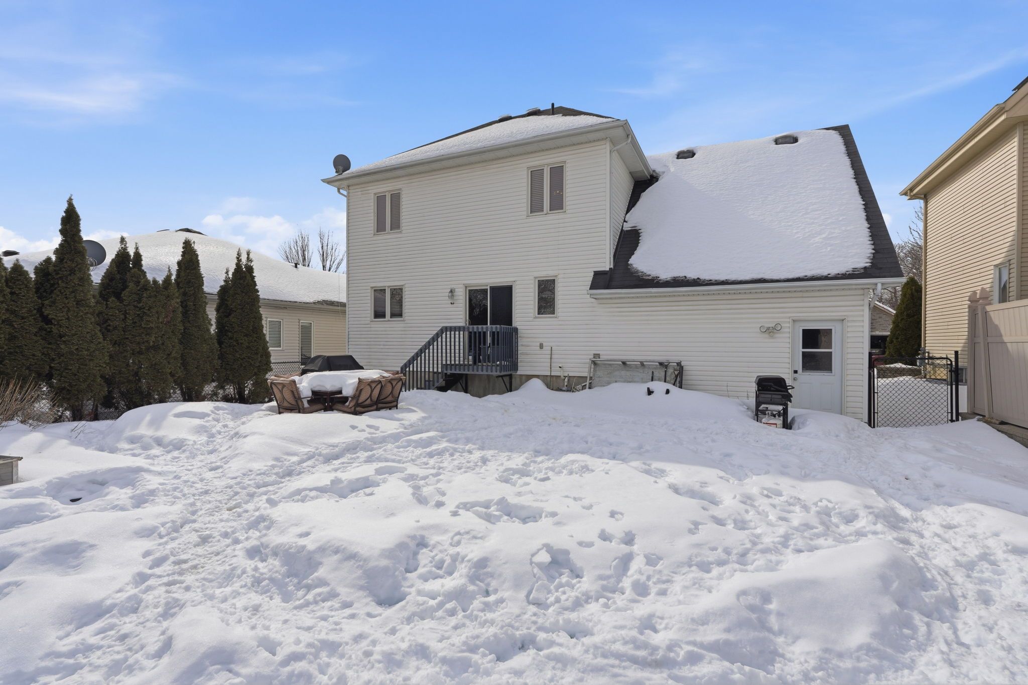 Welcome to this stunning and impressive 2-storey home that offers incredible curb appeal, abundant natural light, and a fantastic location just steps from parks, the marina, recreation, and schools. From the charming front porch to the bright and inviting foyer, this home immediately makes a statement. The spacious living room is filled with natural light and flows beautifully into the well-appointed kitchen featuring plenty of cabinetry, generous counterspace, and a bright eating area with patio doors leading to the back deck. A separate dining area provides the perfect setting for hosting family and friends, while the convenient main floor laundry room and 2-piece bathroom add everyday functionality. Upstairs, the primary bedroom offers a walk-in closet and cheater access to a large 5-piece bathroom, along with two additional well-sized bedrooms. The lower level, currently used as an in-law suite, features a large recreational space, a 3-piece bathroom, and a utility room with plenty of storage. Step outside to enjoy the large fenced backyard complete with a spacious deck, mature cedar hedges for added privacy, and a detached garage with a private double driveway. Bright, spacious, and beautifully maintained, this impressive home offers the perfect blend of comfort, lifestyle, and location. Don't miss your opportunity to make this exceptional property your next home.