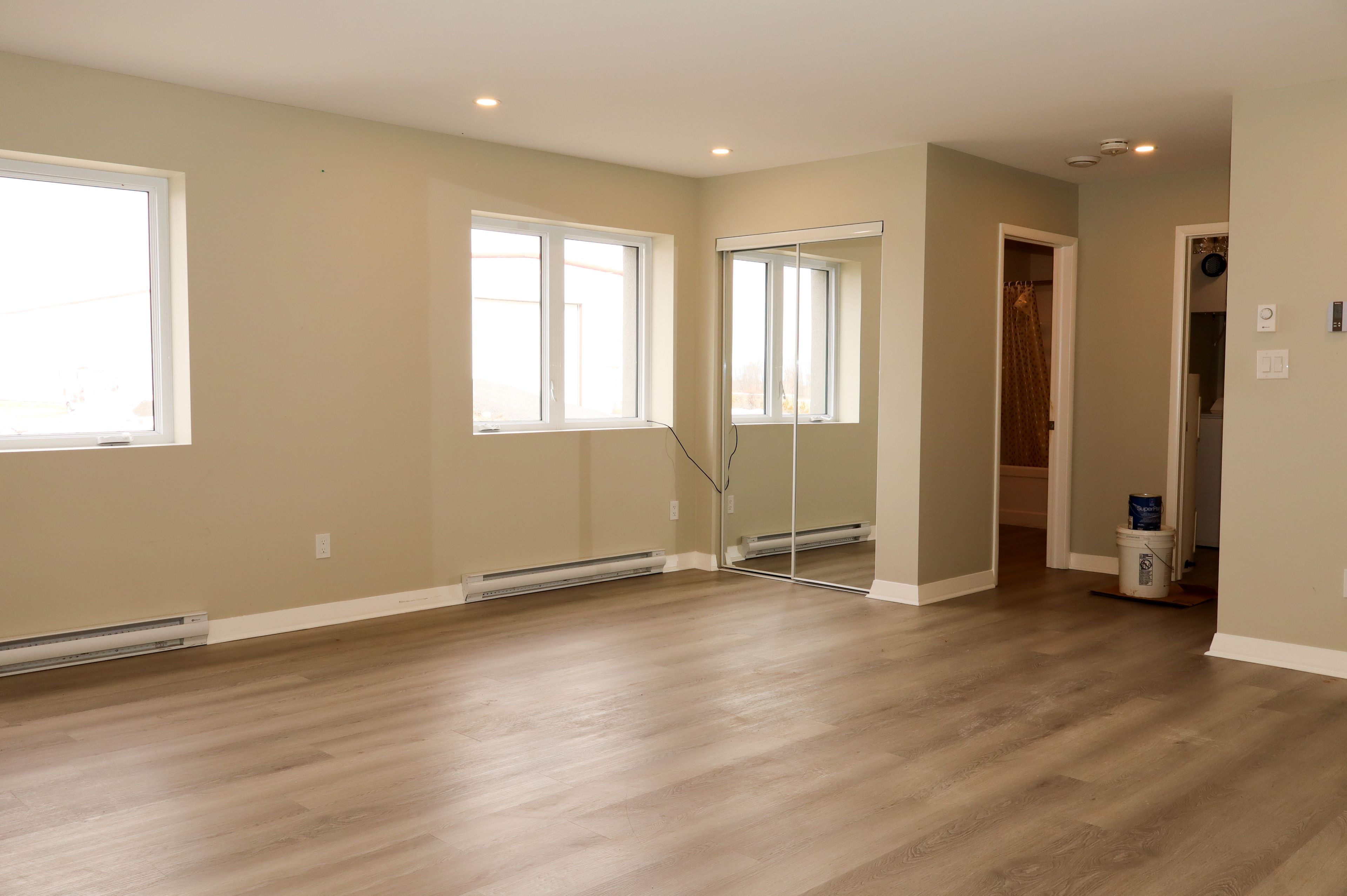 • Bright open-concept layout with large windows for natural light.