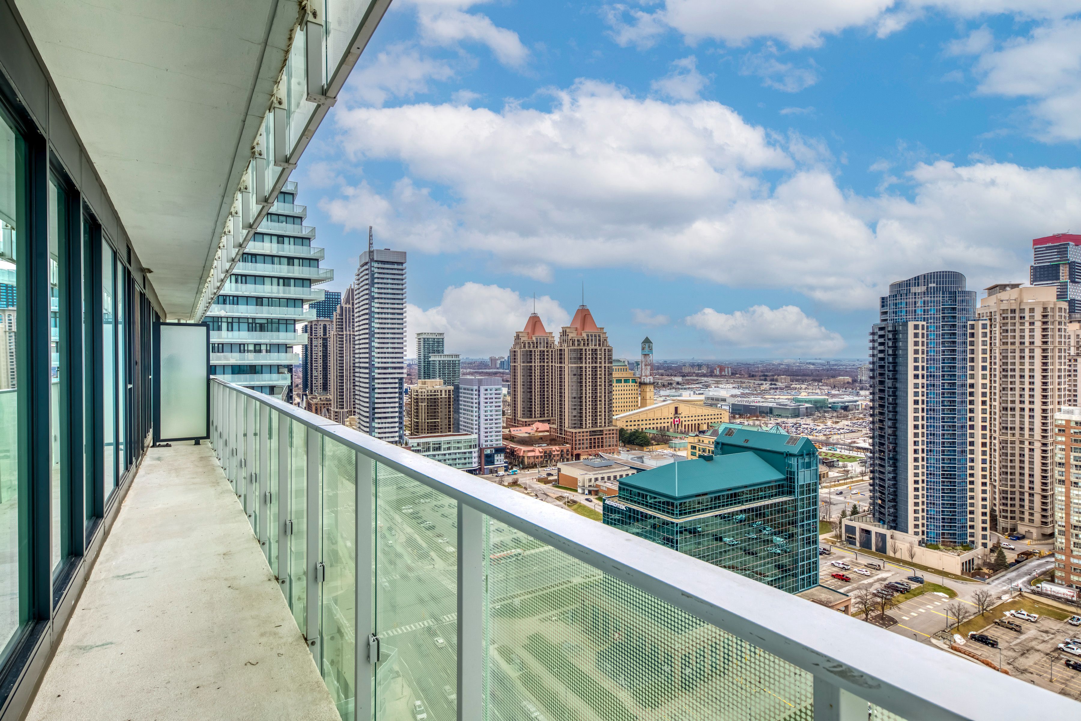 Welcome to m city2, an architectural icon and proud winner of the 2024 ctbuh award of excellence best tall building. This stunning 2-bedroom + den corner suite offers one of the most sought-after floor plans in the building, with a 290+ sq. Ft. Wrap-around balcony showcasing breathtaking 270 panoramic views of mississauga city centre, the toronto skyline, and lake ontario. The den is enclosed with a sliding door and window, making it a perfect private office or flexible third room. Builder upgrades include 4 ceiling outlets for added lighting design options and premium upgraded tiles in both bathrooms for a sleek, modern finish. The open-concept kitchen, dining, and living areas create an elegant flow ideal for both everyday living and entertaining. Residents of m city2 enjoy a wealth of 5-star amenities, including rooftop terrace, outdoor swimming pool, basketball court, hotel-style concierge, children's playroom, meeting rooms, fitness facilities, and more. Located in the heart of mississauga, this residence puts you steps from square one mall, celebration square, sheridan college, living arts centre, ymca, library, t&t, restaurants, parks, schools, movie theatre, future lrt, and the go transit terminal. This is your chance to embrace luxury, convenience, and urban living at its finest in an award-winning community. Don't miss out on this extraordinary condo at m city2!