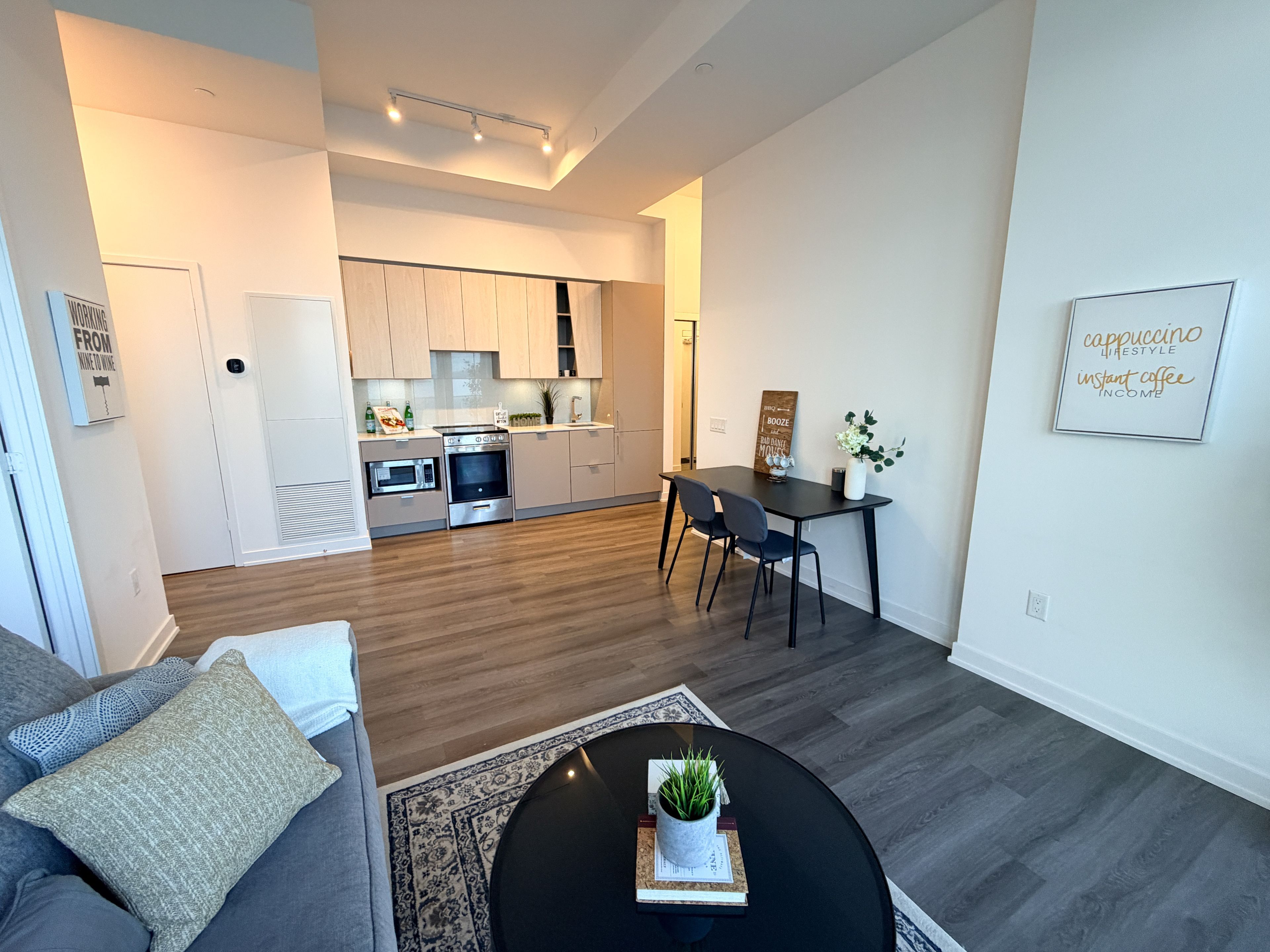 • Large one-bedroom condo with 11-foot high ceilings and natural light.