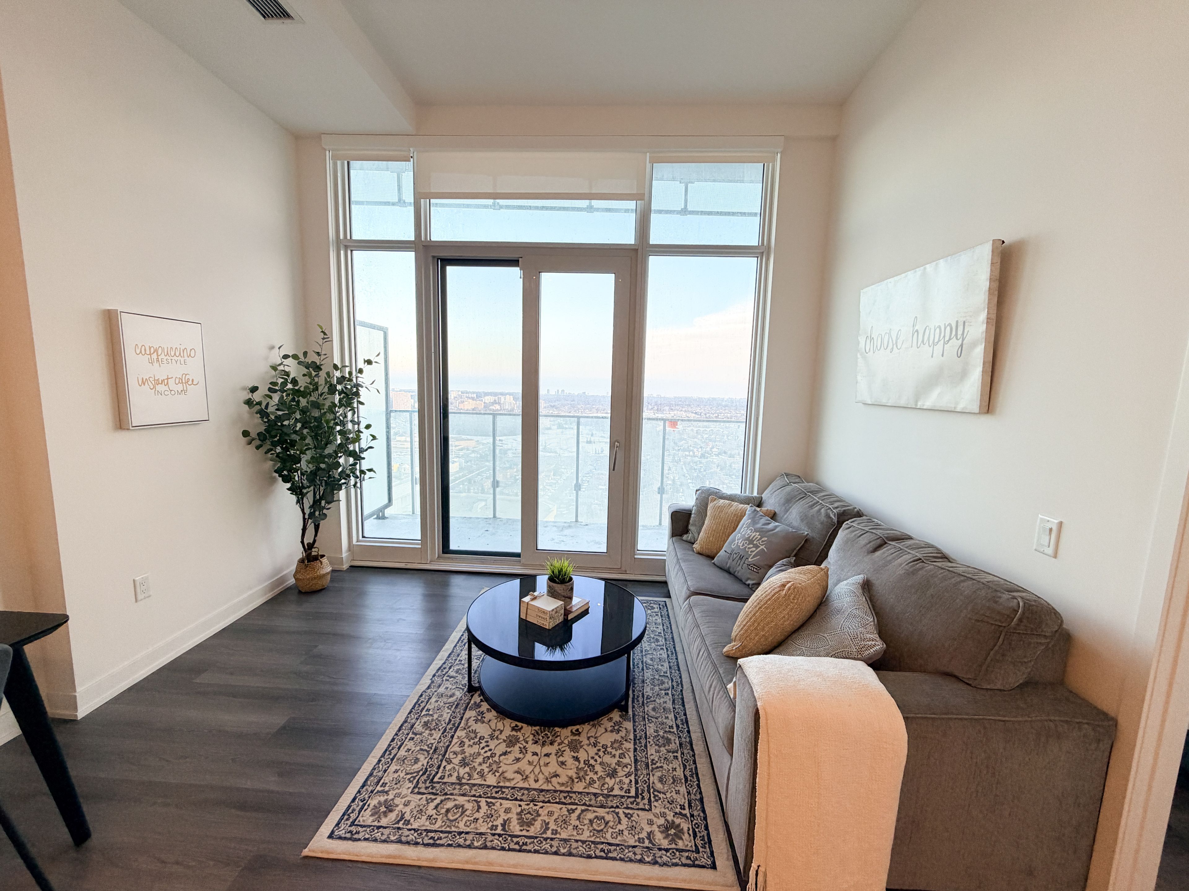 Welcome to luxury m city condo located at the heart of city center! Large 570 sf one bed one bath, with a parking. Stunning 11 feet high ceiling!! Spacious living area flooded with natural light through floor to ceiling window. Functional open concept layout, huge balcony. Modern open concept modern kitchen with sleek cabinetry, quartz countertop, and stainless steel appliances . Fantastic panoramic views of city skyline, cn tower, and lake ontario. Steps to square one shopping center, restaurants, sheridan college, central library, celebration square, living art center, ymca & more. Close to u of t, go station, bus terminal. Easy access to 403/qew.