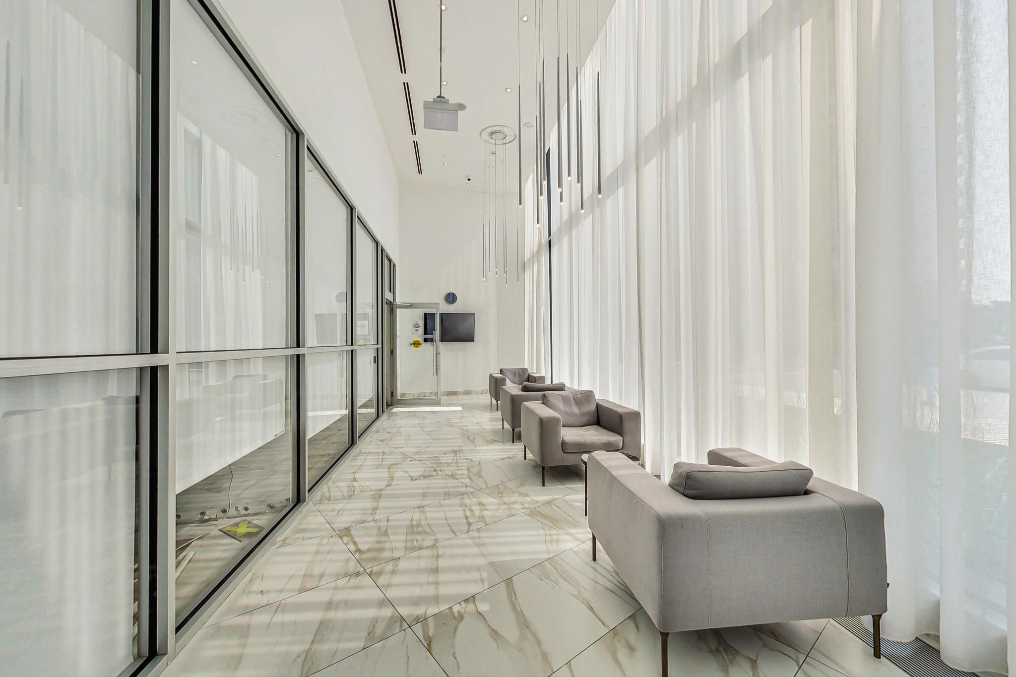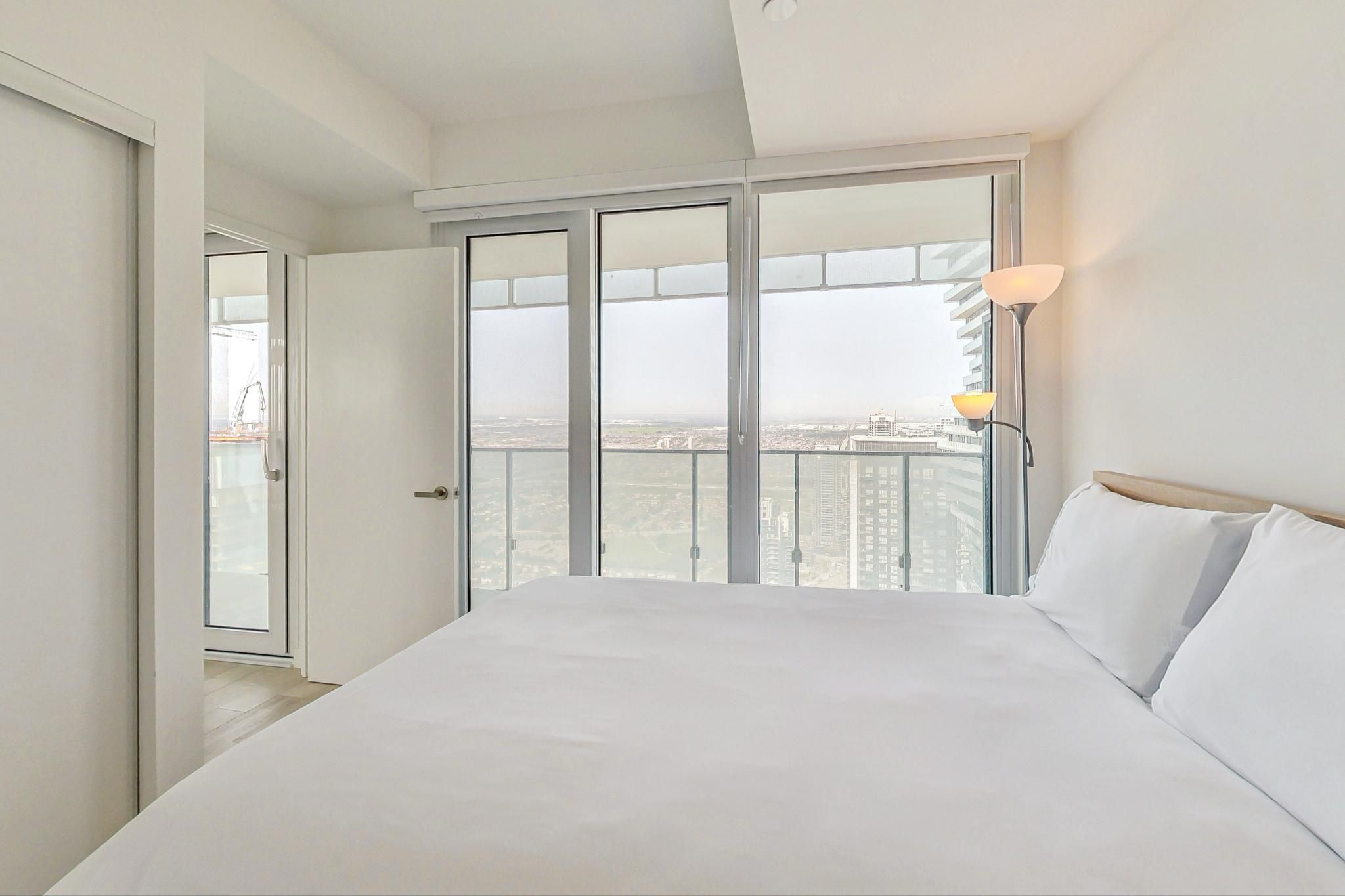 Exceptionally conveniently located. Minutes to square one, ymca, t&t supermarket, mohawk college, walmart, costco, fine dining, kinton ramen, starbucks. Magnificent sweeping vistas, corner suite w/wrap around balcony. Some furniture included, not all shown in video.