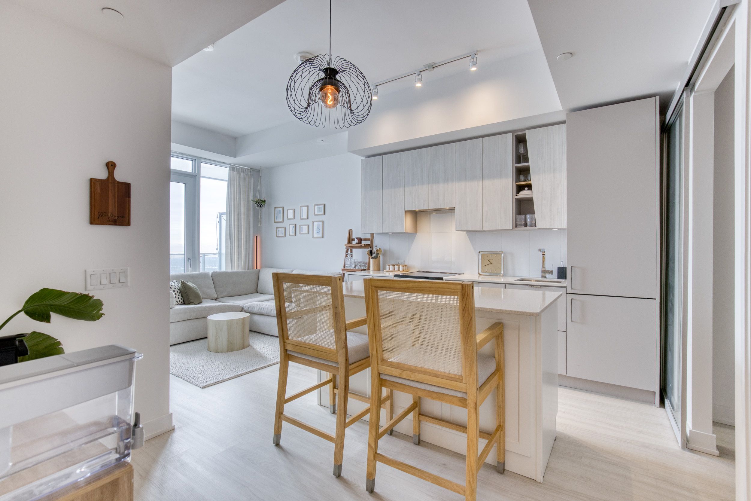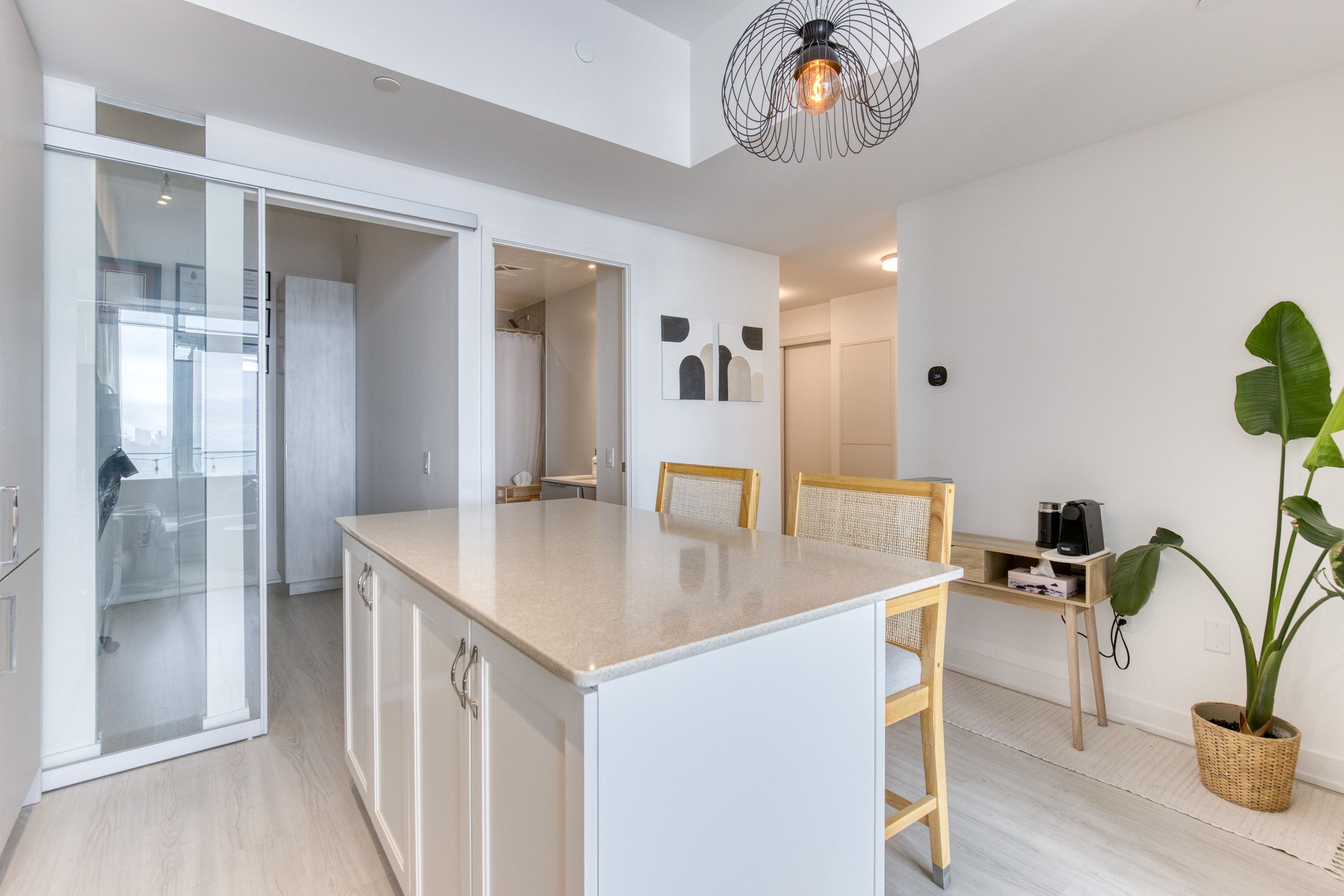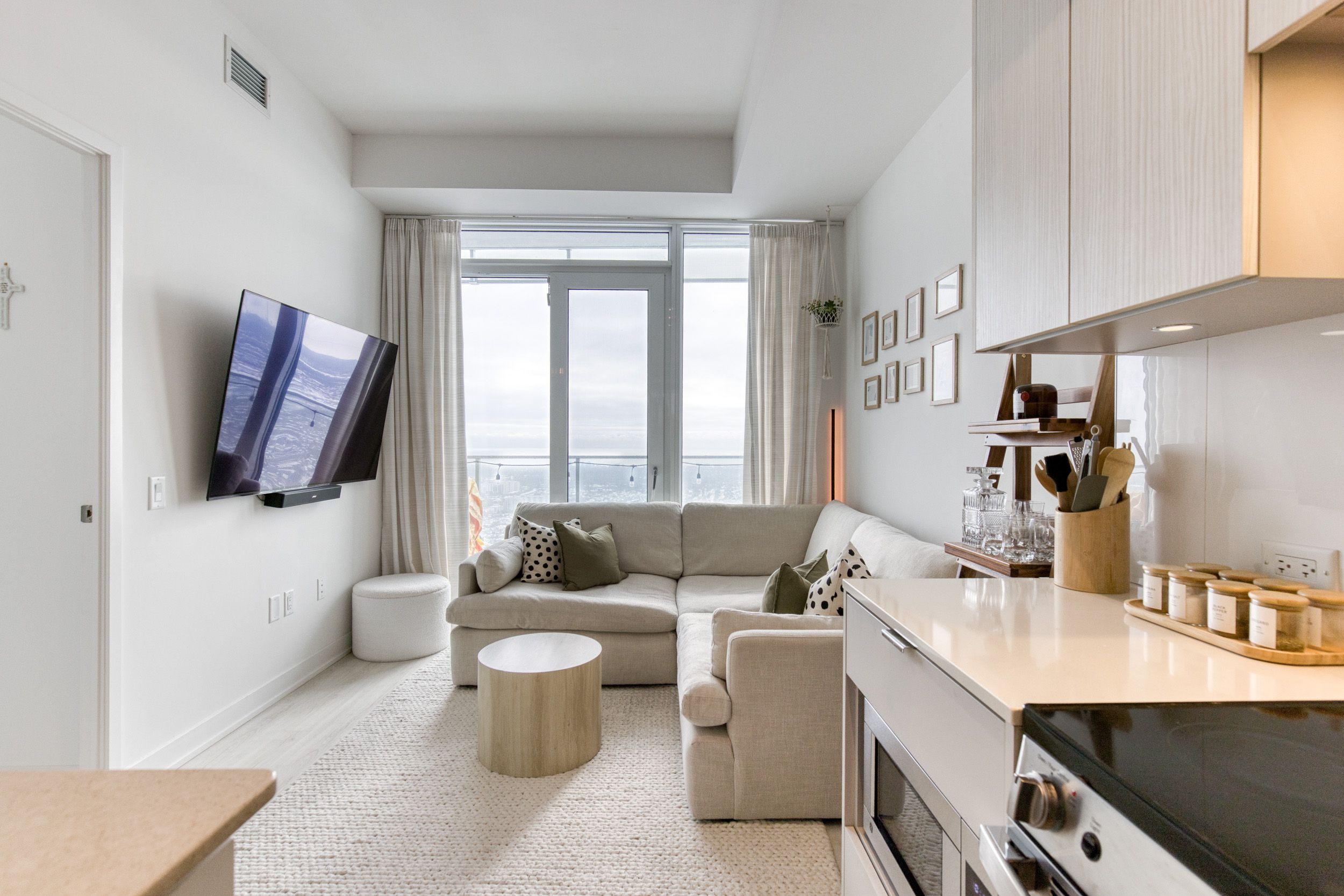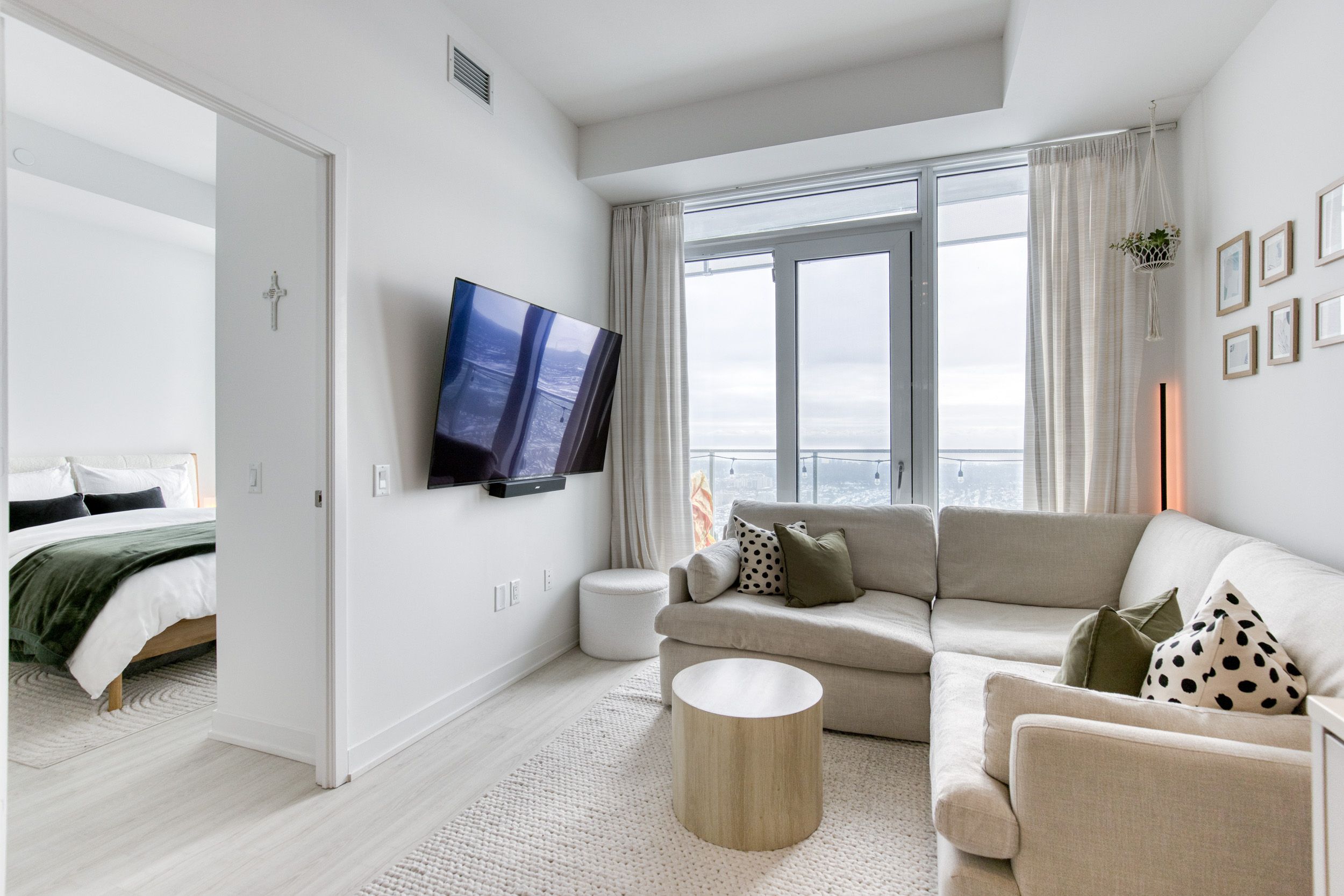 Perched high above the city on the 55th floor of the iconic m city m2, this sophisticated 2-bedroom plus media residence offers refined urban living with sweeping south-facing views. Thoughtfully designed with 9-foot ceilings and an elegant open layout, the suite spans 811 sq. Ft. Of total space, seamlessly blending 698 sq. Ft. Of interior living with an expansive 113 sq. Ft. Private balcony-perfect for enjoying sun-filled days and dramatic cityscapes. The designer kitchen showcases sleek stainless steel appliances, quartz surfaces, and contemporary cabinetry, striking a perfect balance between form and function while comfortably accommodating a dedicated dining area. The living space is framed by floor-to-ceiling windows, creating a bright, elevated atmosphere ideal for both everyday living and entertaining. The primary retreat features panoramic glazing, direct balcony access, and a spa-inspired 3-piece ensuite. A generously proportioned second bedroom is complemented by a stylish 4-piece bath. A separate media area adds flexibility, ideal for a private home office or curated work-from-home space. Residents of m city m2 enjoy an exceptional lifestyle with world-class amenities, including an outdoor saltwater pool, yoga and fitness studios, steam room, resident lounges, skating rink, splash pad, and thoughtfully designed family spaces. Situated in the heart of mississauga's vibrant downtown core, just steps to square one, go transit, celebration square, premier dining, cultural venues, parks, post-secondary institutions, and the upcoming lrt. Includes one parking space, one locker, high-speed internet, and a smart home monitoring system.