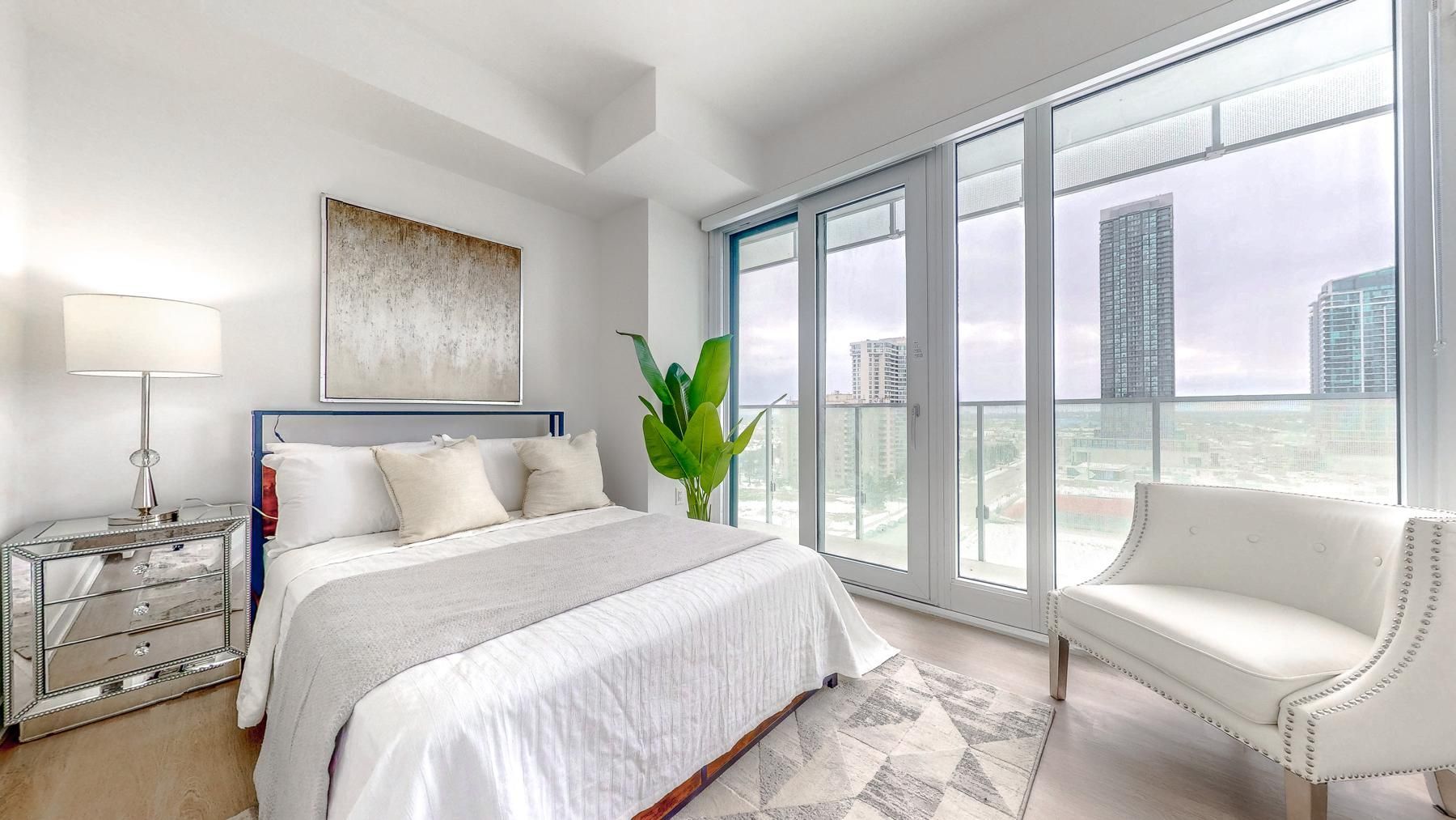 Discover stylish urban living in this beautifully designed 1-bedroom plus den condo, featuring a rare enclosed den with its own window, perfect for a home office, guest space, or reading room. Thoughtfully laid out, every room showcases floor-to-ceiling windows, filling the home with natural light and creating an airy, open feel. Step out onto the huge l-shape balcony and enjoy views overlooking centre m park, offering a peaceful outdoor backdrop in the middle of the city. The contemporary kitchen is equipped with stainless steel appliances, blending function and style for everyday living. Residents enjoy access to exceptional resort-inspired amenities, including an outdoor saltwater swimming pool, bbq area, luxury party lounge, sports lounge, gym, yoga studio, and 24-hour concierge service. Ideally located just minutes from square one, future lrt, go transit, schools, library, ymca, civic centre, sheridan college, and u of t mississauga, this home offers outstanding convenience and connectivity. A bright unit, a functional layout, and a great view-this one has it all.