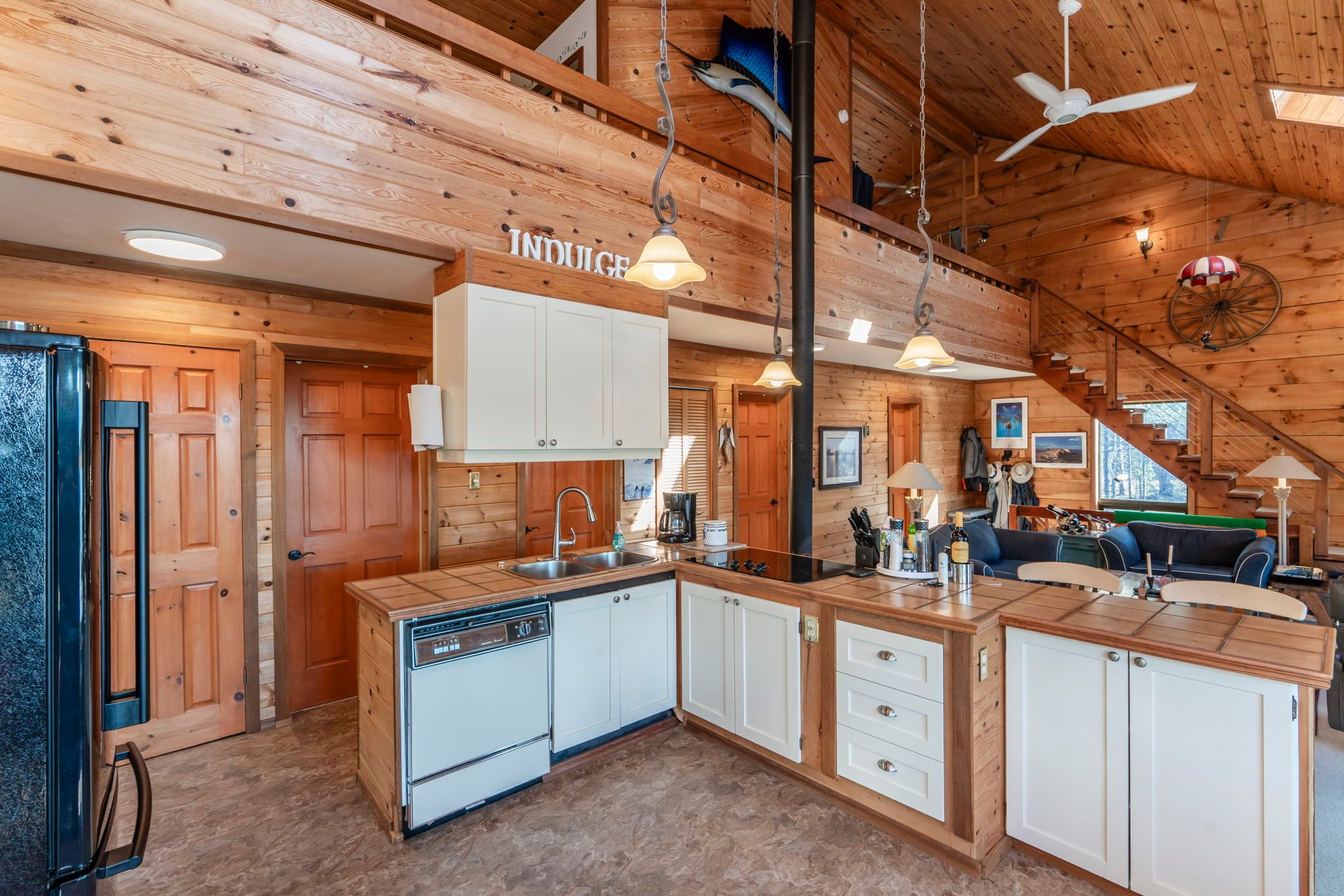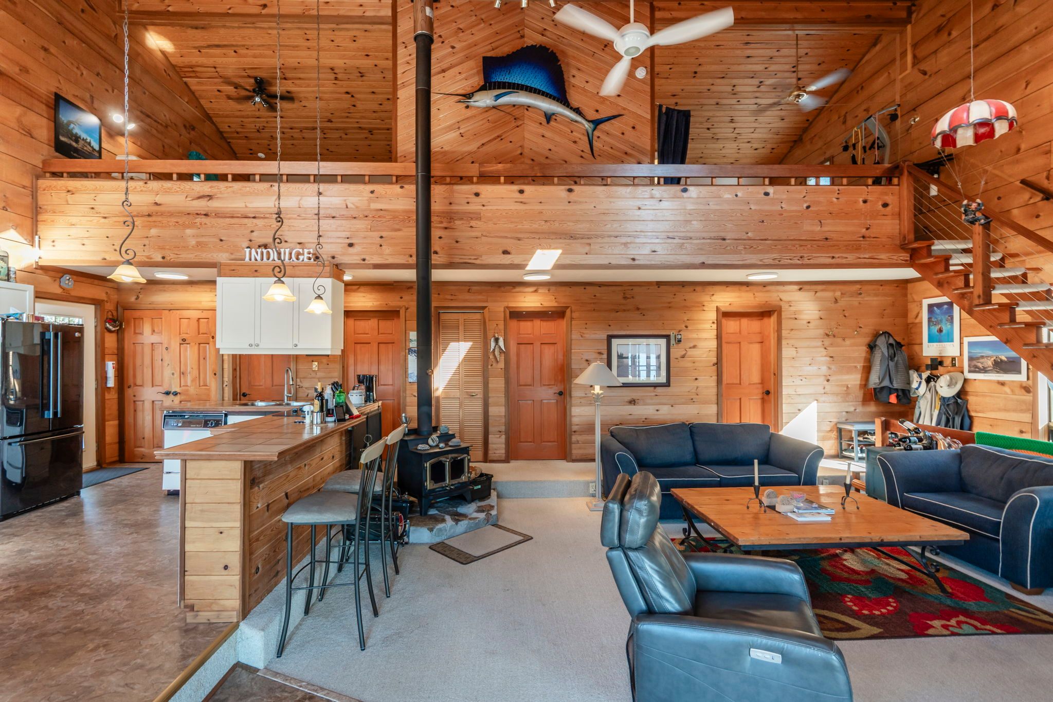 • Cozy home features open concept layout with vaulted ceilings and natural light.