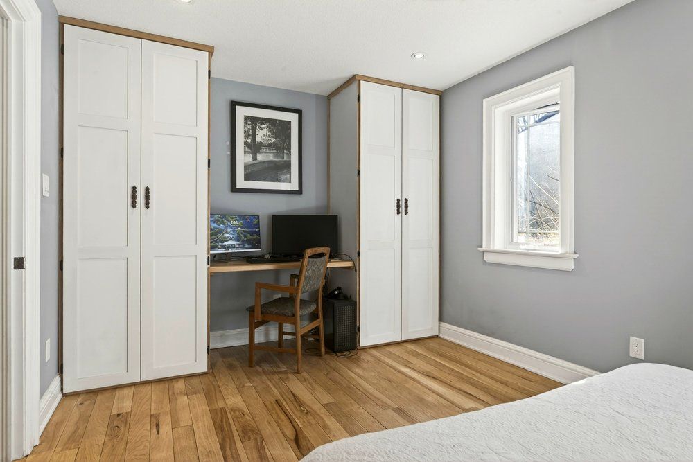 Tucked away at end of a quiet street in old ancaster, this extensively renovated bungalow with a thoughtful addition blends rustic warmth with refined, high-end living. Surrounded by mature trees and set on a private, fenced lot, this home feels like a hidden retreat - peaceful, grounded, and crafted with intention. Inside, natural materials and exceptional craftsmanship take centre stage. Solid wood flooring flows throughout, complemented by custom solid wood cabinetry adding richness and texture. The heart of the home is a beautifully appointed kitchen featuring wolf and sub-zero appliances -designed for both everyday living and entertaining. The main level offers three bedrooms, vaulted great room and a convenient mudroom. Downstairs, the ambiance shifts into something truly special. With the warmth of a tulikivi soapstone wood-burning fireplace imported from finland, the space feels like a cozy cabin in the woods. The lower level also adds two additional bedrooms (converted from a gym) and a full workshop provides incredible utility and can easily be converted back into a garage if desired - offering flexibility to suit your lifestyle. Step outside to your own private oasis. Low-maintenance ipe decking anchors the backyard while the swim spa invites year-round relaxation and fitness; all set against a backdrop of trees and total privacy. Put yourself within walking distance to restaurants and shops, the ancaster tennis club, the rail trail & bruce trail, and much more!